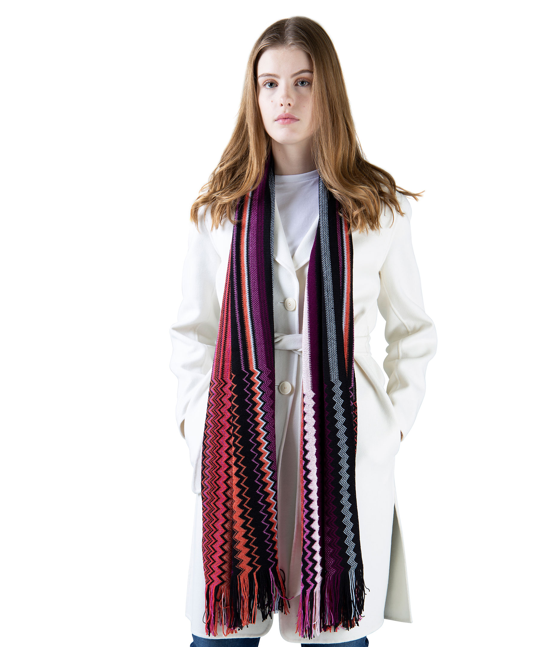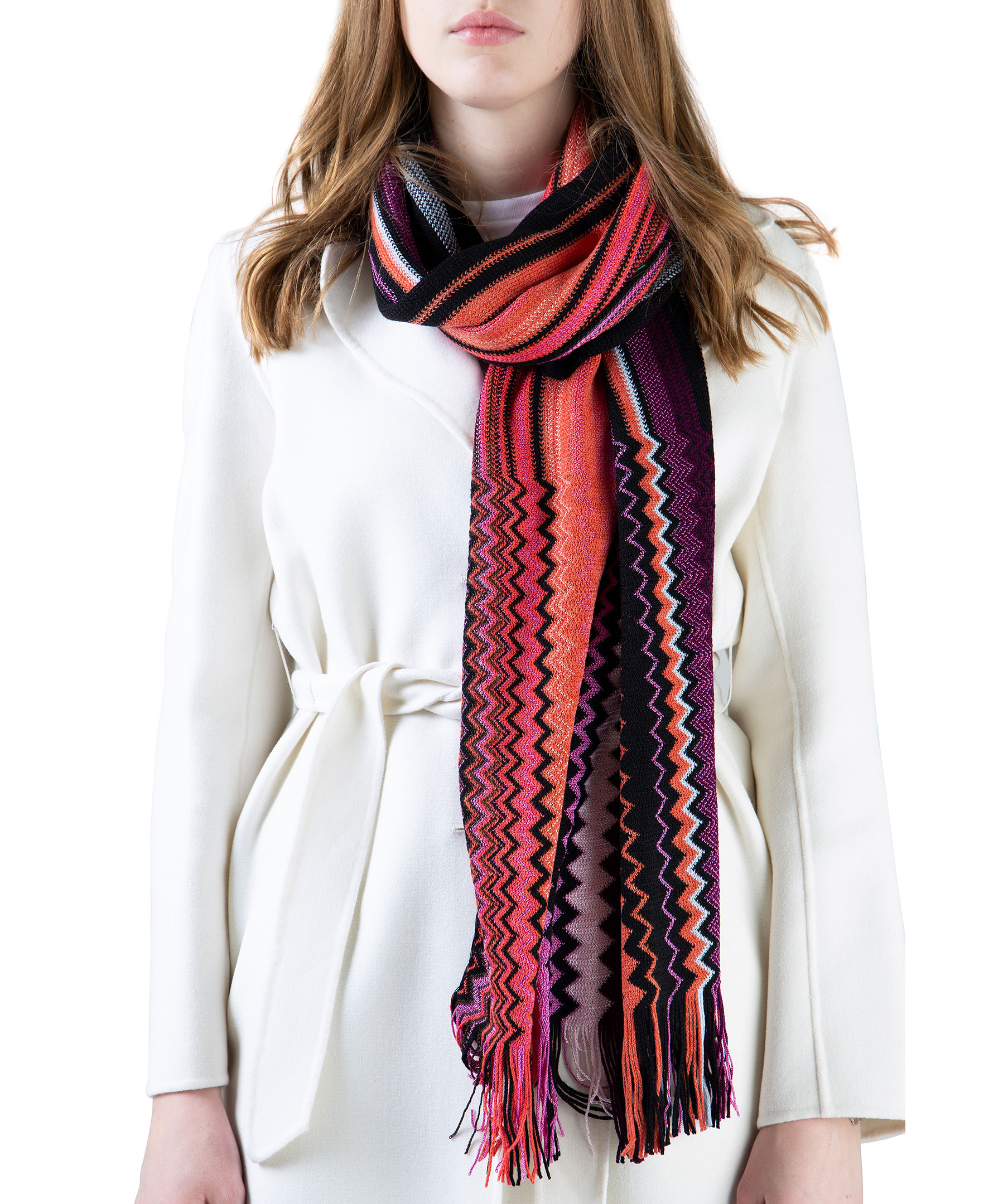 Tunn, flerfärgad halsduk från Missoni med fint inslag av skimmer i garnet. Gjord i det ikoniska Missoni "zick zack" mönstret.