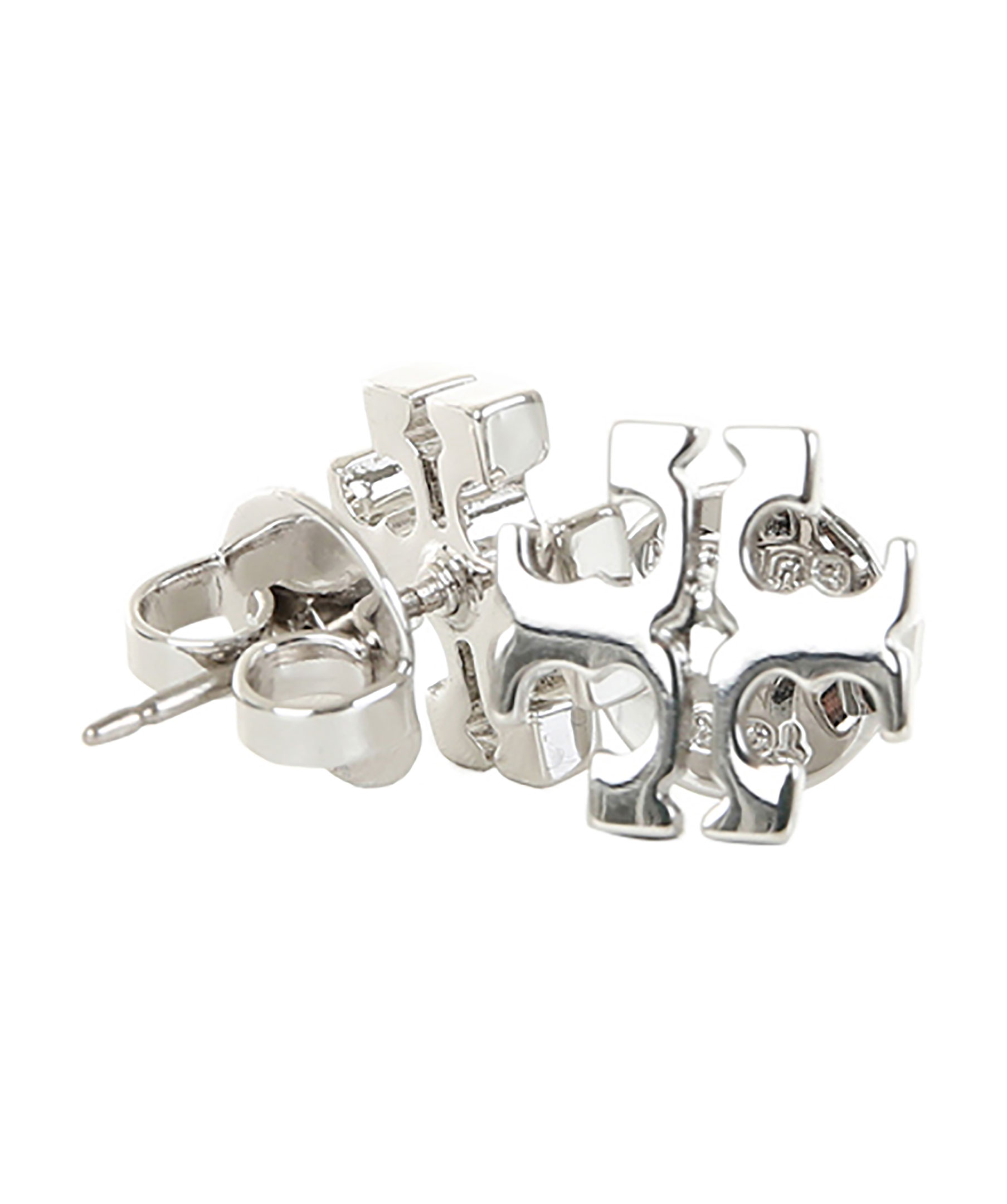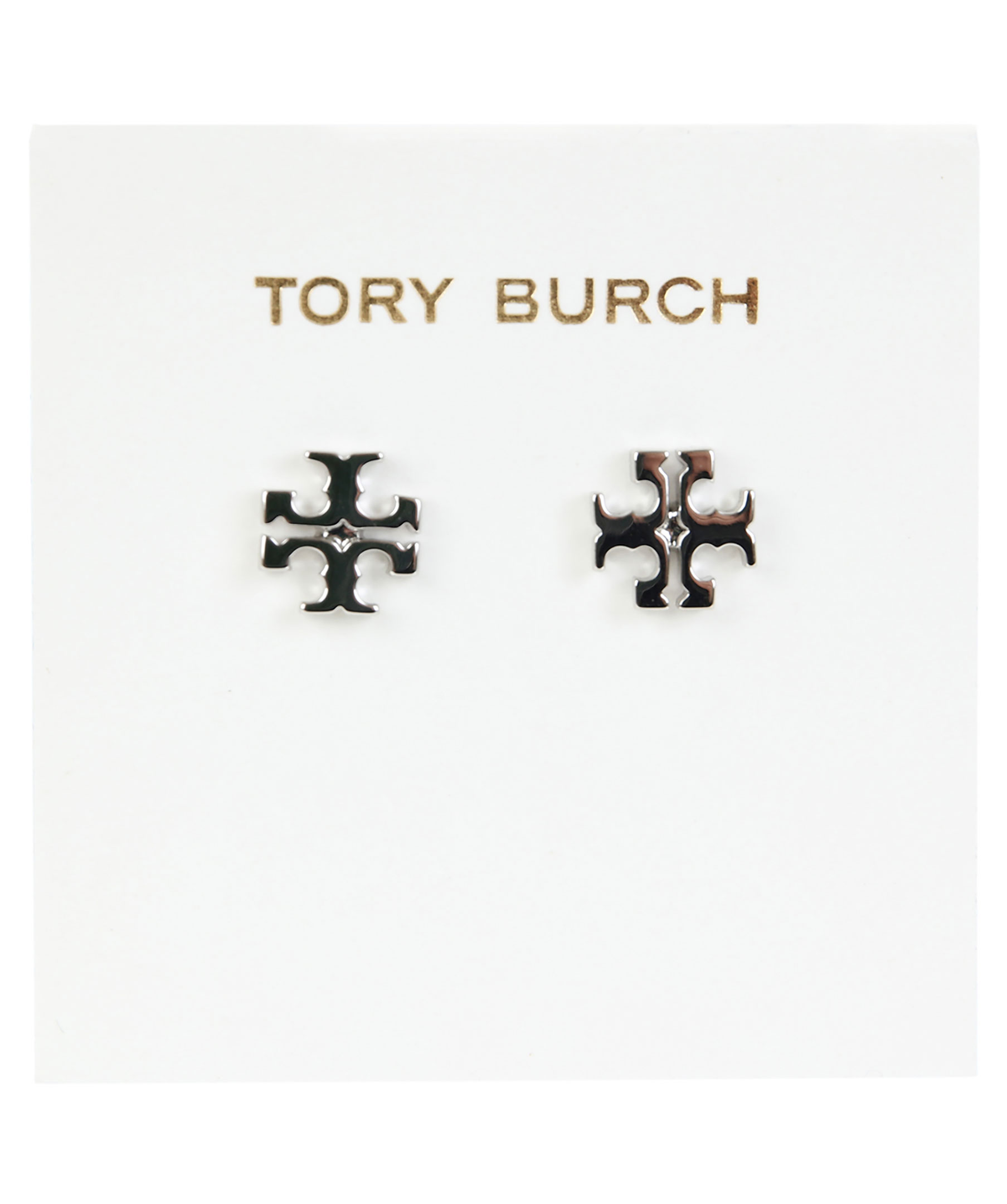 Silverfärgade örhängen från Tory Burch. Tillverkade i pläterad mässing. Nickelfria, 1 x 1 cm.