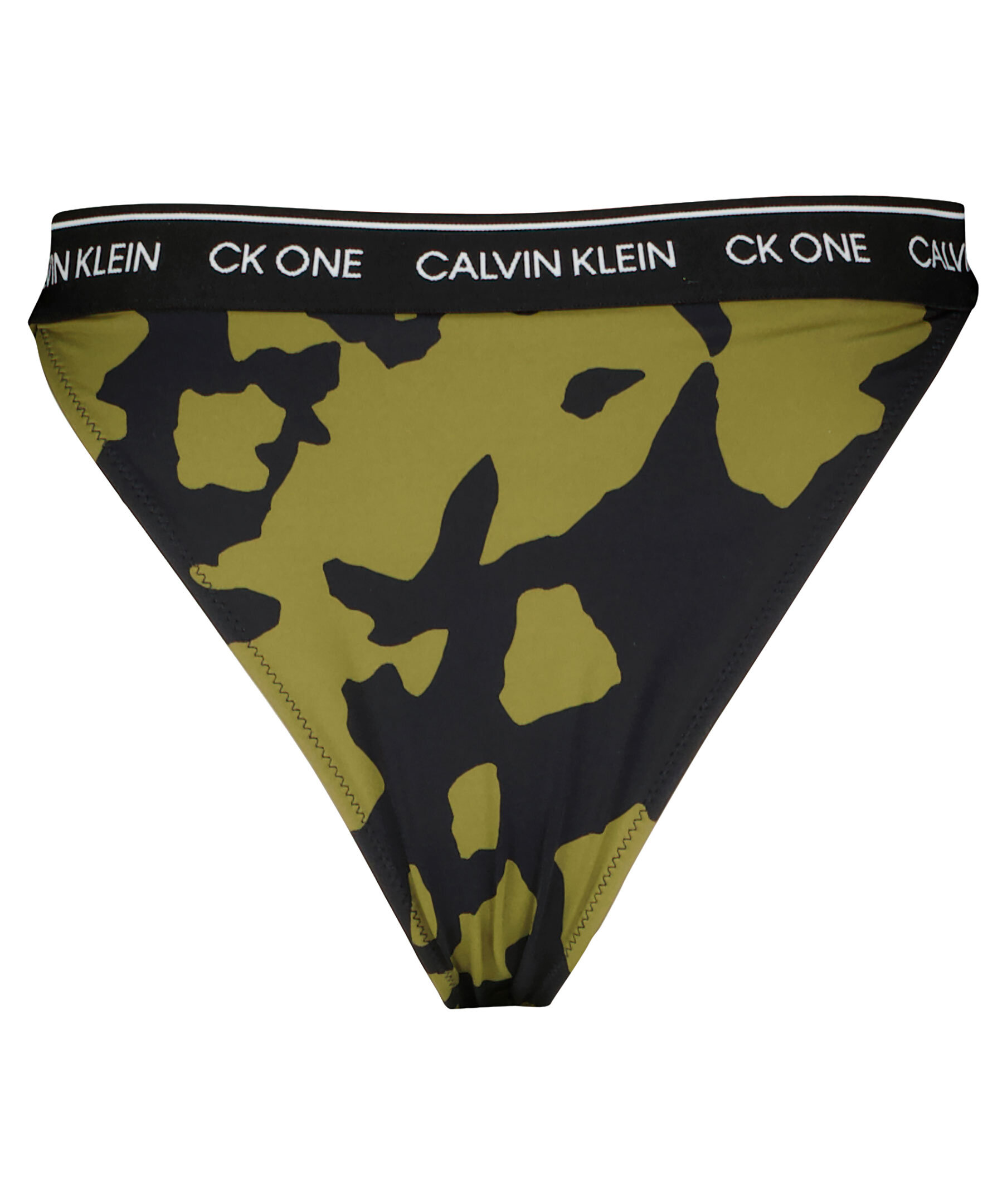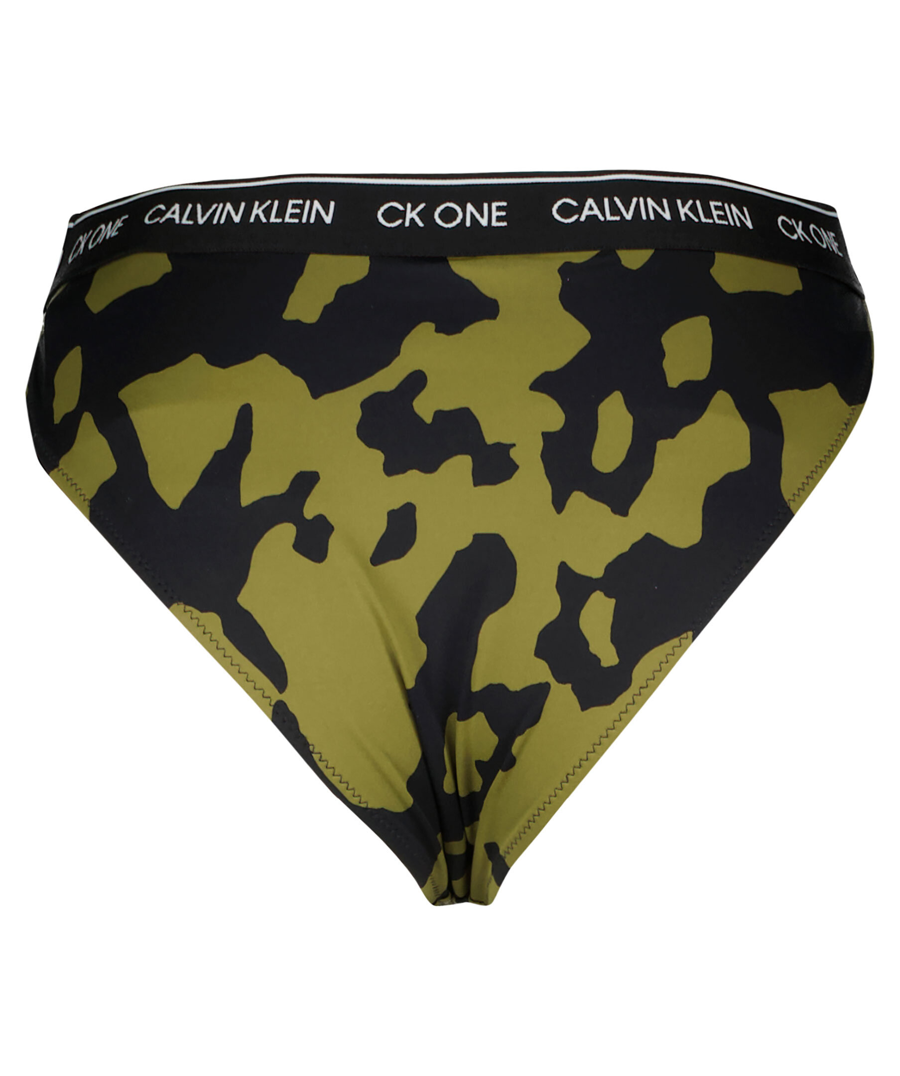 Kamouflagefärgade bikinitrosor i tanga modell från Calvin Klein. Svart stretchigt elastiskt band med logotyper runt midjan. Gjorda i en blandning av polyamid och elastan.