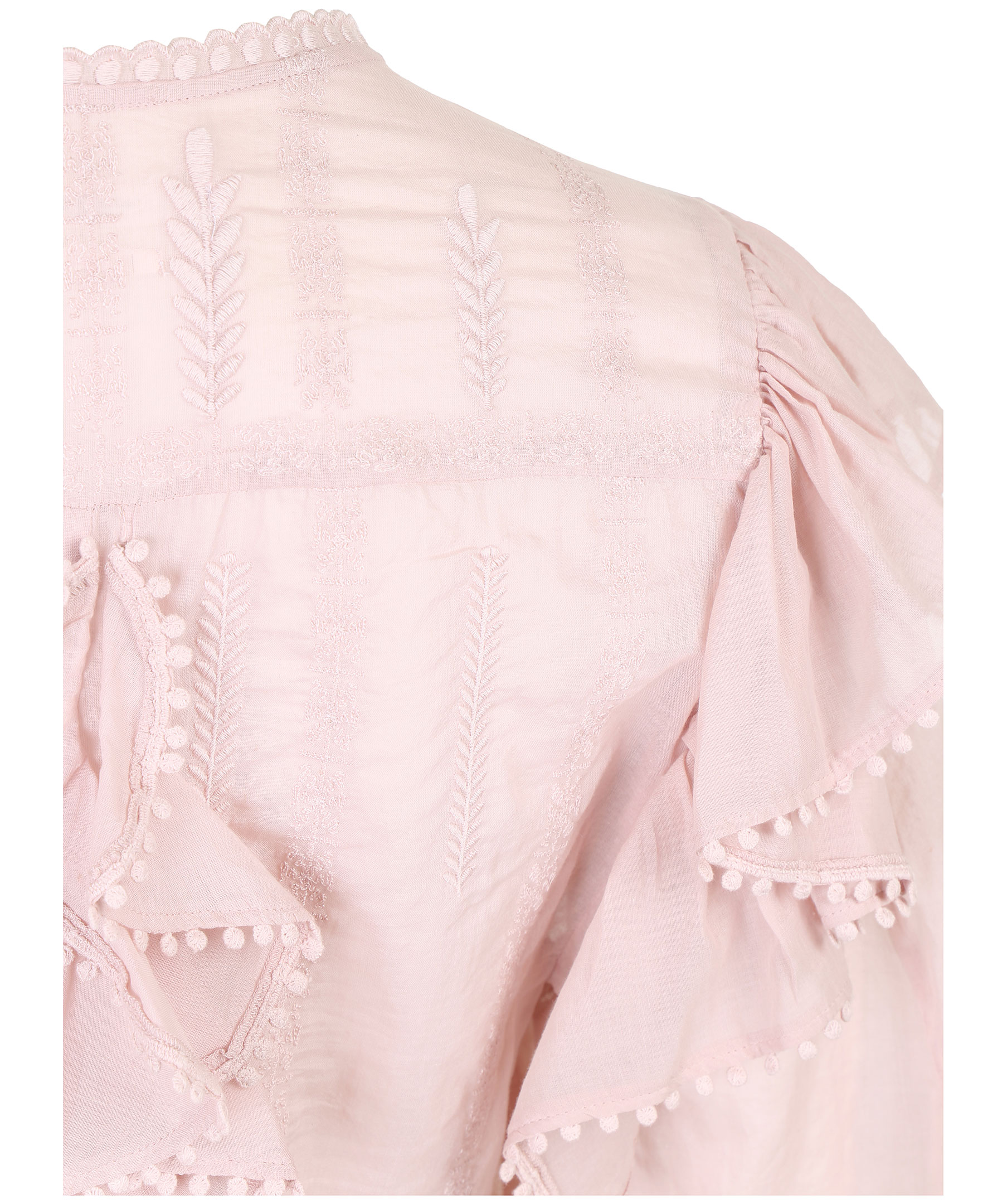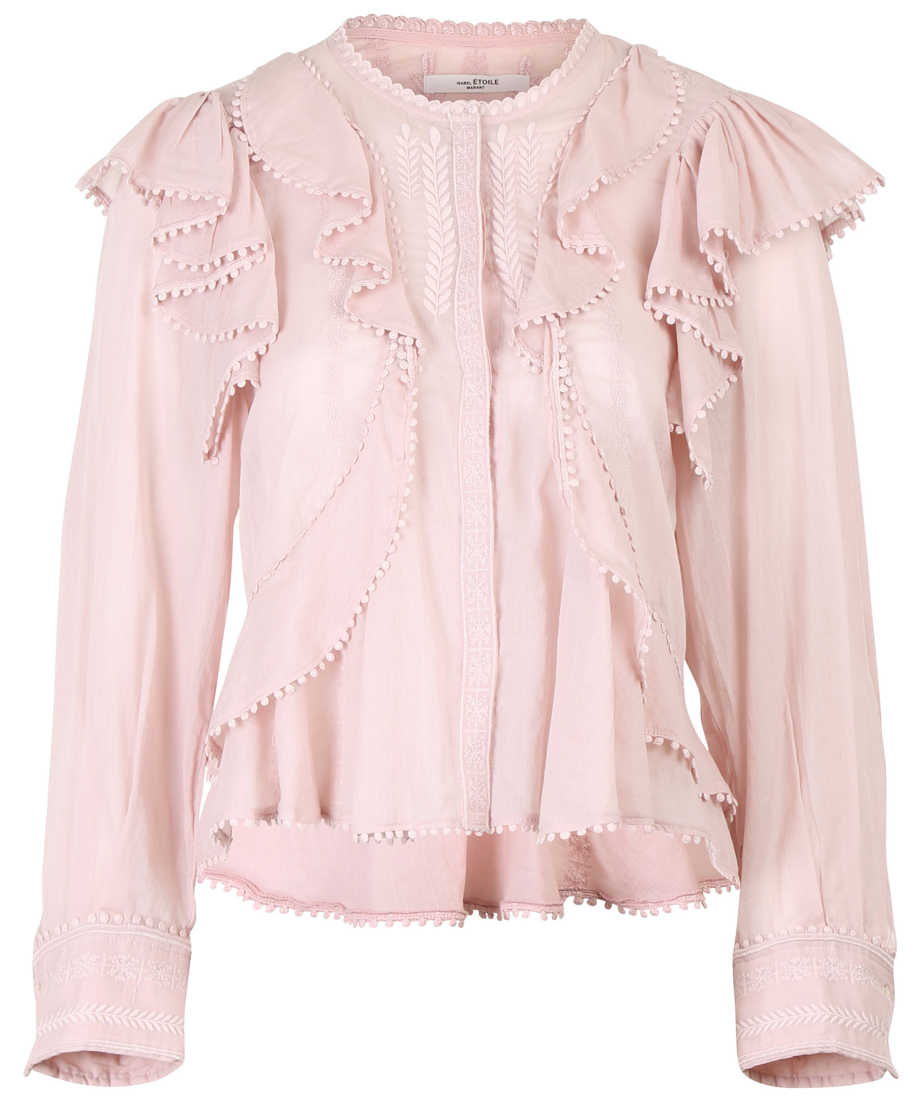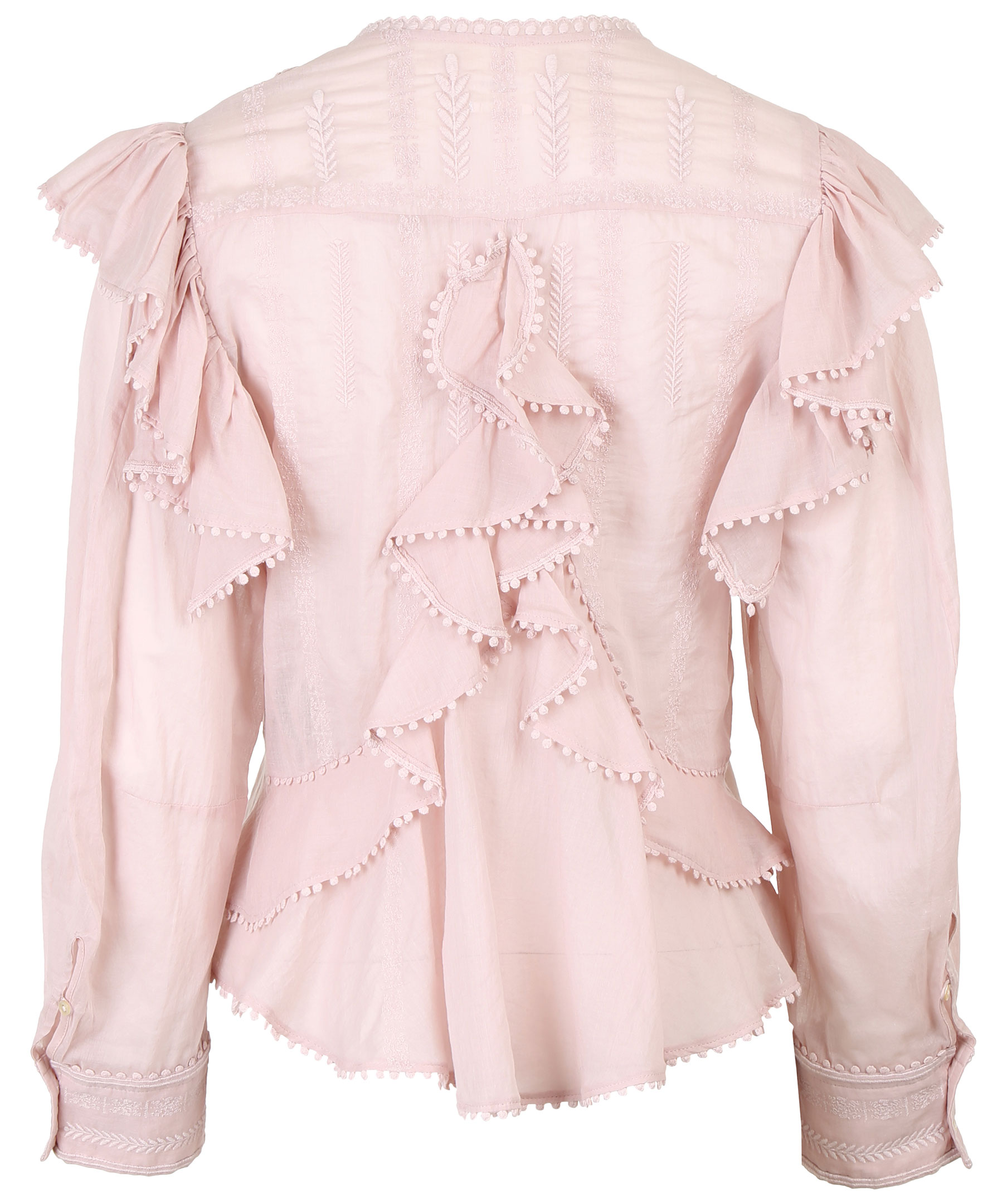 Långärmad blus från Isabel Marant Étoile. Volang- och brodyrdetaljer fram och bak. Stängs med dolda knappar framtill.