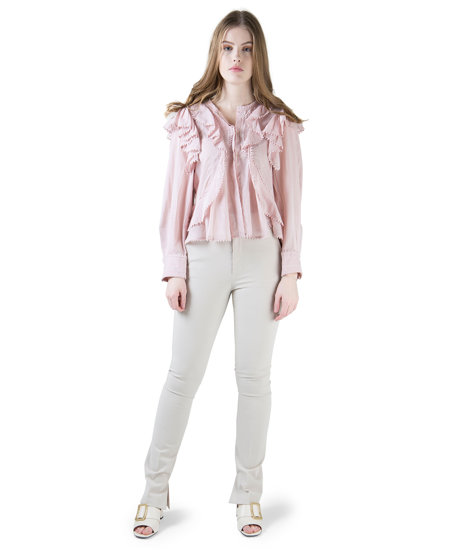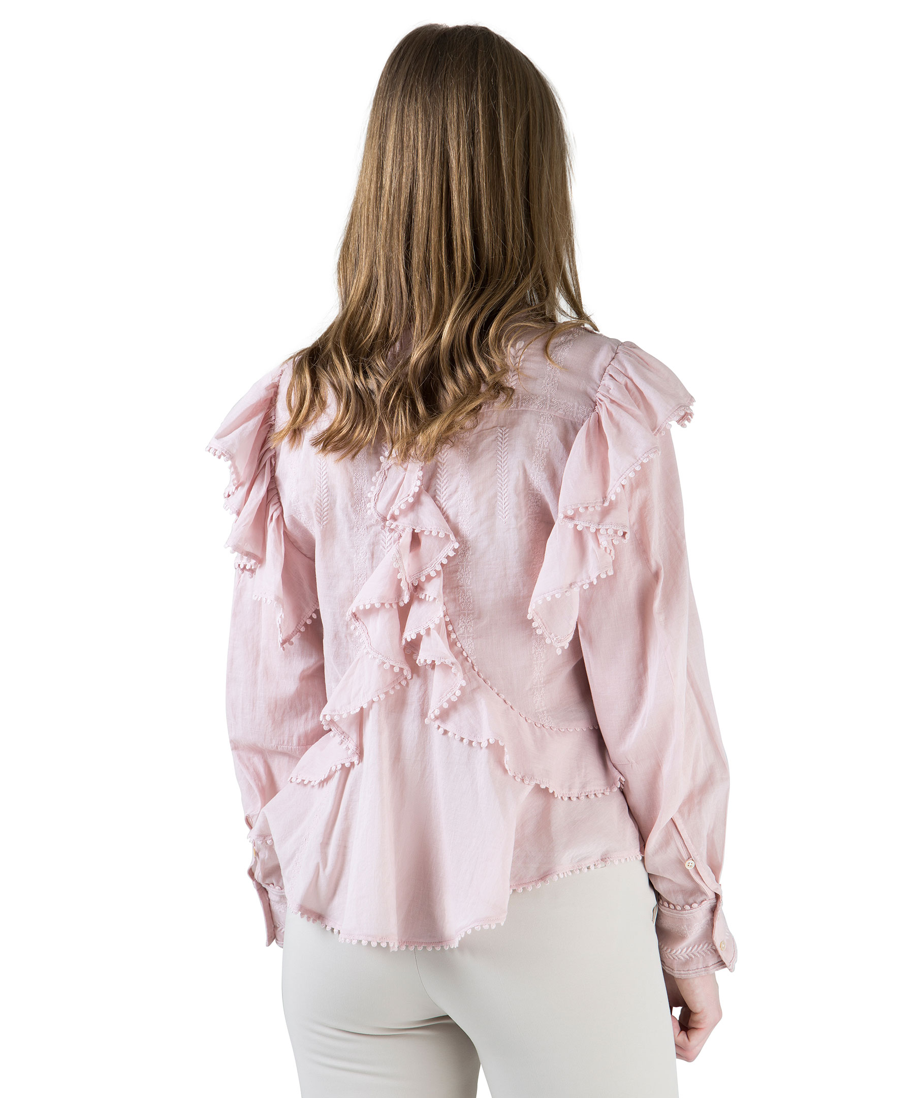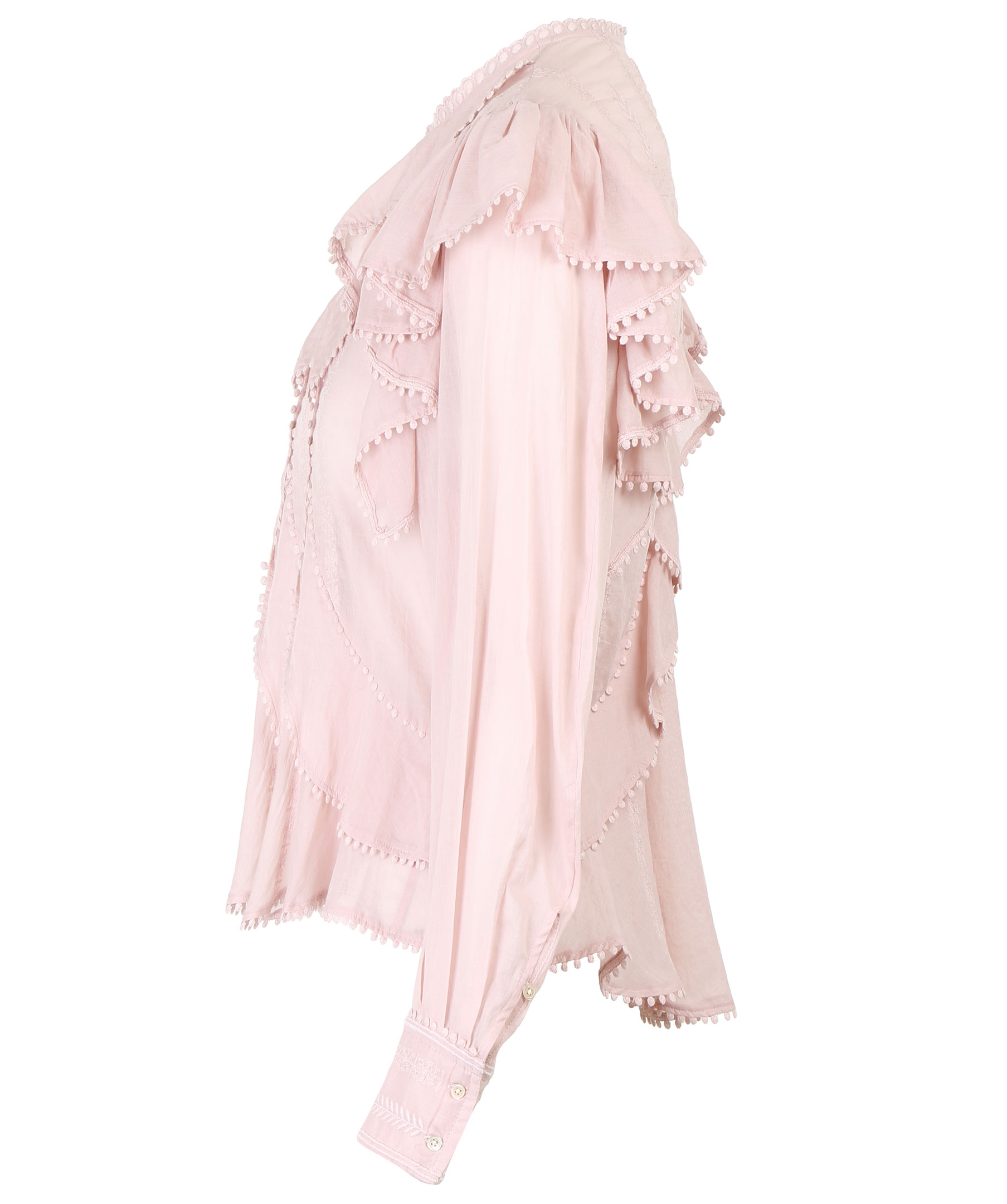 Långärmad blus från Isabel Marant Étoile. Volang- och brodyrdetaljer fram och bak. Stängs med dolda knappar framtill.