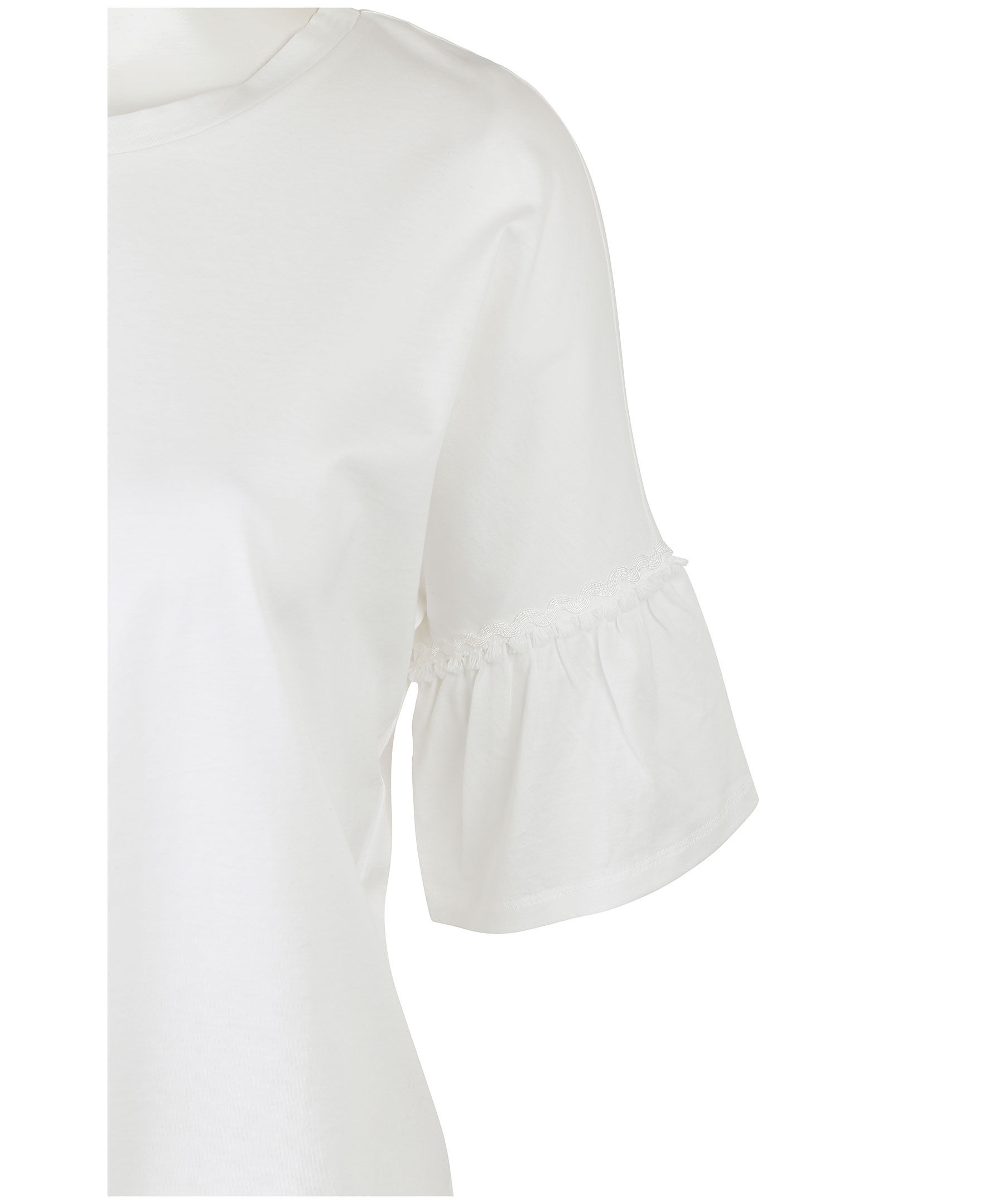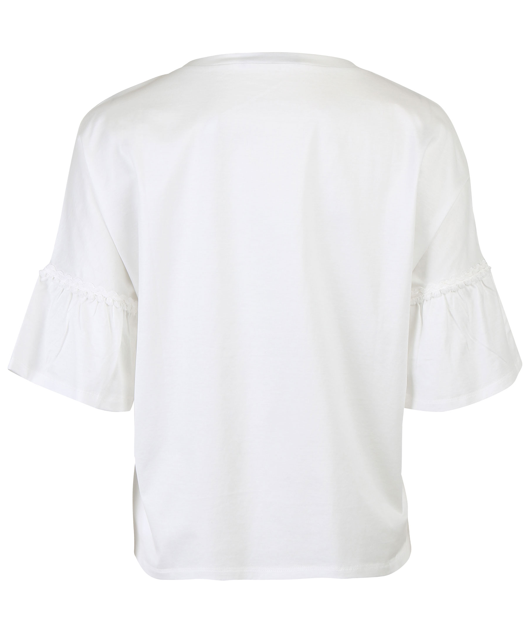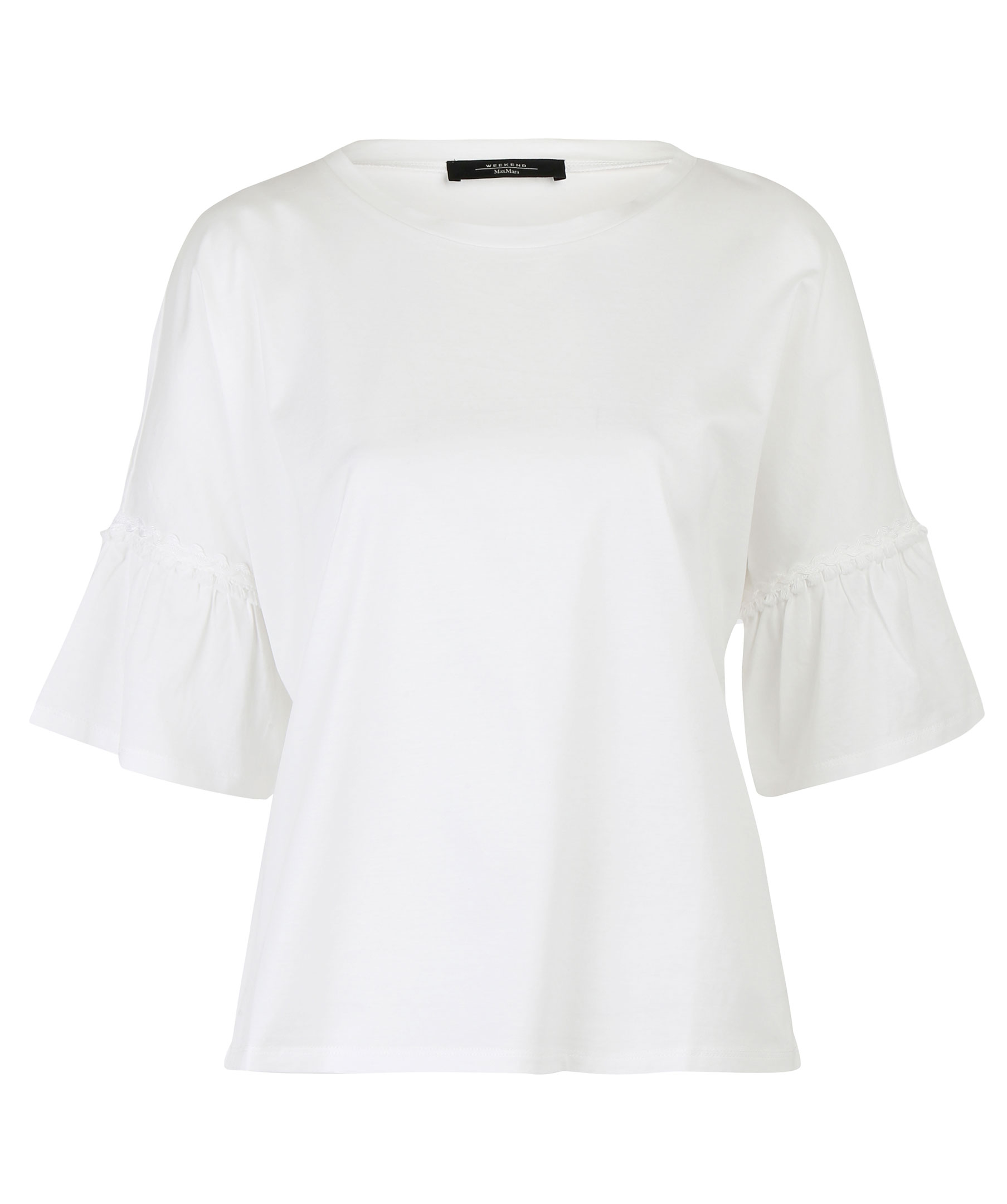 Vit kortärmad blus från MaxMara Weekend. Fransad detalj runt blusens ärmar. Tillverkad i skön bomull.
