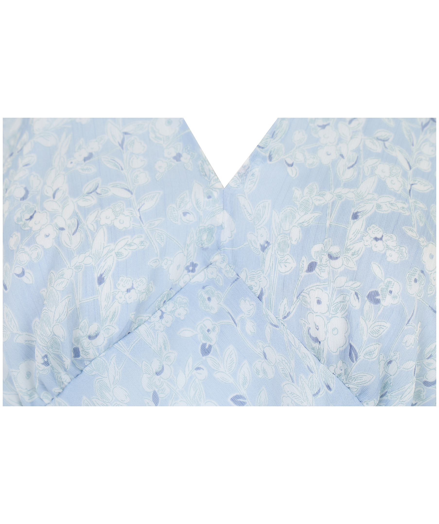 Ljusblå blommig blus från Lauren Ralph Lauren. Blusen är v-ringad, kortärmad med lätt volang och tunt fodrad.