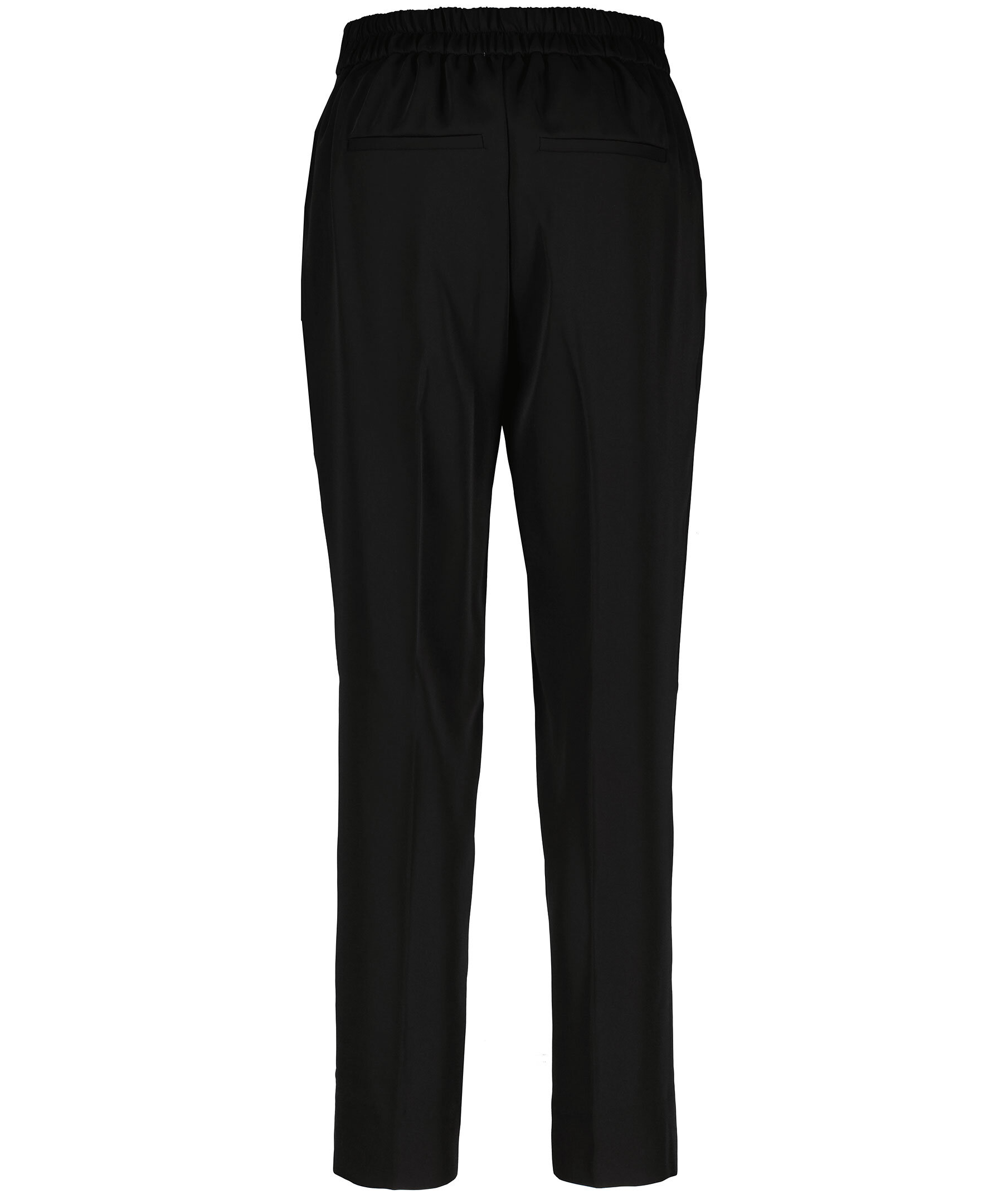 Svarta kostymbyxor från Second Female. Vida byxben, pressveck fram och bak samt hög midja. Mudd på baksidan av midjan och öppna snedställda fickor i sidorna och raka fickor bak.