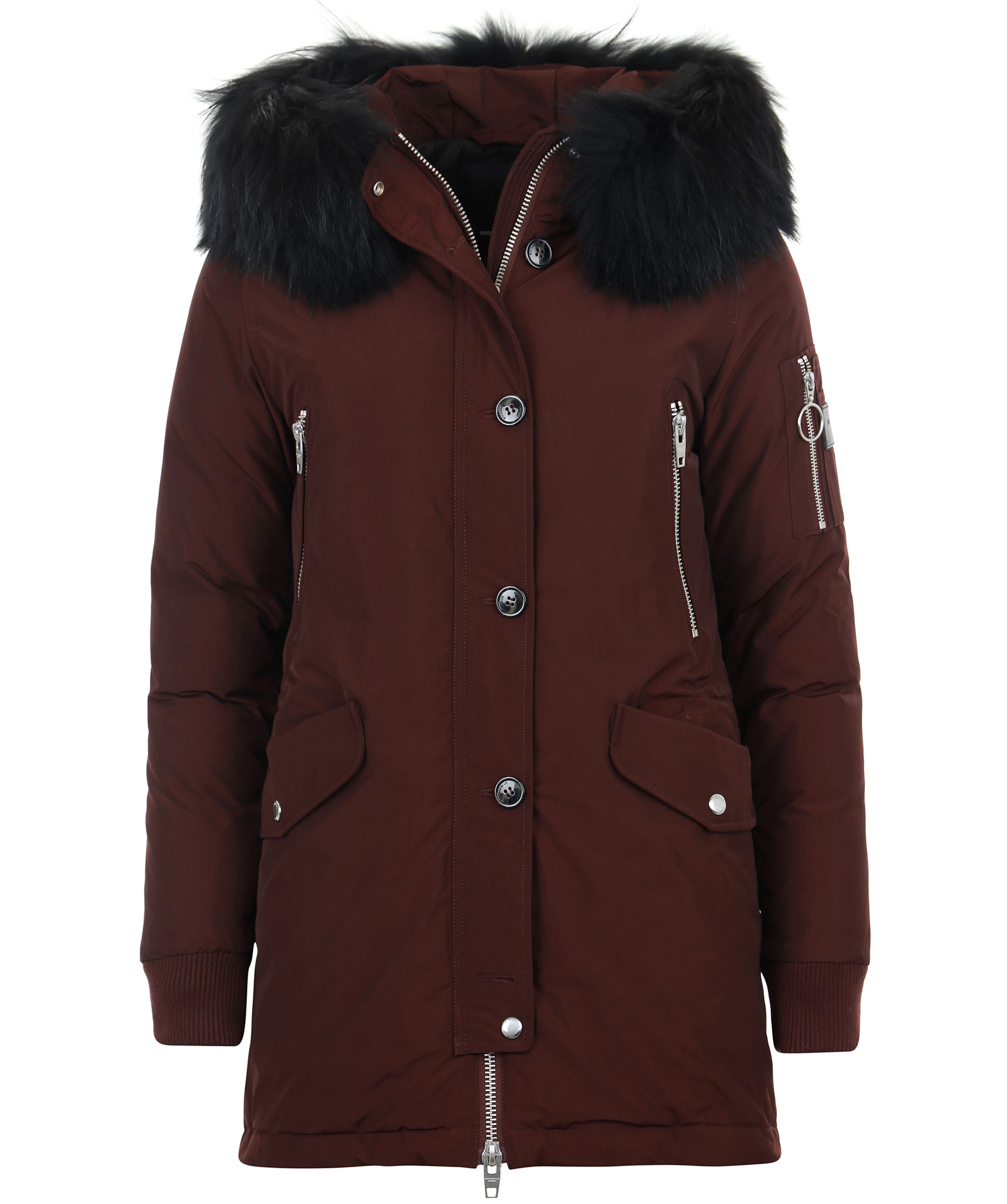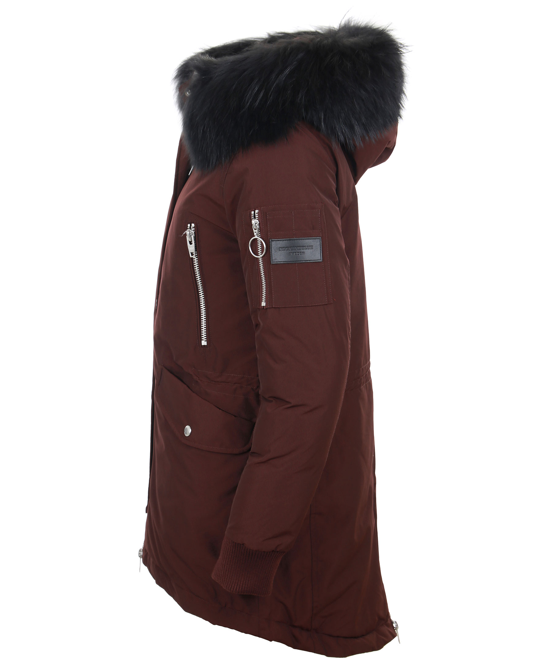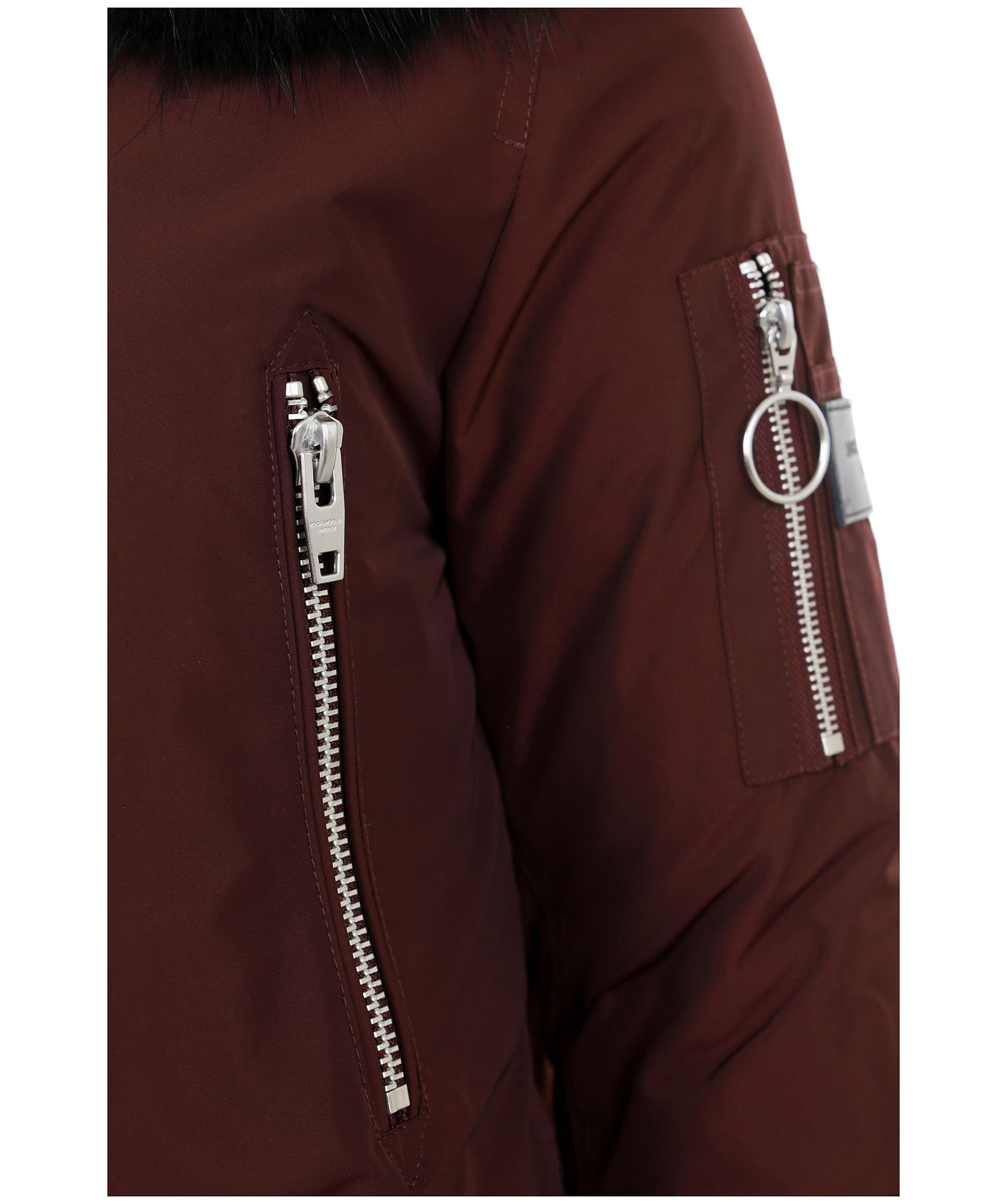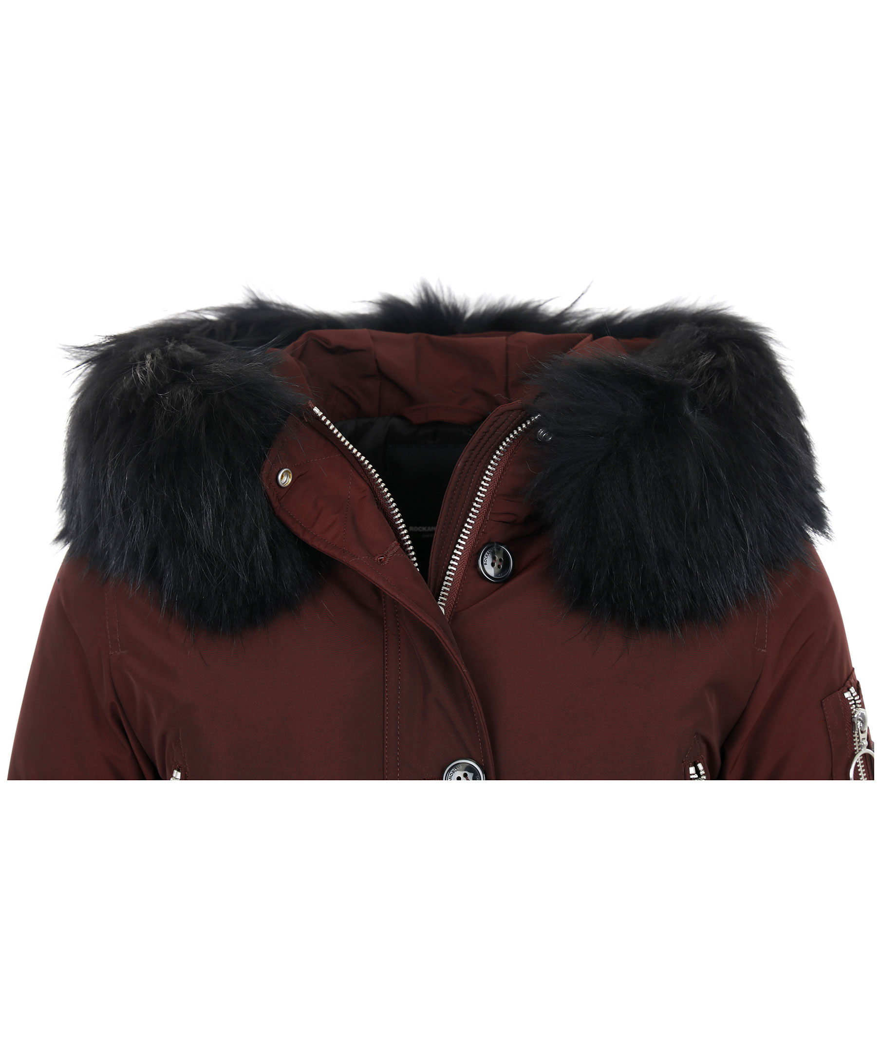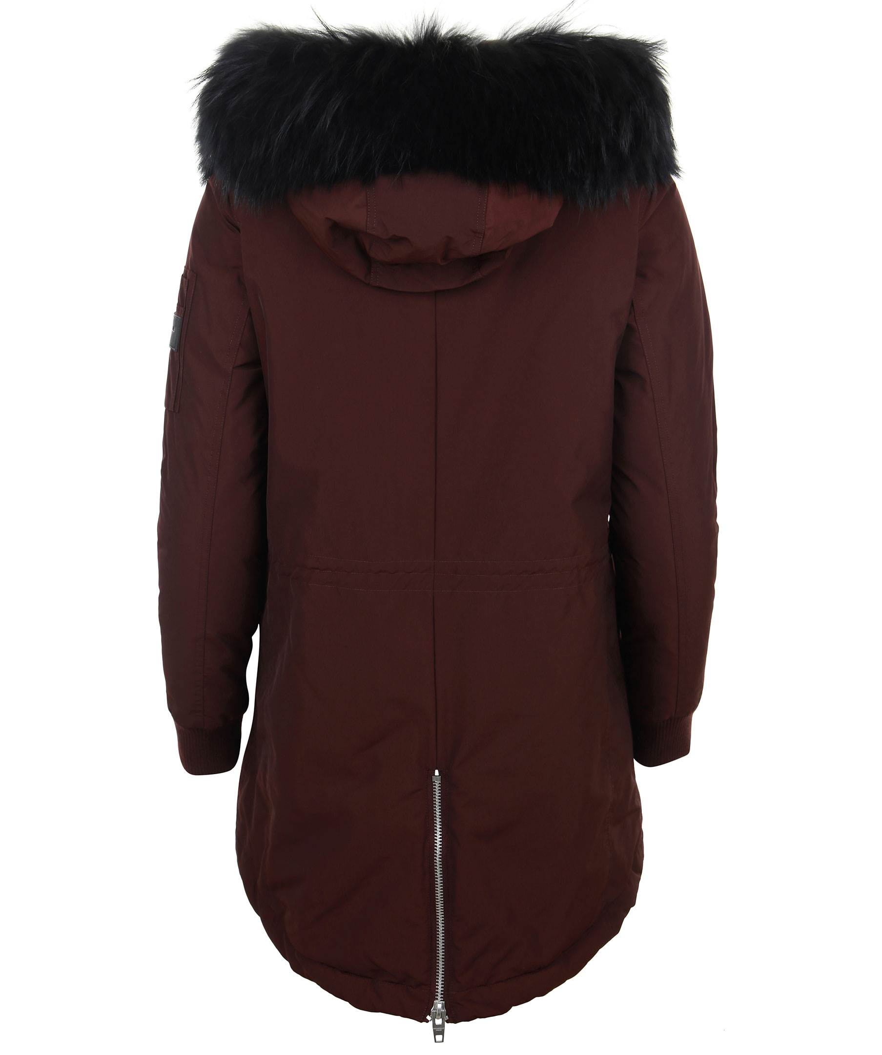 Vinröd dunparkas från Rockandblue i lite längre modell. Fyra fickor fram, logotyp och ficka på vänster ärm, löstagbar naturpäls i luvan samt fyra innerfickor. Stängs med knappar och dragkedja.