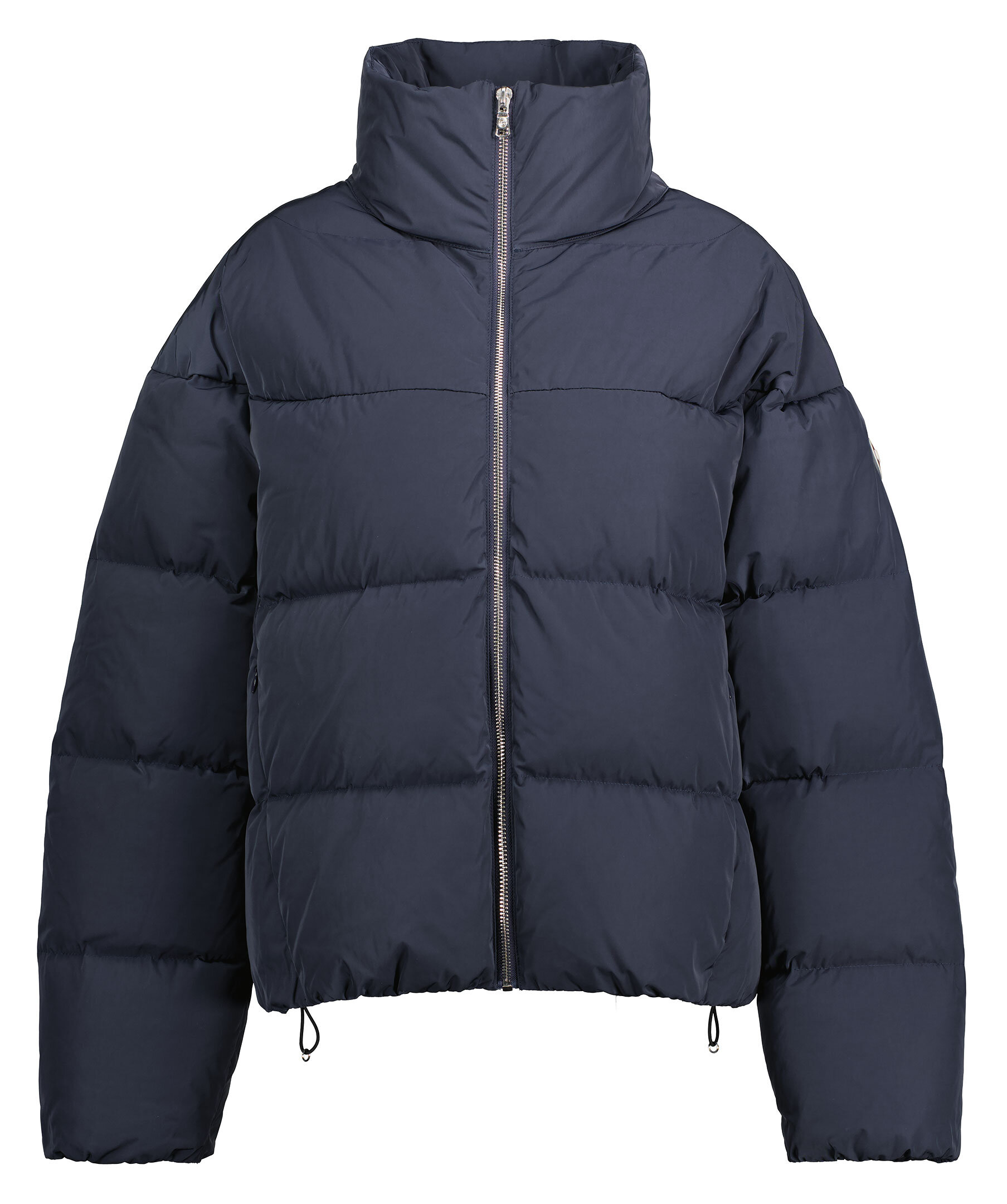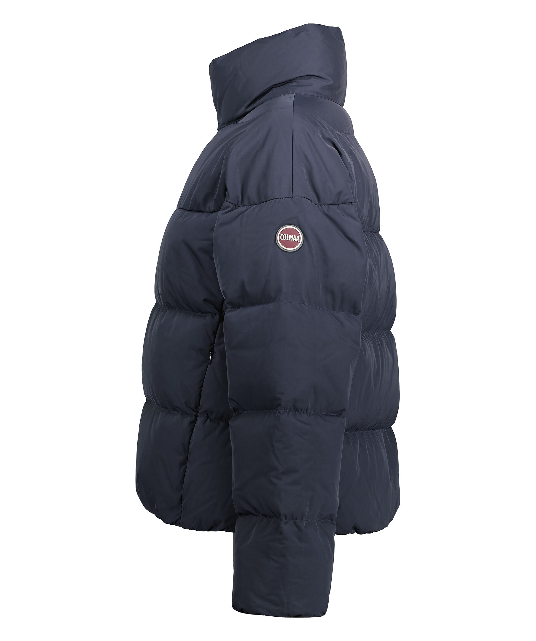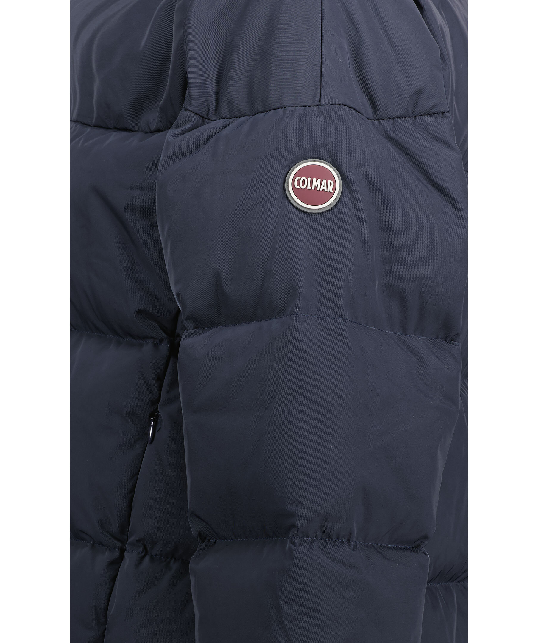 Mörkblå quiltad dunjacka från Colmar. Stängs framtill med dragkedja. Gummerad patch med logotyp på vänster ärm. Två fickor framtill som stängs med dragkedja. Jackslut med dragsko.