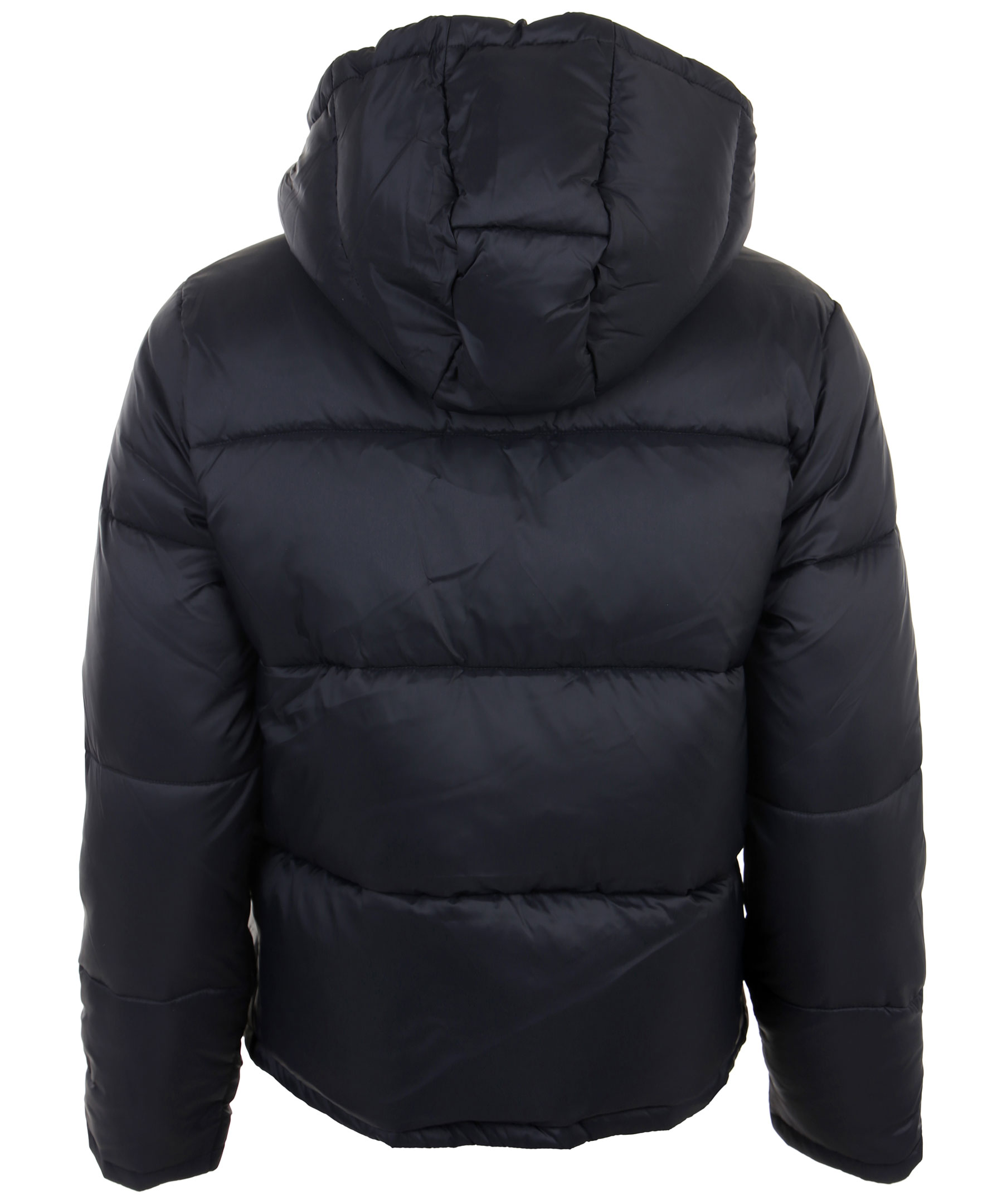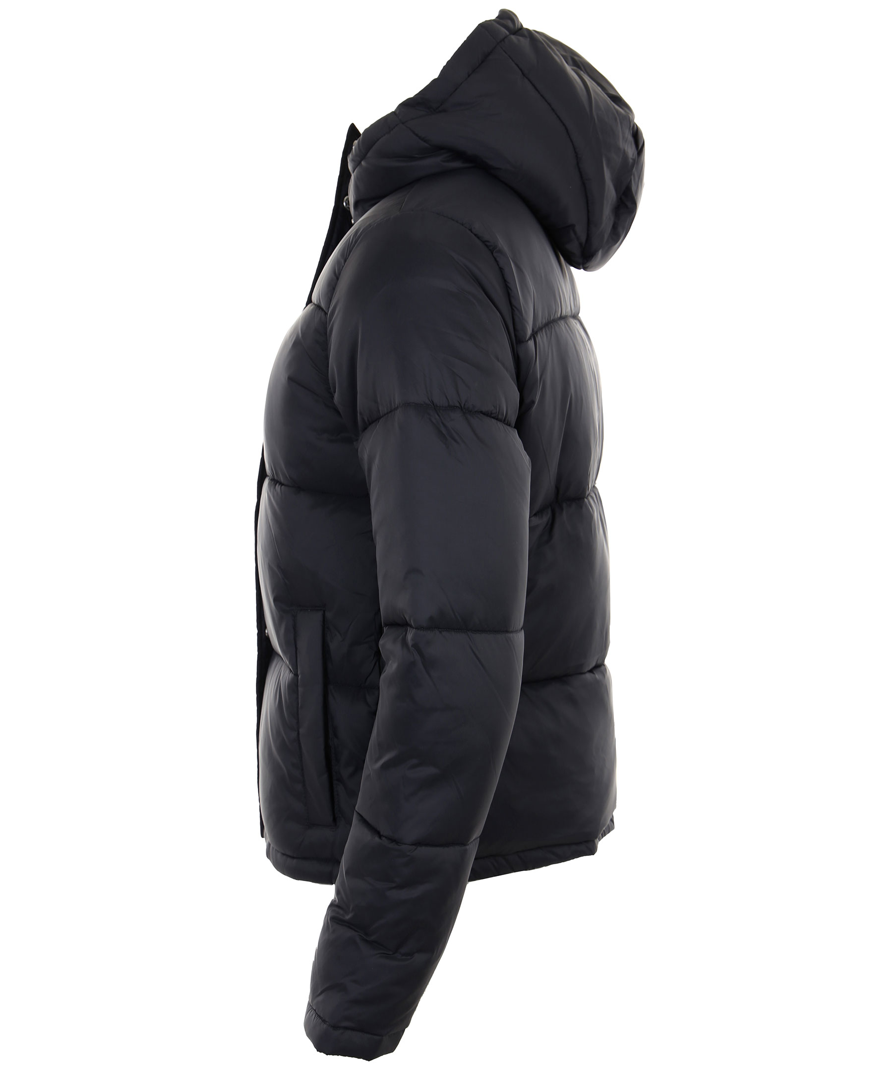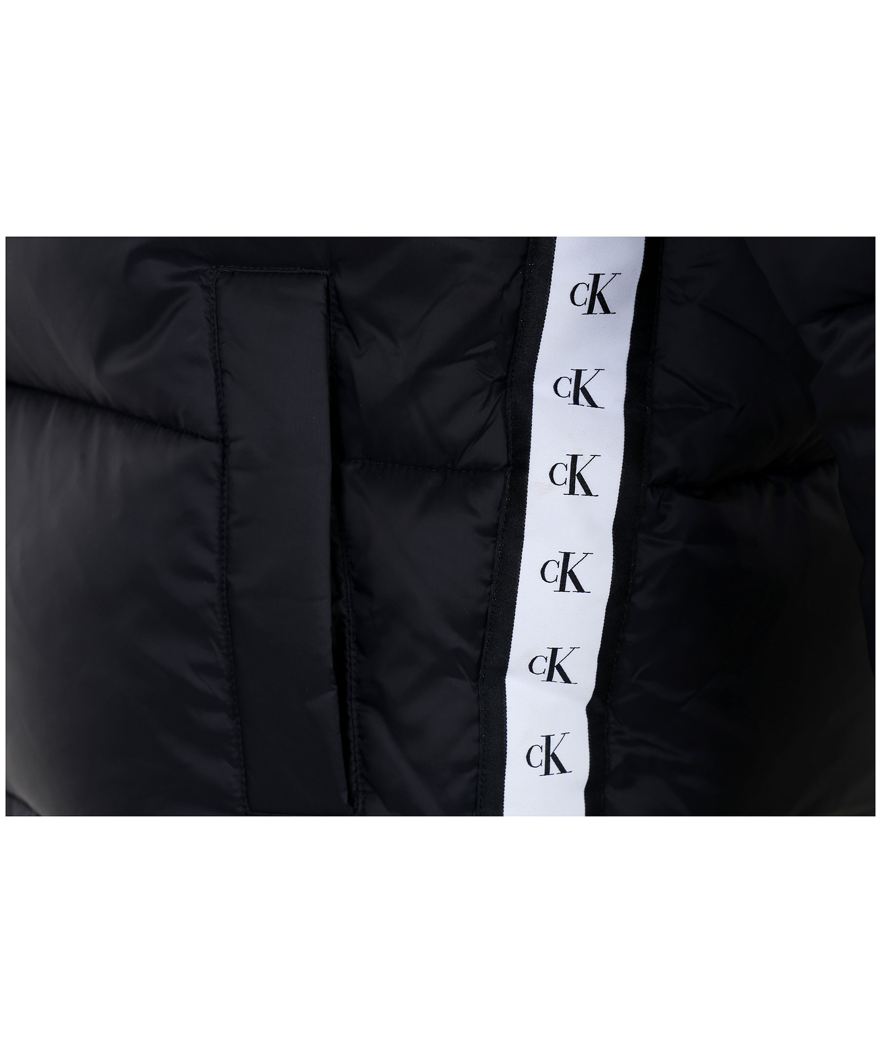 Kort, svart jacka från Calvin Klein i 100% polyester. Stängs med dold dragkedja och tryckknappar. Luva och dubbla fickor fram med tryckknapp. Vita revärer på sidorna med logotyper.