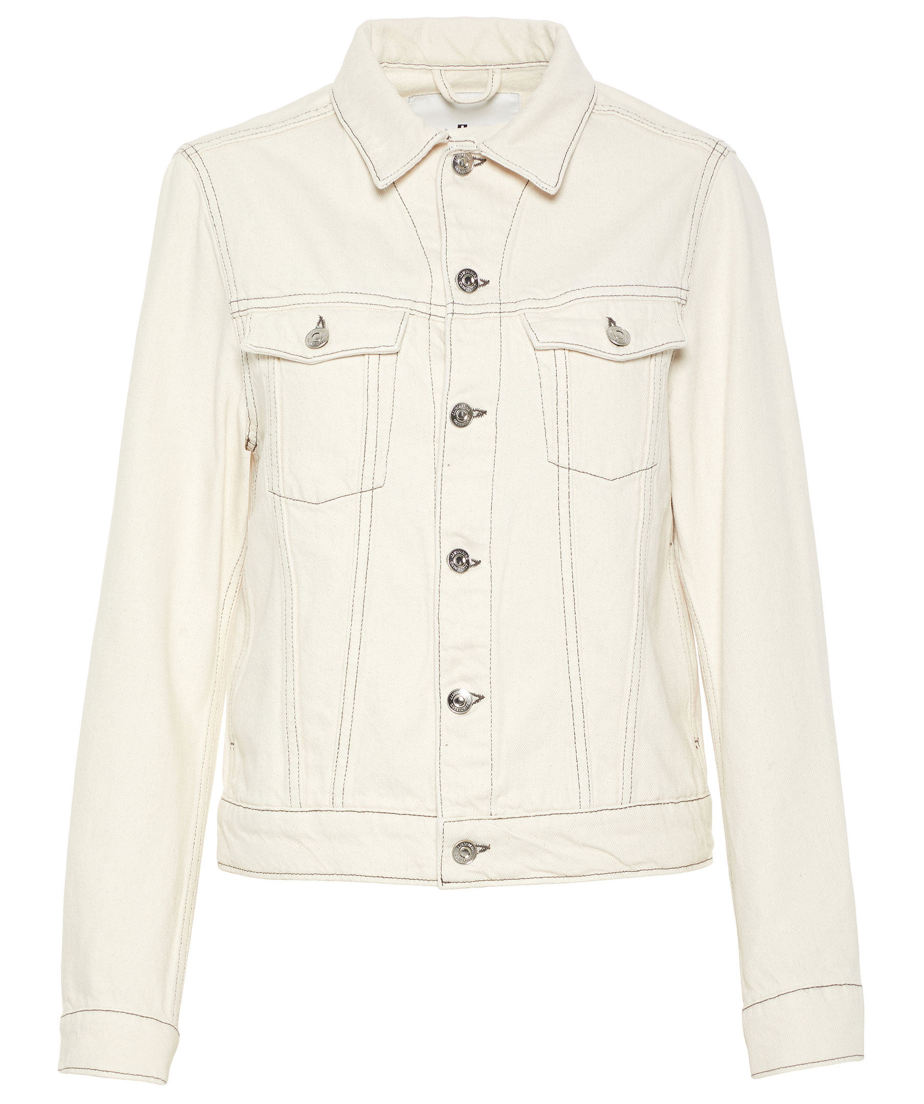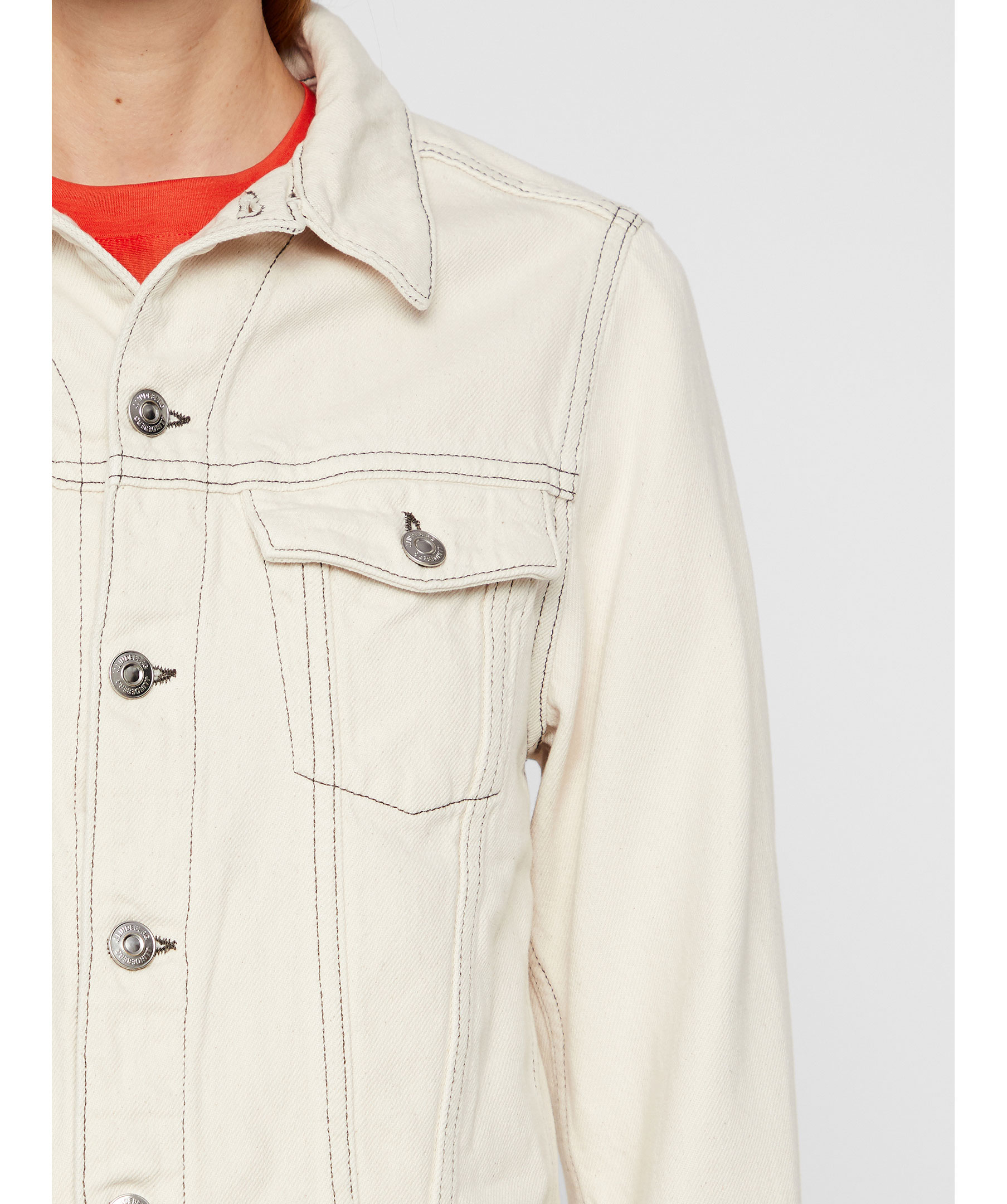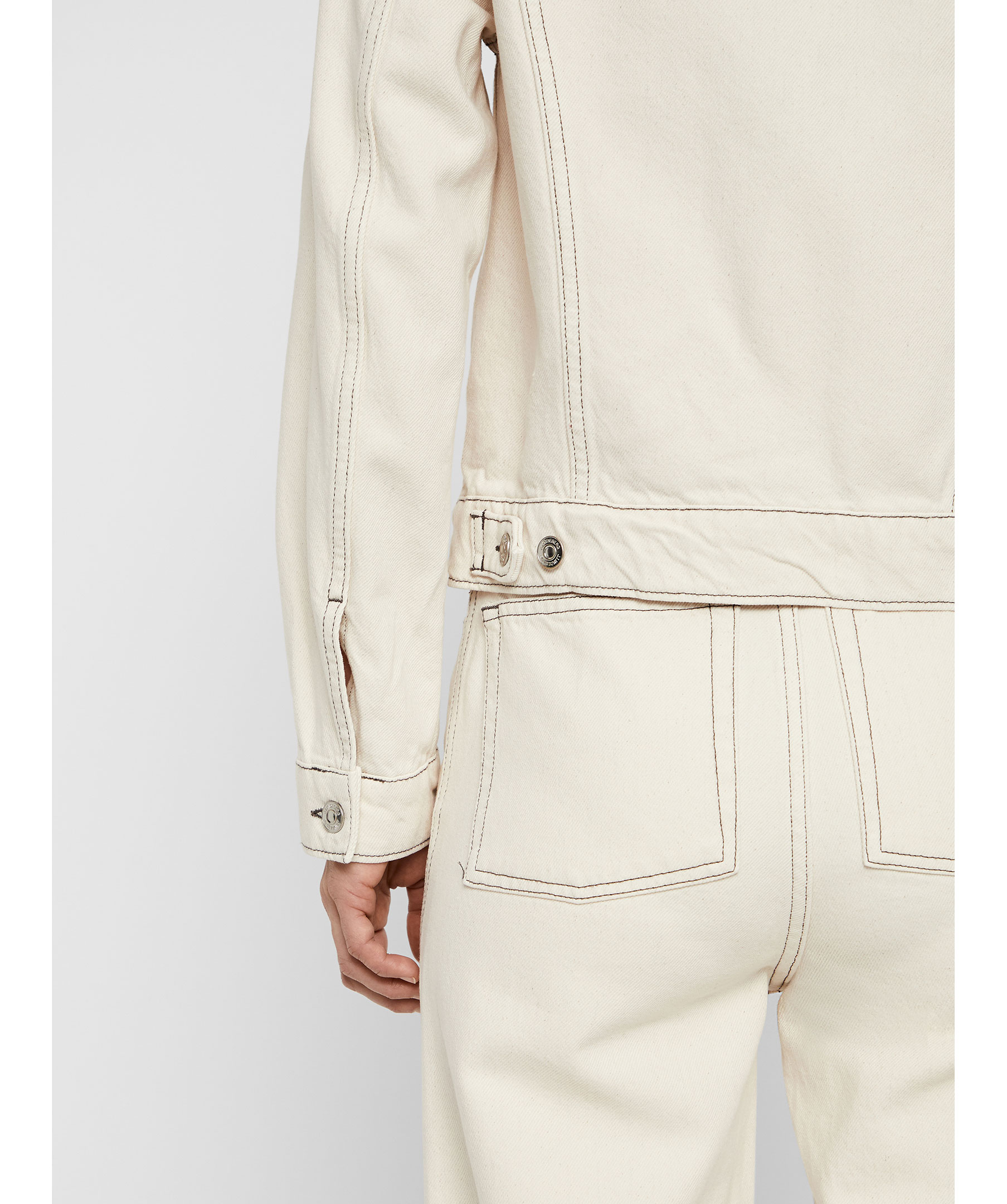 Vit jeansjacka från J. Lindeberg. Tillverkad i bomull. Två bröstfickor, silverfärgade knappar, kontrastfärgade sömmar.
