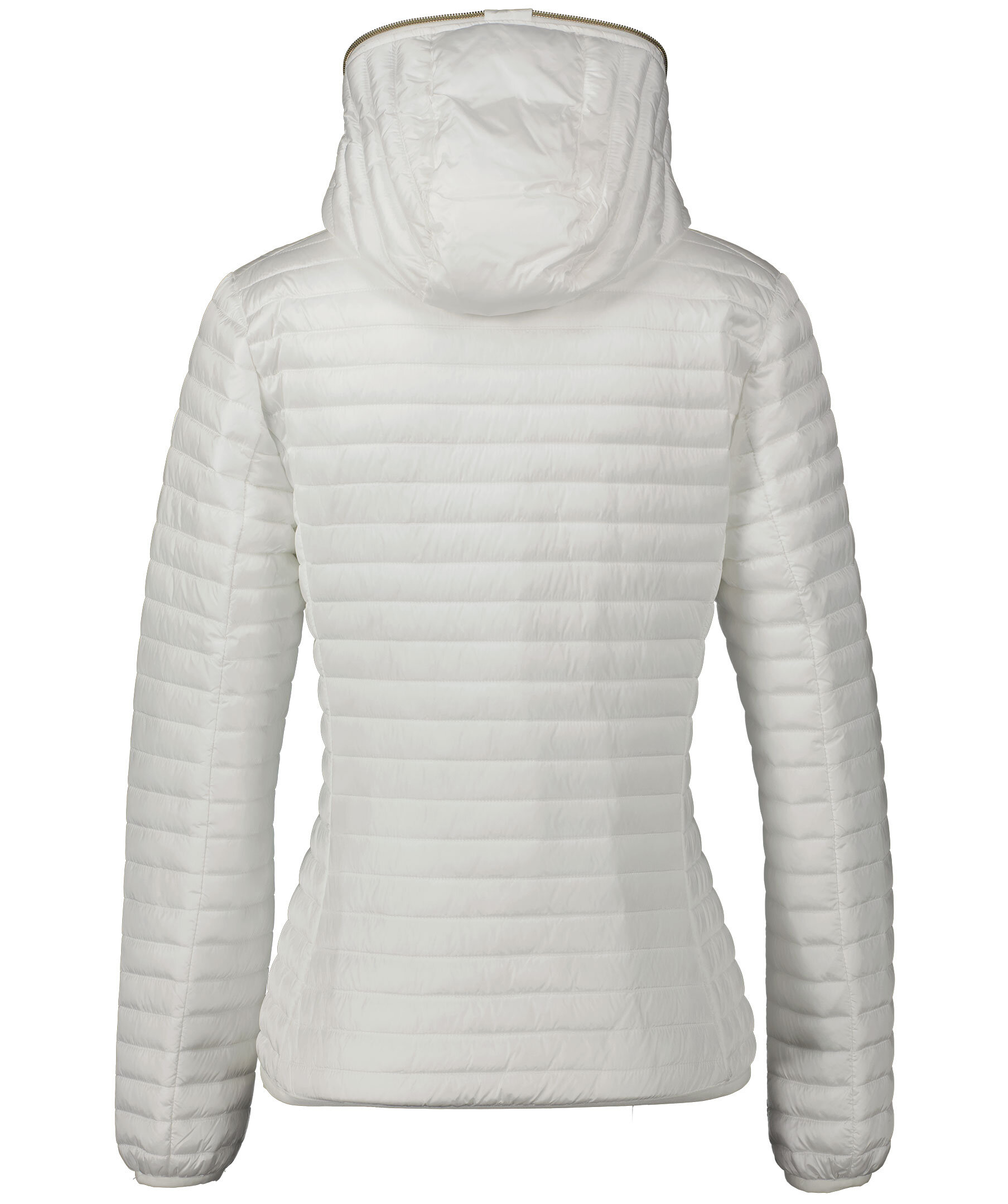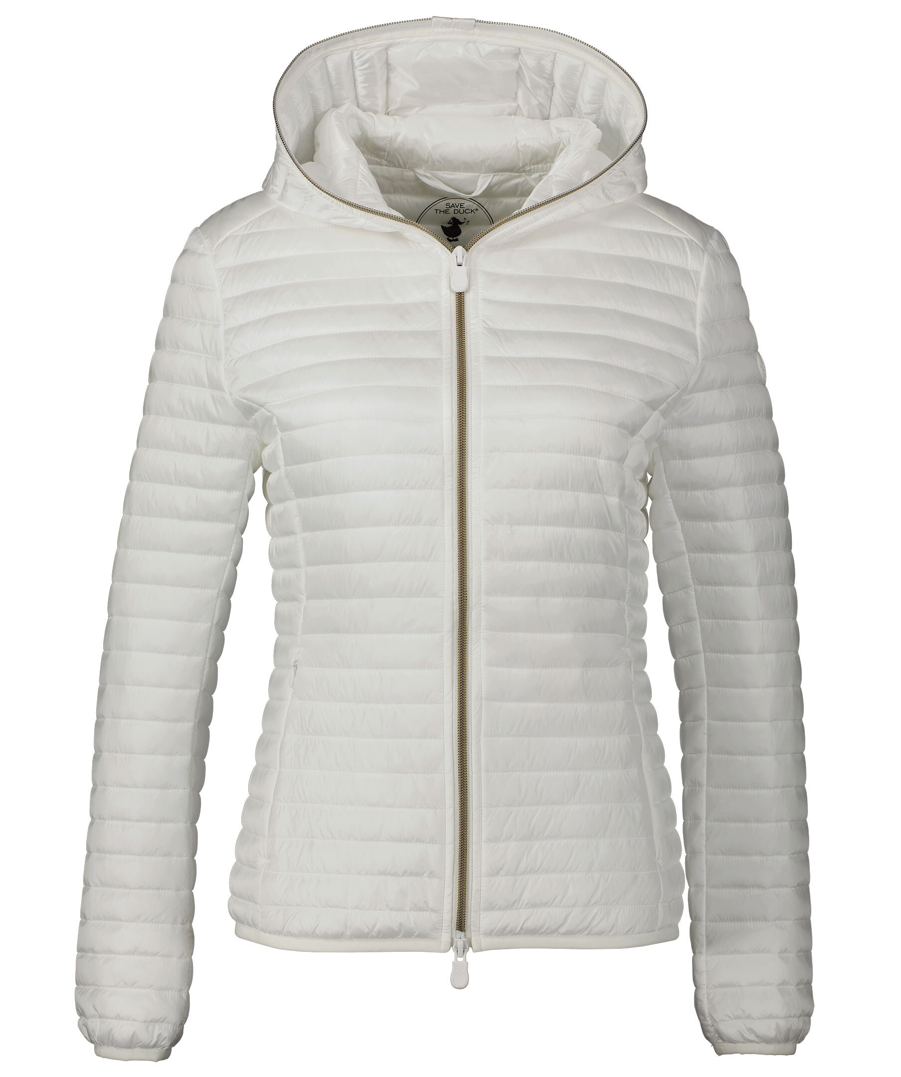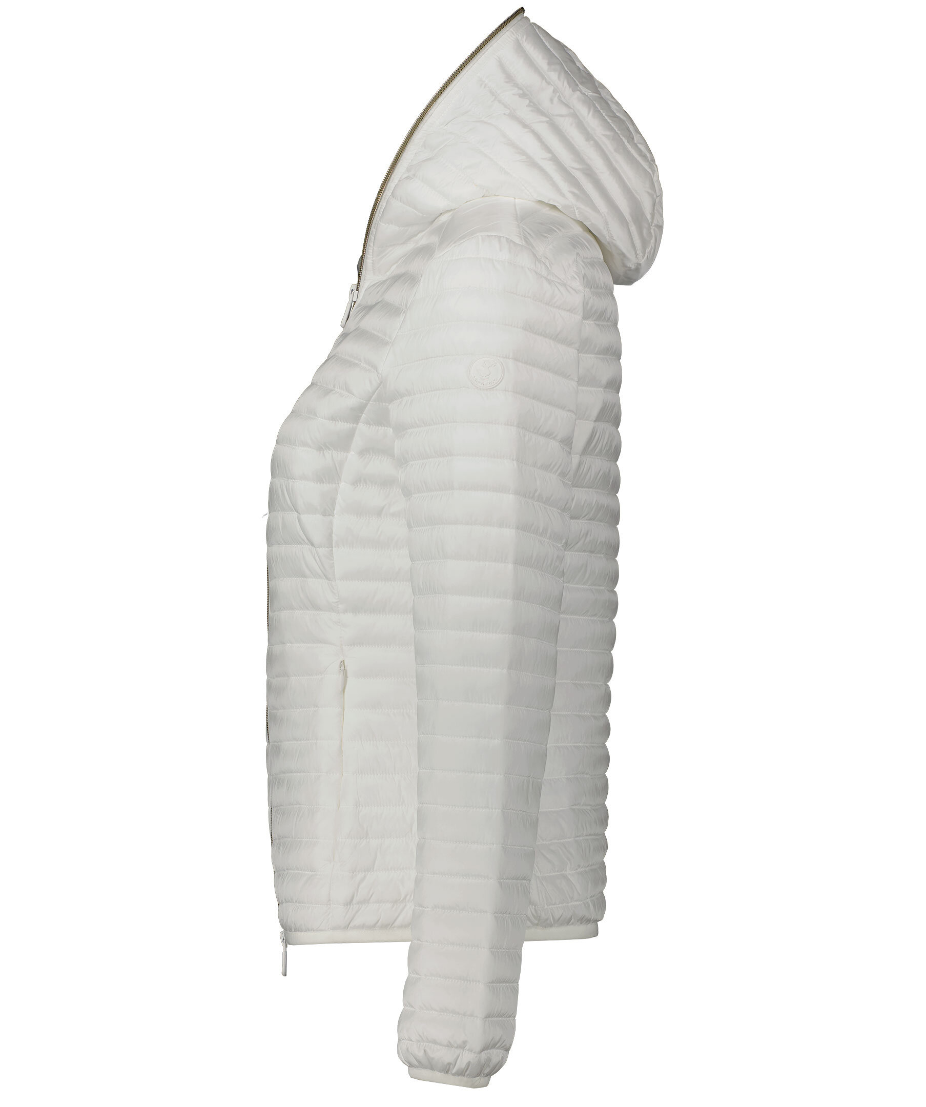 Vit, kort jacka med luva, fodrad med polyesterfoder från Save The Duck. Jackan är gjord ett halvglansigt nylontyg, har två framfickor med dold dragkedja. Stängs med guldfärgad tvåvägsdragkedja som går hela vägen runt längs luvans kant så att man kan dra ihop jackan upp till toppen av luvan. Jackan har vattenavvisande och andningsaktiva egenskaper och passar kyliga vår och höstdagar. Rund logotyp i gummi på vänster ärm. * Foder i polyester * Tvåvägsdragkedja * 100% Nylon