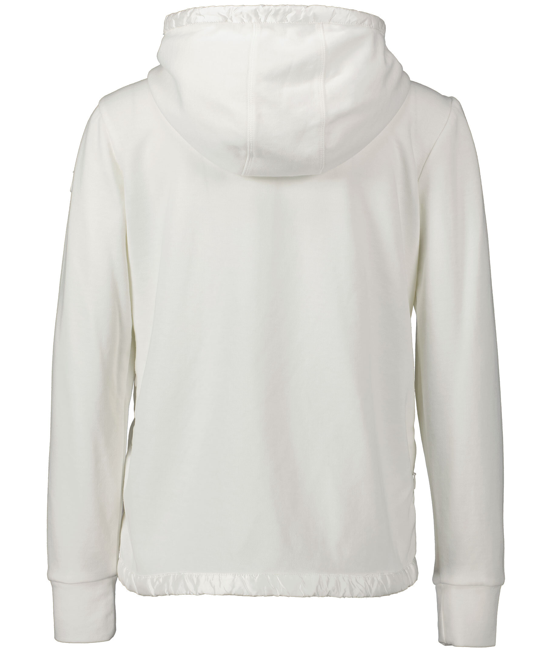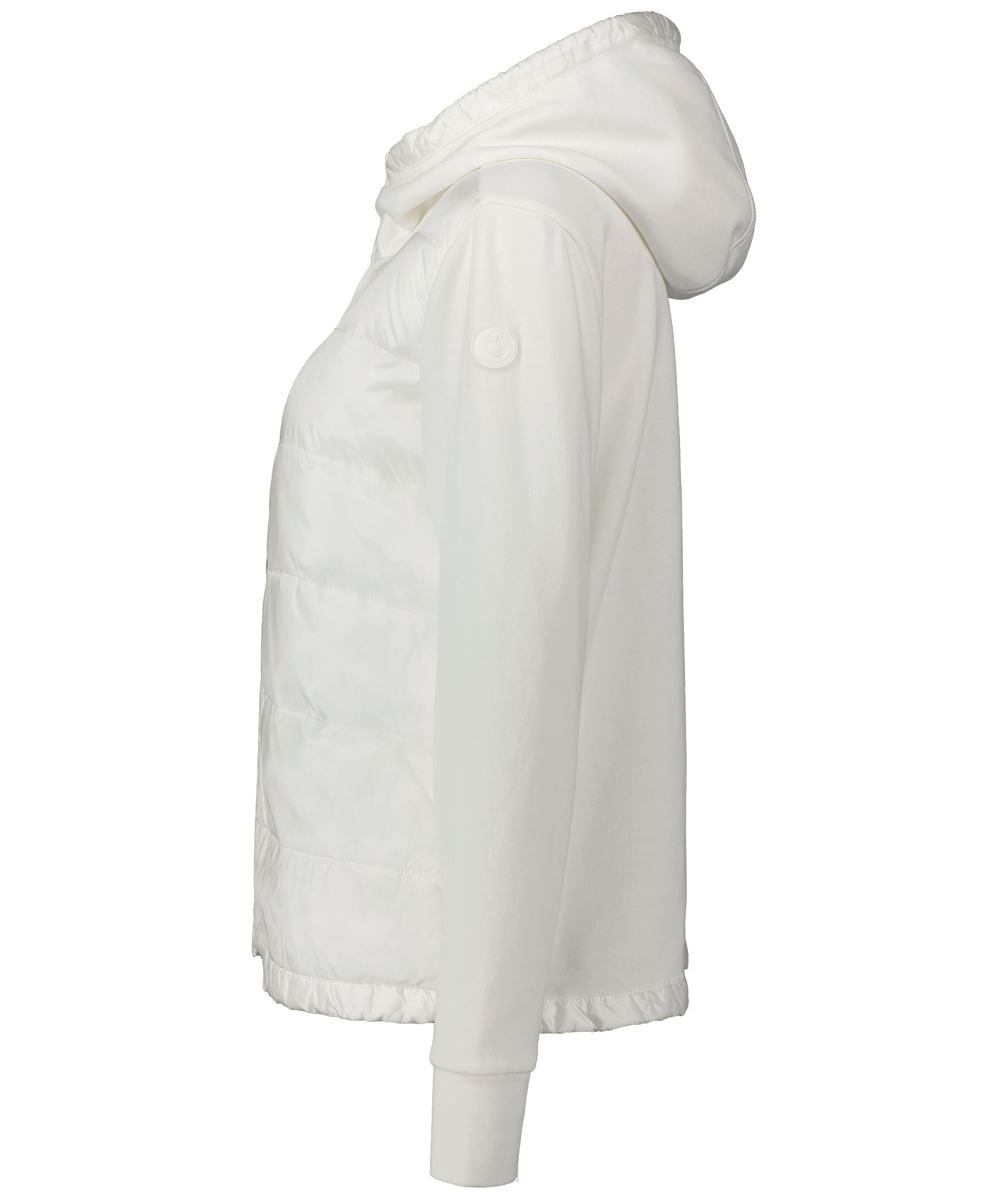 Vit hybridjacka från Save the Duck. Tillverkad i polyesterblandning och har en fyllning på framsidan i polyester. Vadderade paneler fram, hög krage, luva med orange dragsko och gummerad rund logotyp på vänster ärm. Två fickor med dolt blixtlås i sidorna. *Bomull och syntet *Vadderade paneler *Luva med dragsko