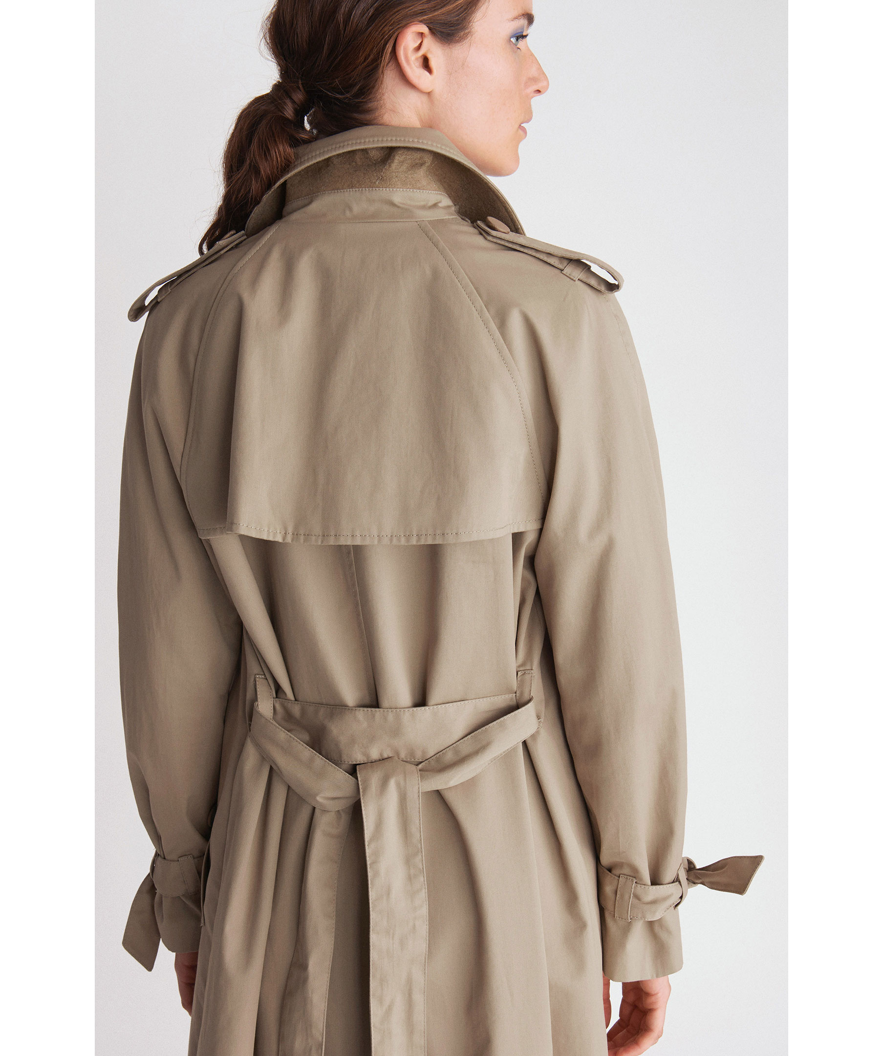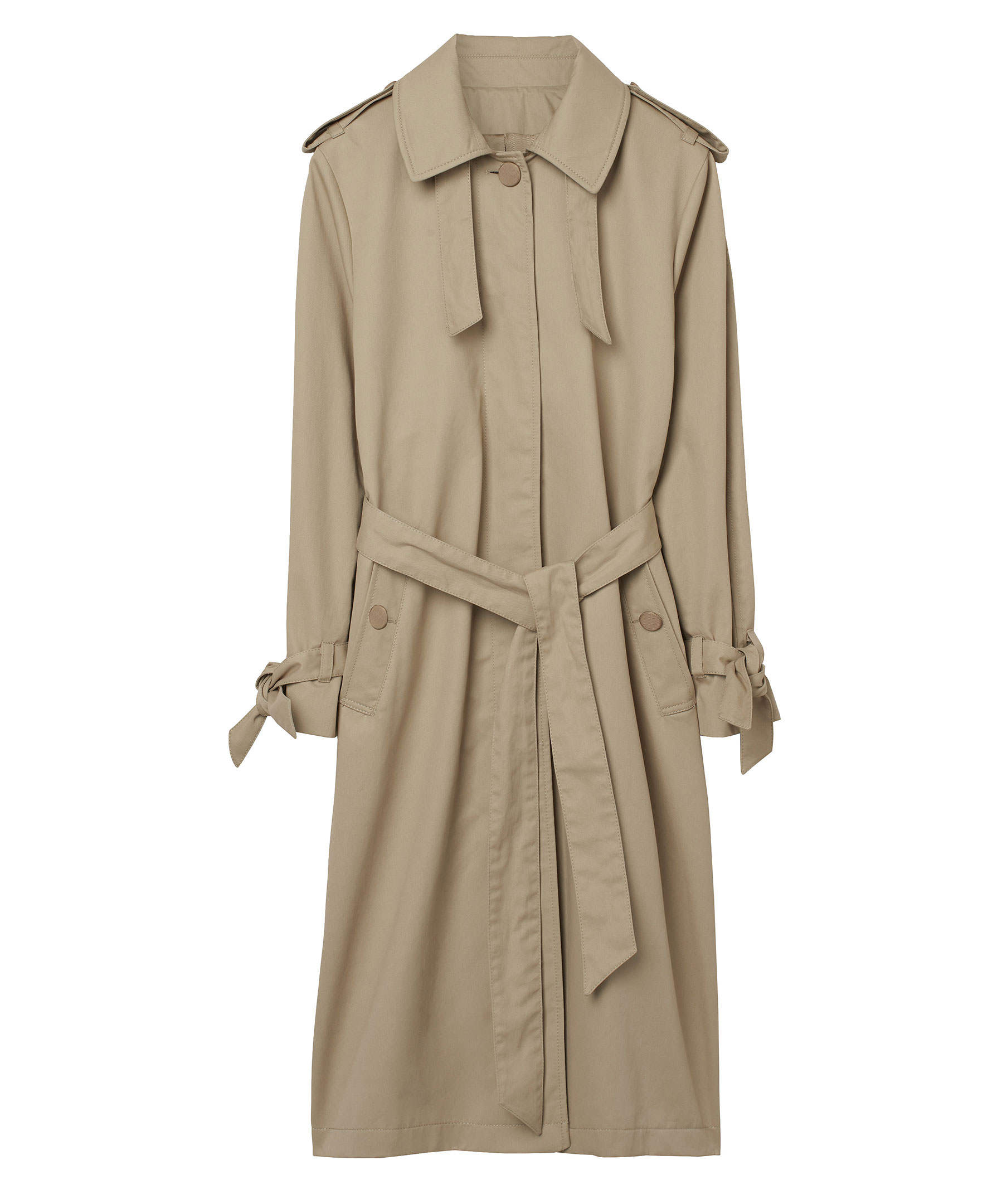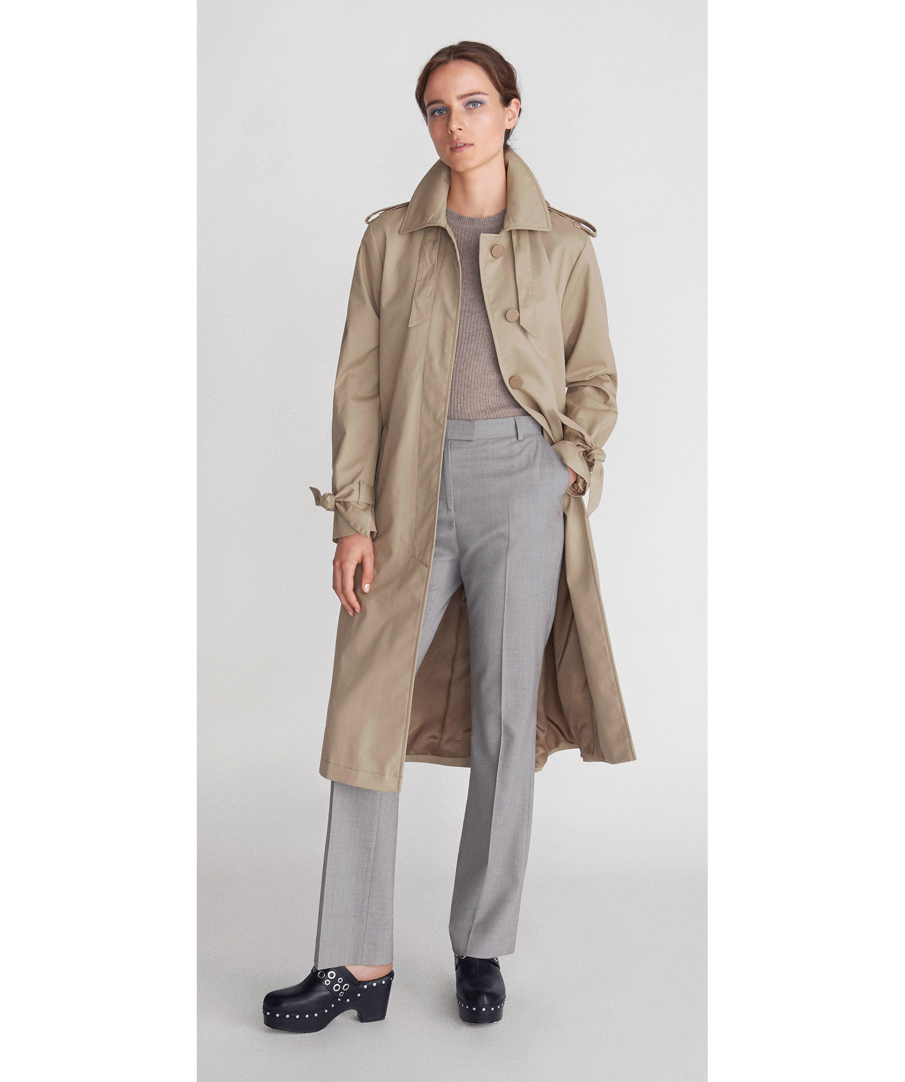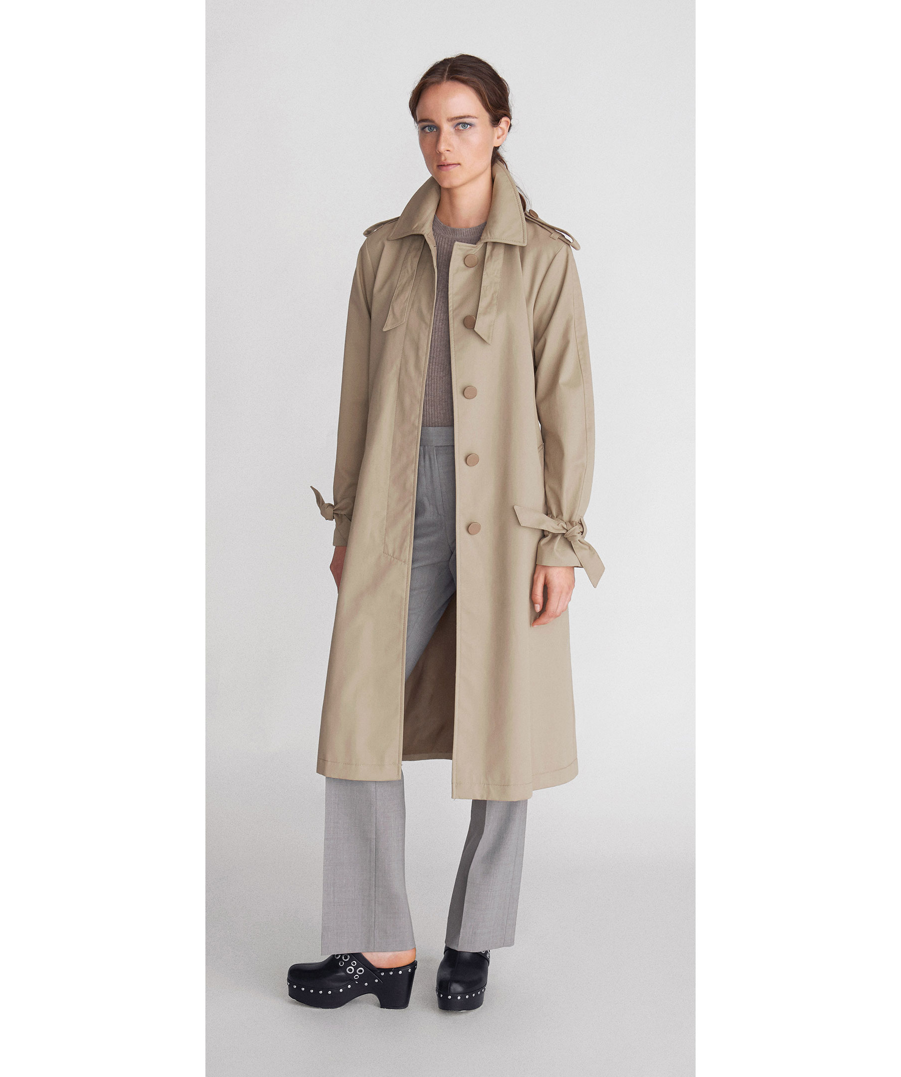 Beige trenchcoat från Tiger of Sweden. Kappan slutar strax efter knäna, två framfickor, knytband i midjan samt knytband vid ärmslut.