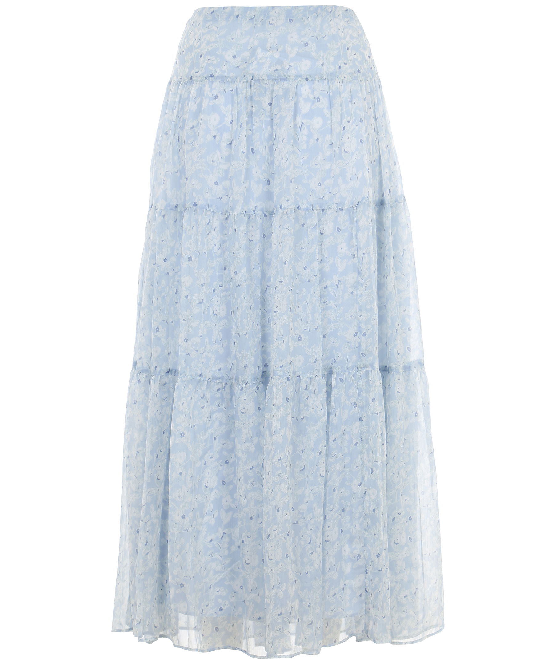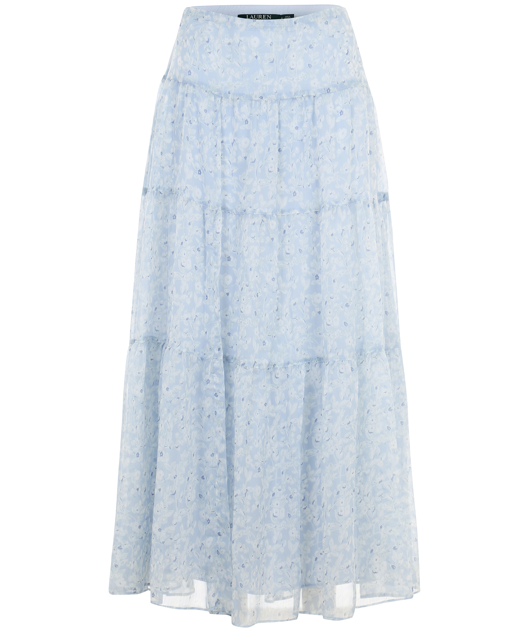 Långkjol från Lauren Ralph Lauren i ett fint ljusblått blommigt mönster. Tunt fodrad och stängs med dold dragkedja vid kjolen sida.