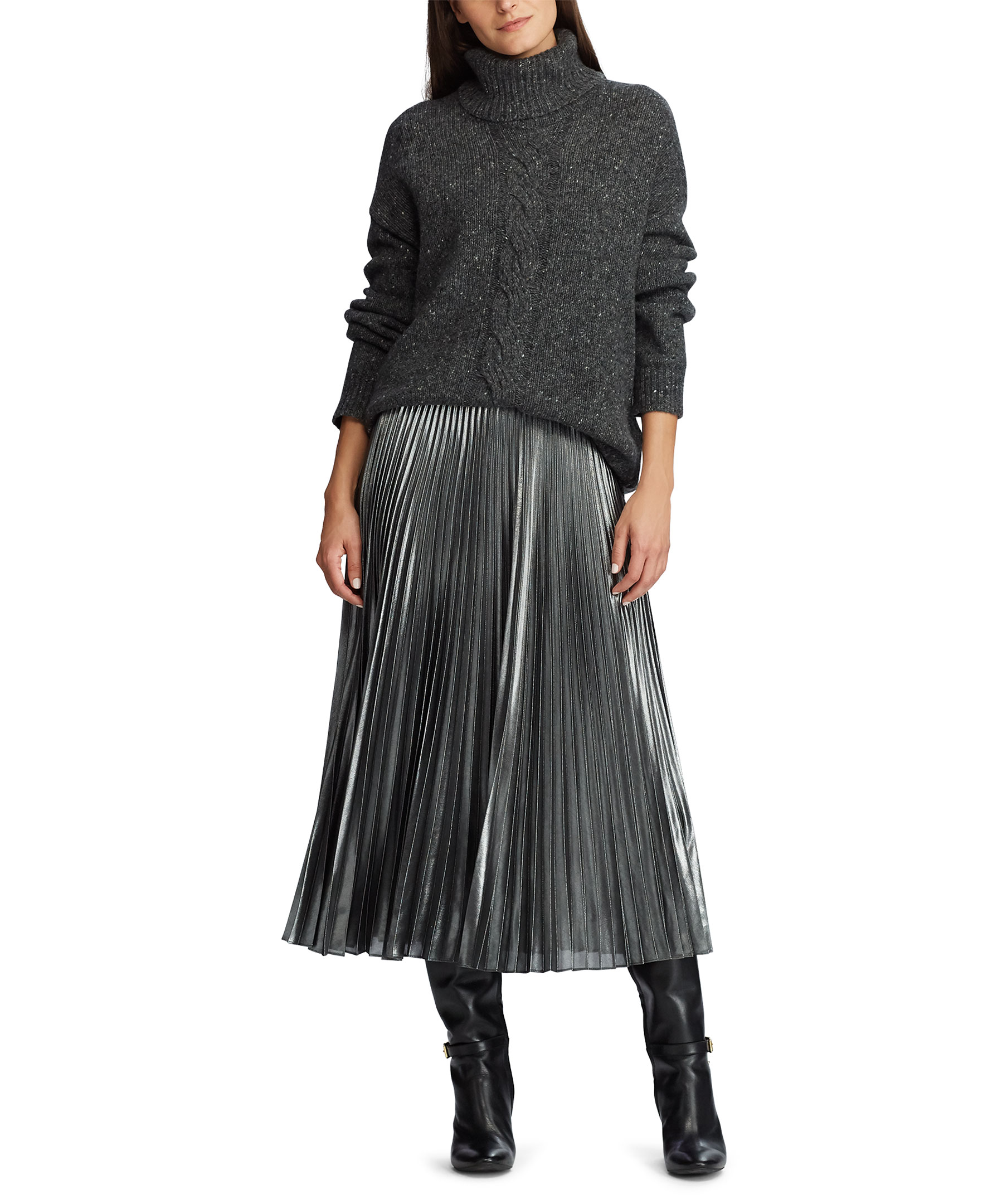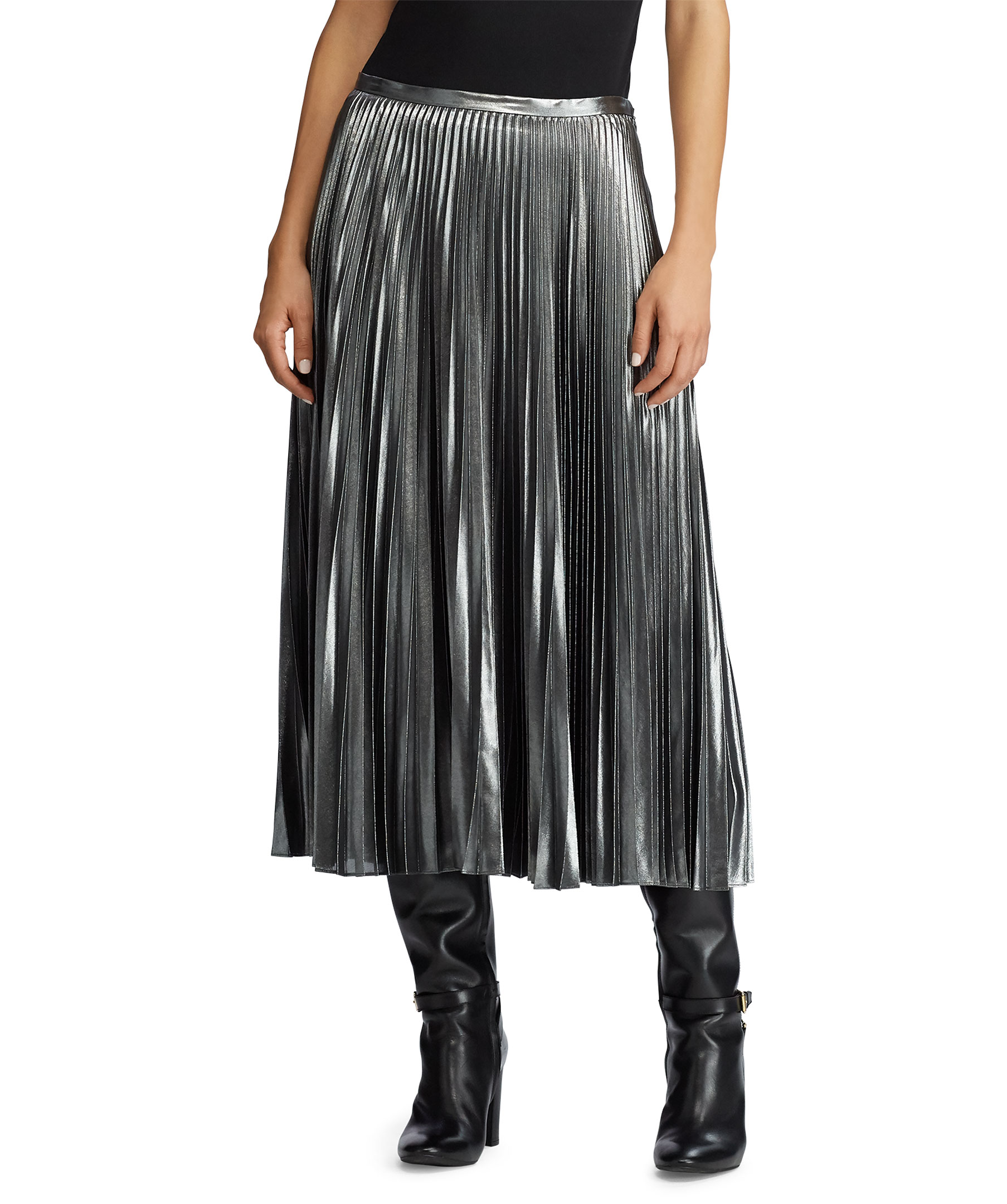 Plisserad kjol i midilängd från Lauren Ralph Lauren. Kjolen har en lyxig silvermetall finish, dragkedja i sidan och tunn underkjol.