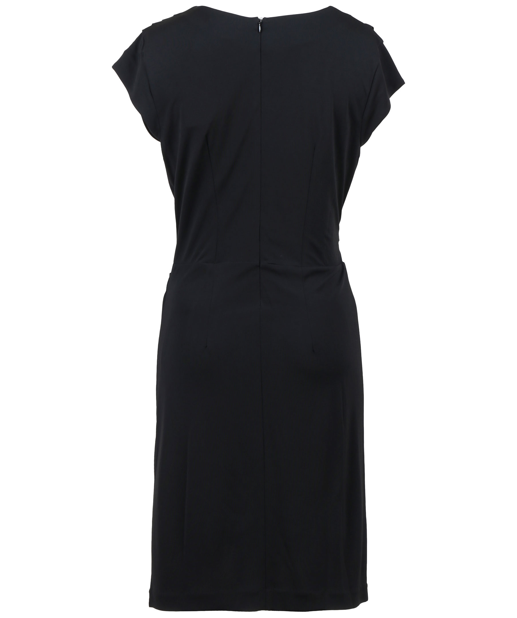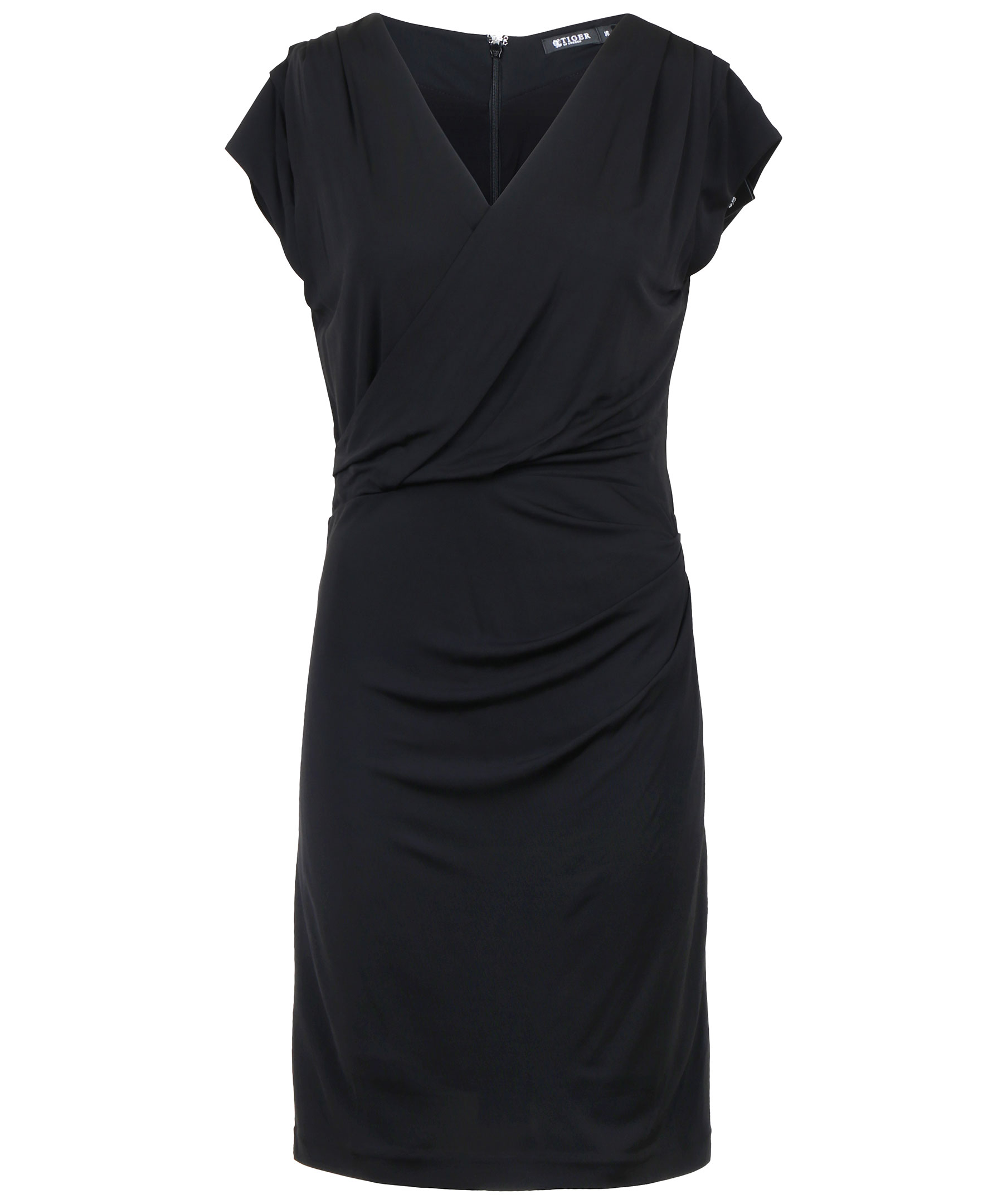 Svart klänning från Tiger of Sweden med vacker drapering framtill. Korta ärmar, dold dragkedja i ryggen samt v-ringning.