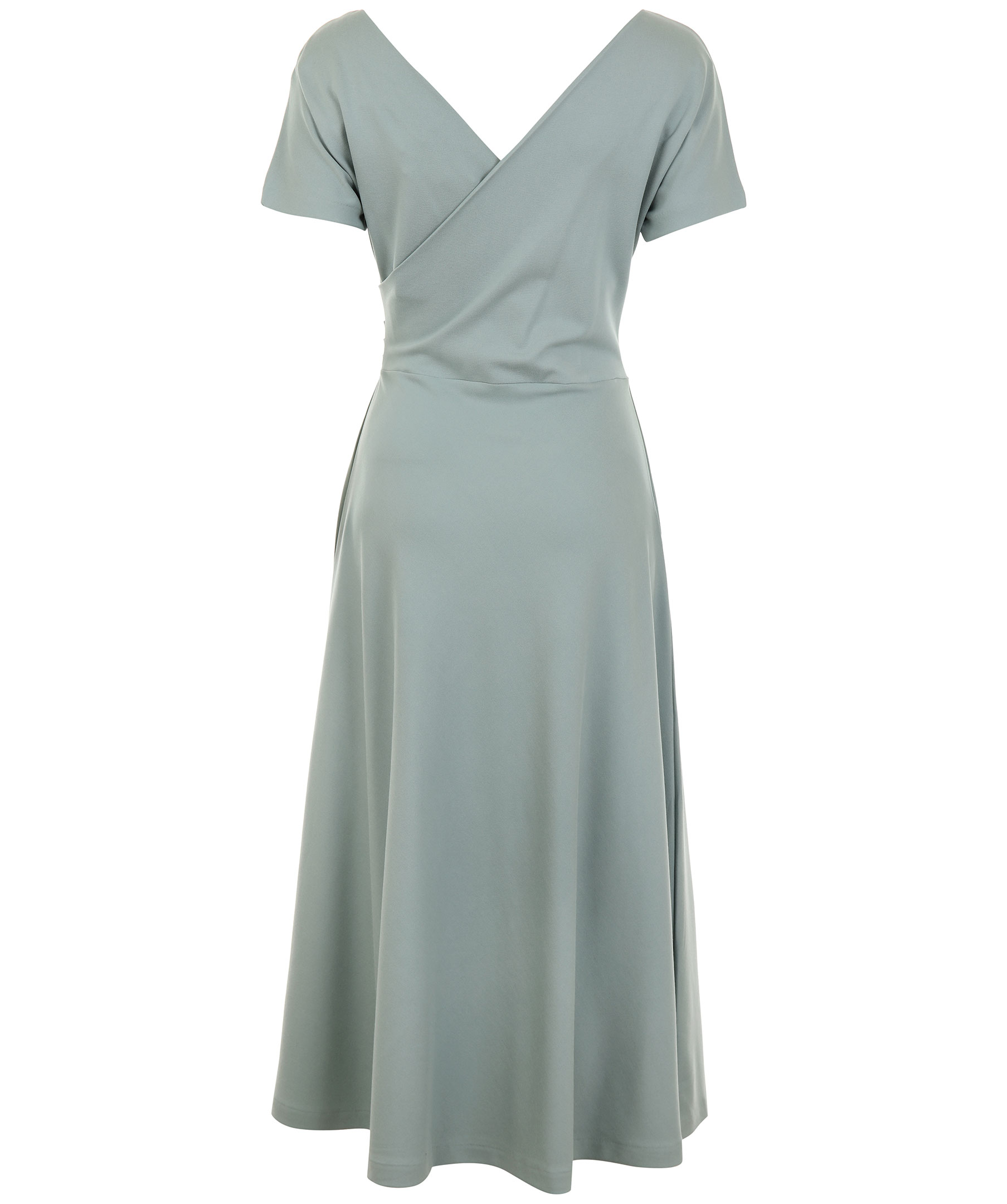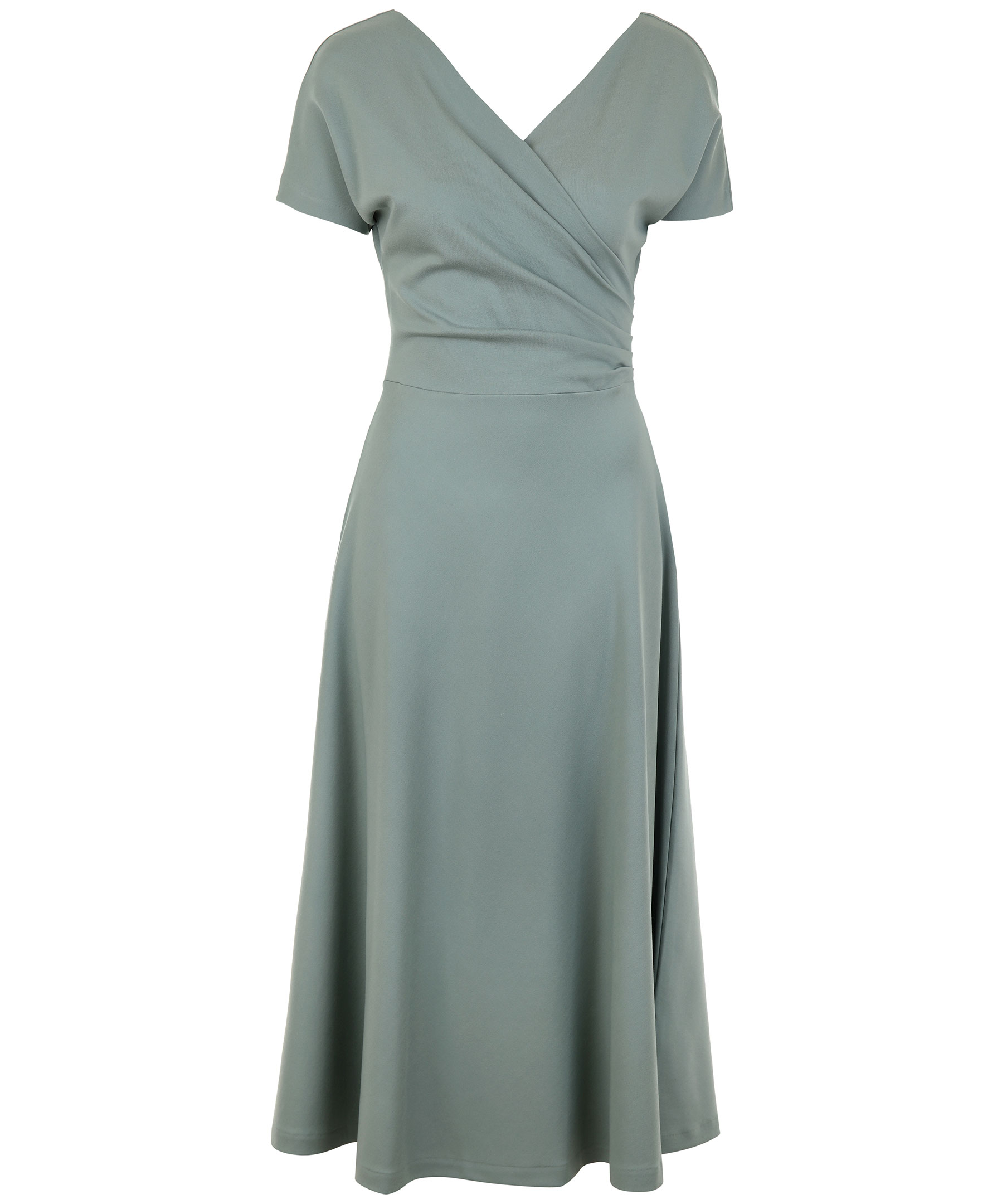 Ljusgrön slip on klänning i en något figursydd passform från Residus. Tillverkad i residus EcoVero-viskos som har ett lägre koldioxidutsläpp och vattenanvändning jämfört med en generisk viskos. Klänningen har en elegant draperad hals och knytdetalj vid midjan. Tightare i midjan och har en a-lingeform neråt och slutar vid anklarna.