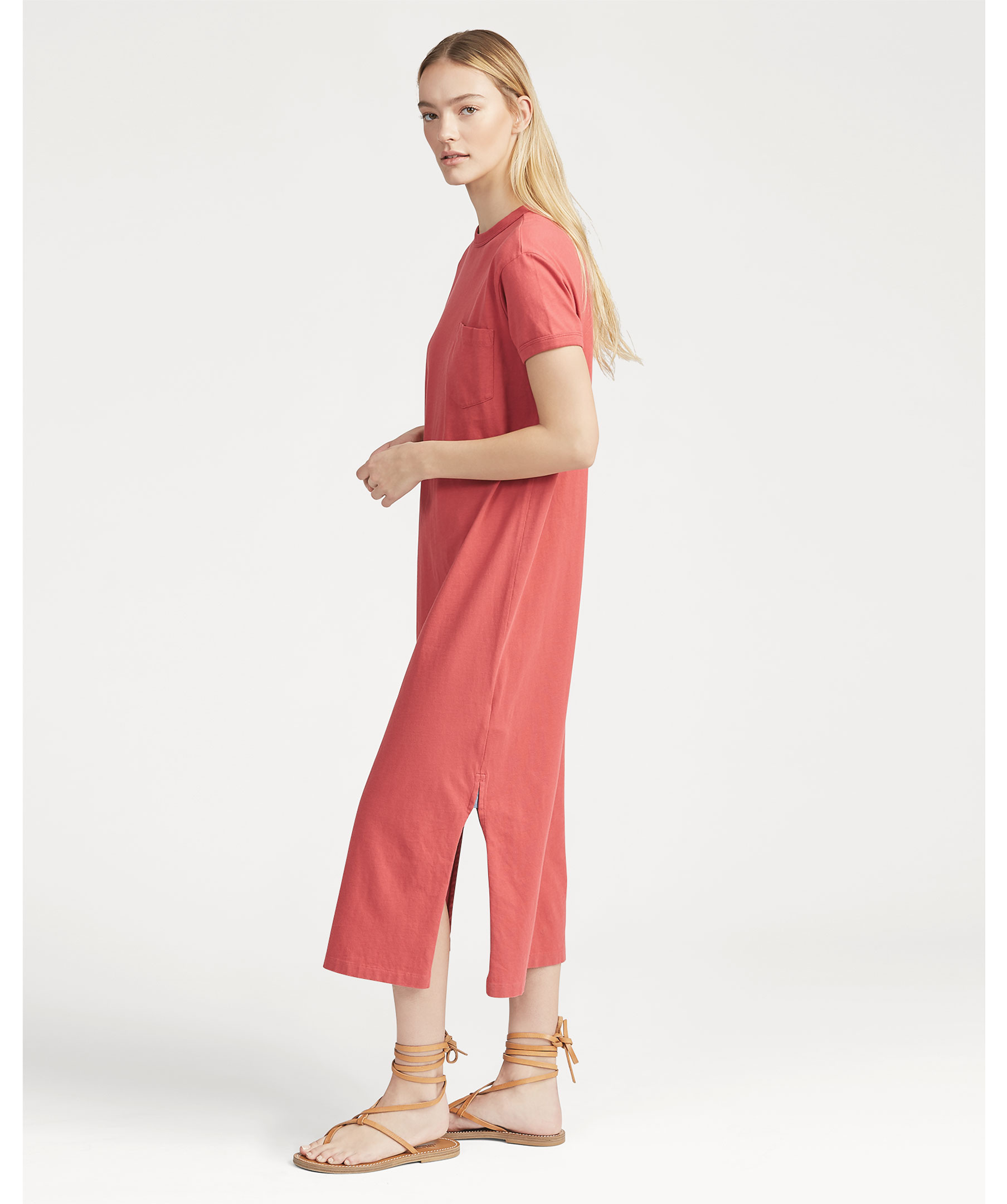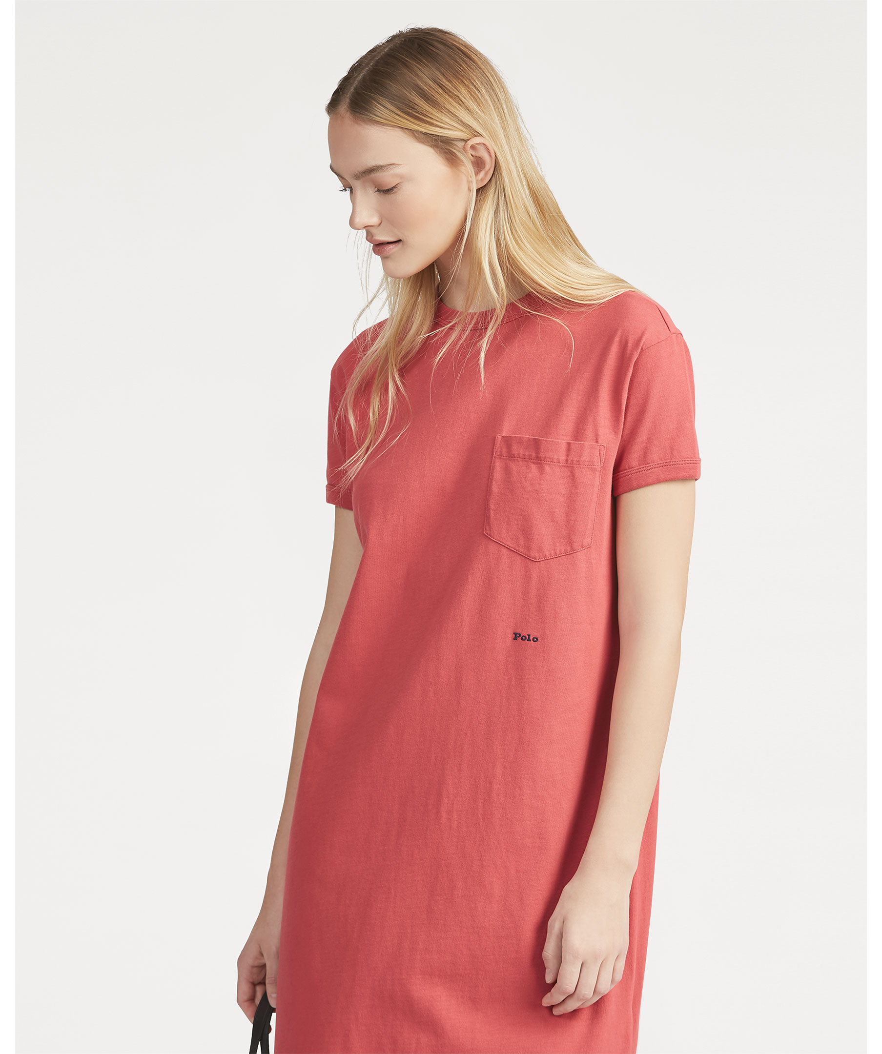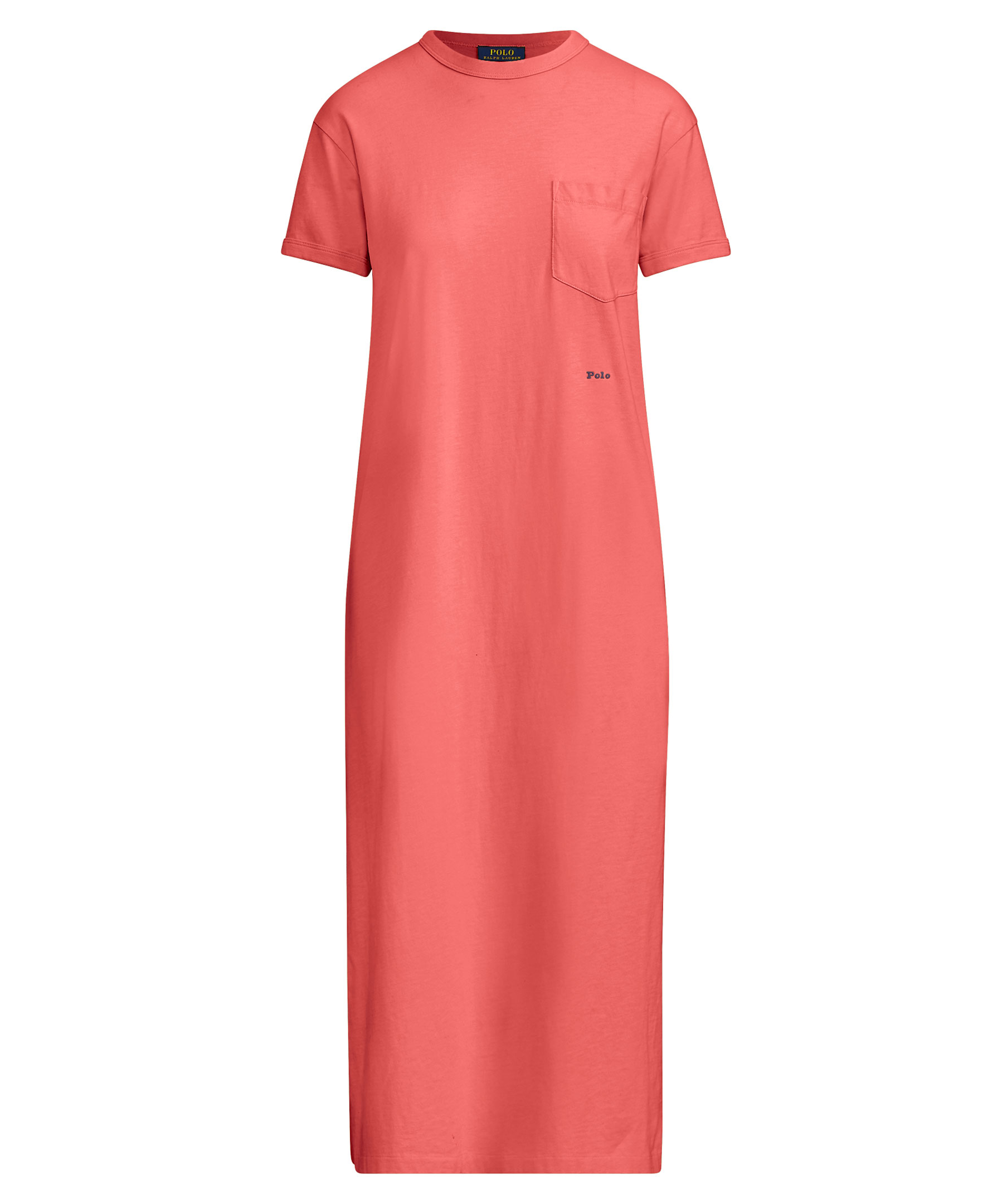 Lång klänning i t-shirt modell från Polo Ralph Lauren. Fin röd färg, bröstficka, rundad hals.