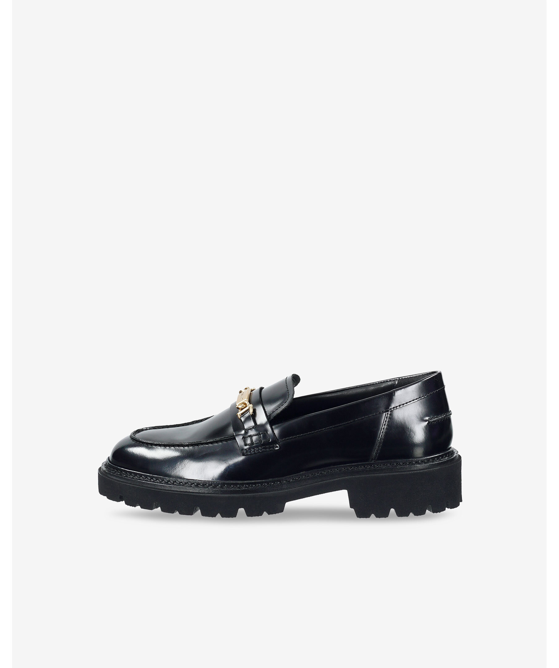 GANT Ivyhill loafers i svart läder med EVA-yttersula, fårskinnsfoder och metallspänne.