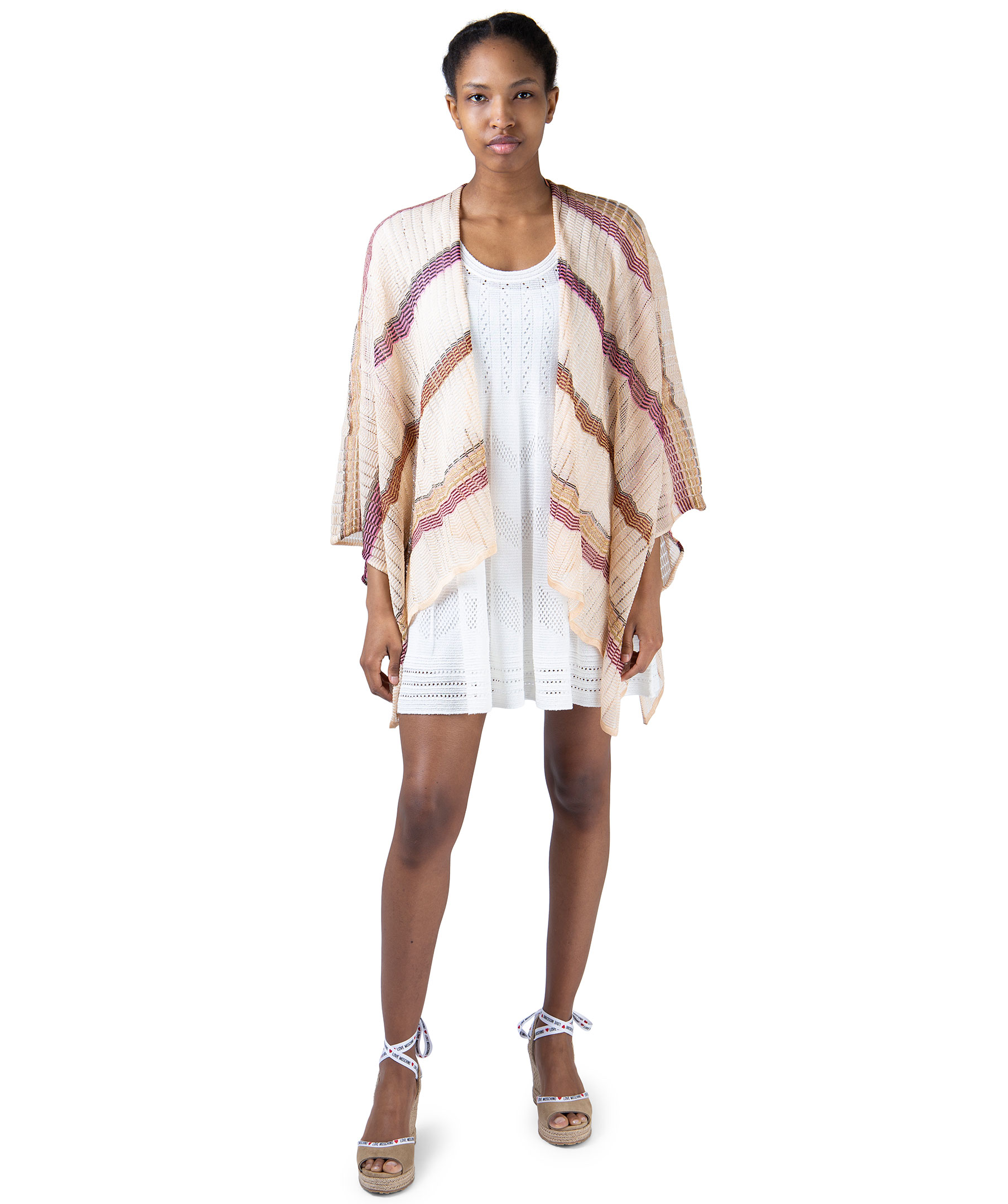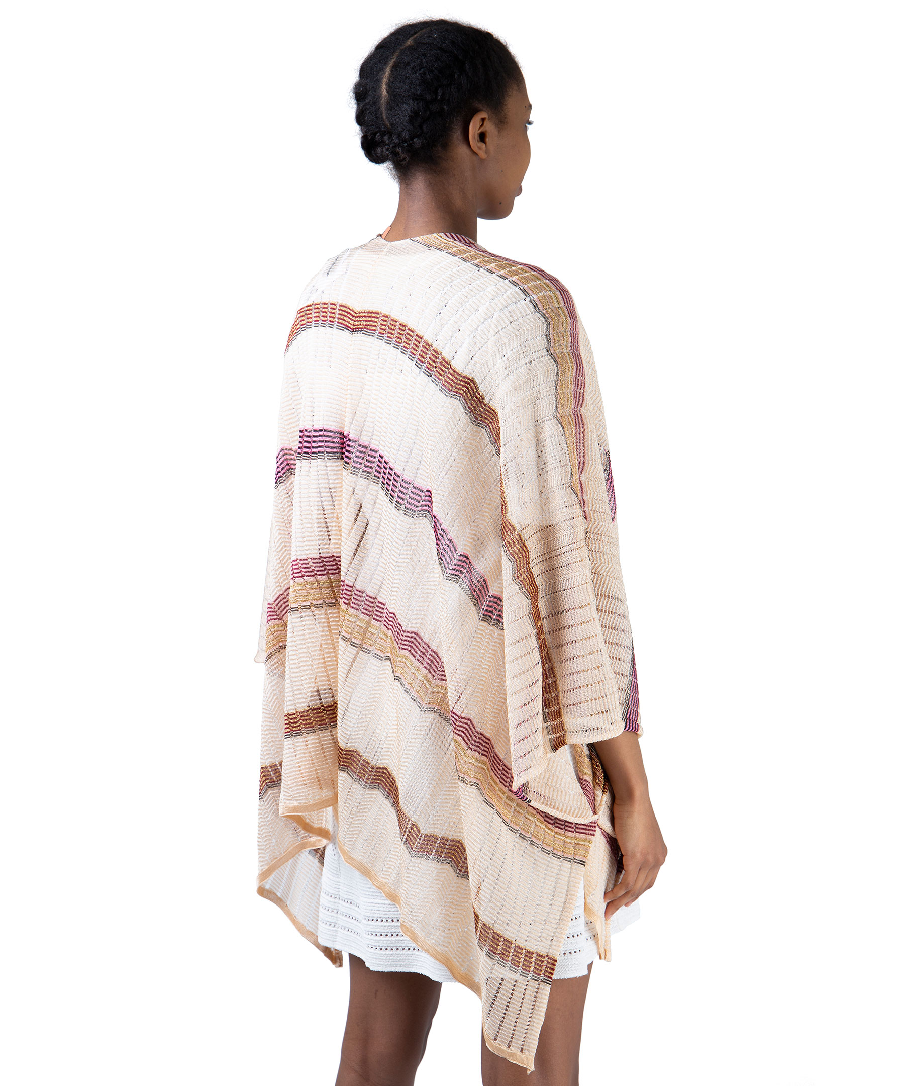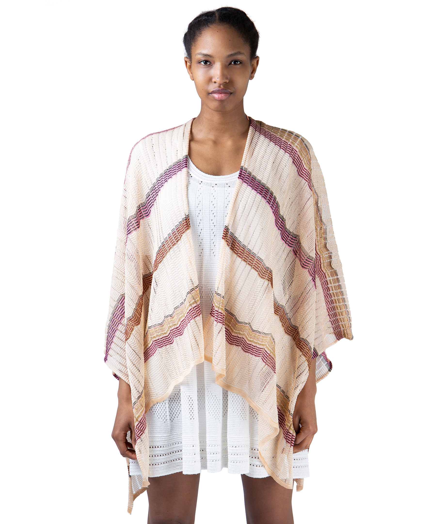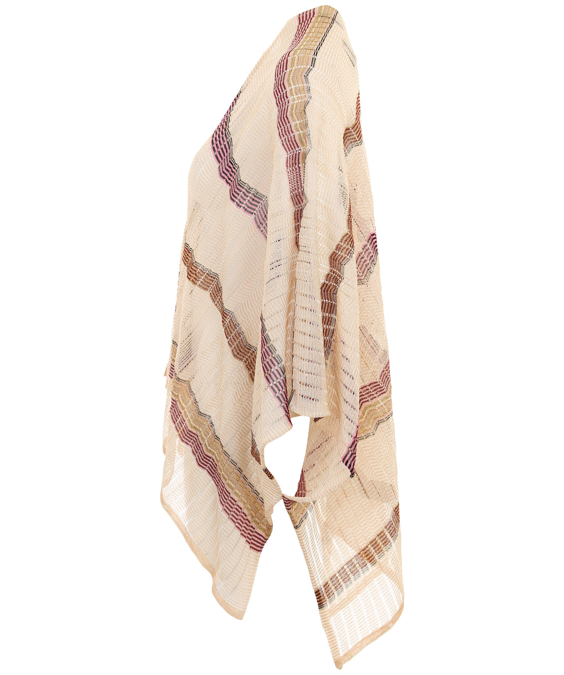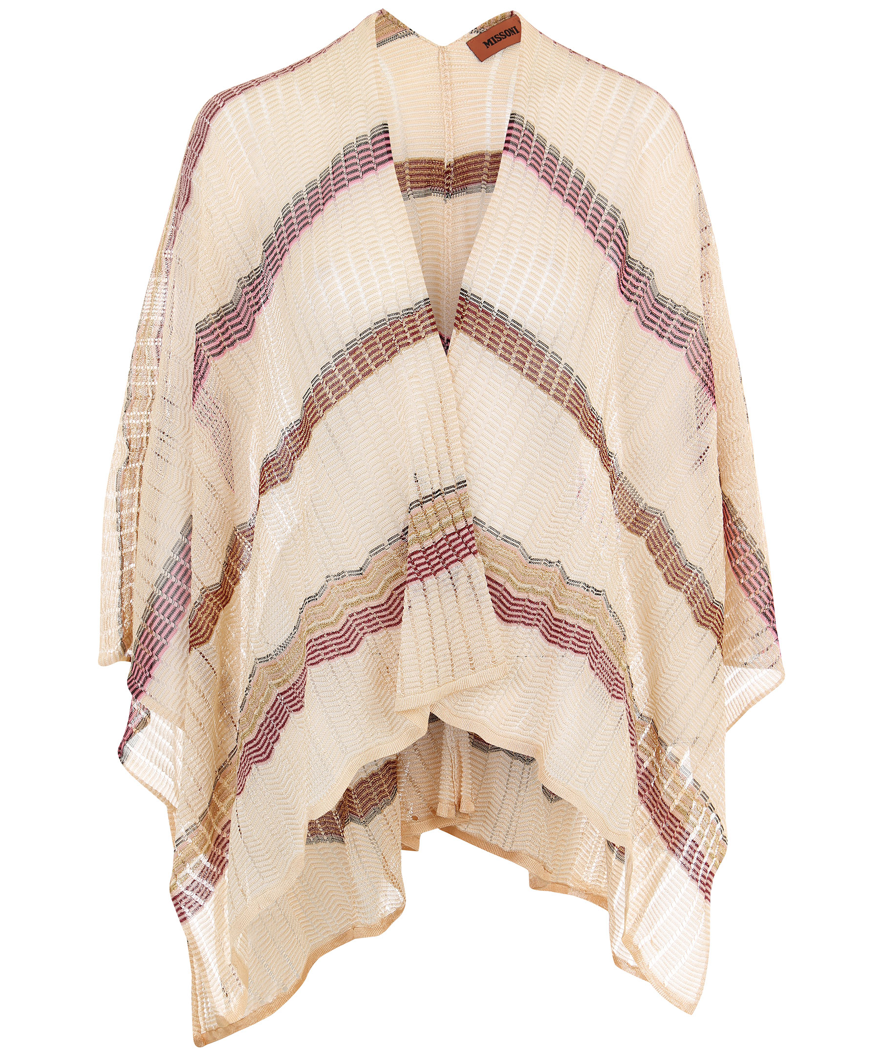 Virkad poncho från Missoni i ett zick-zack mönster med guldfärgade trådar.