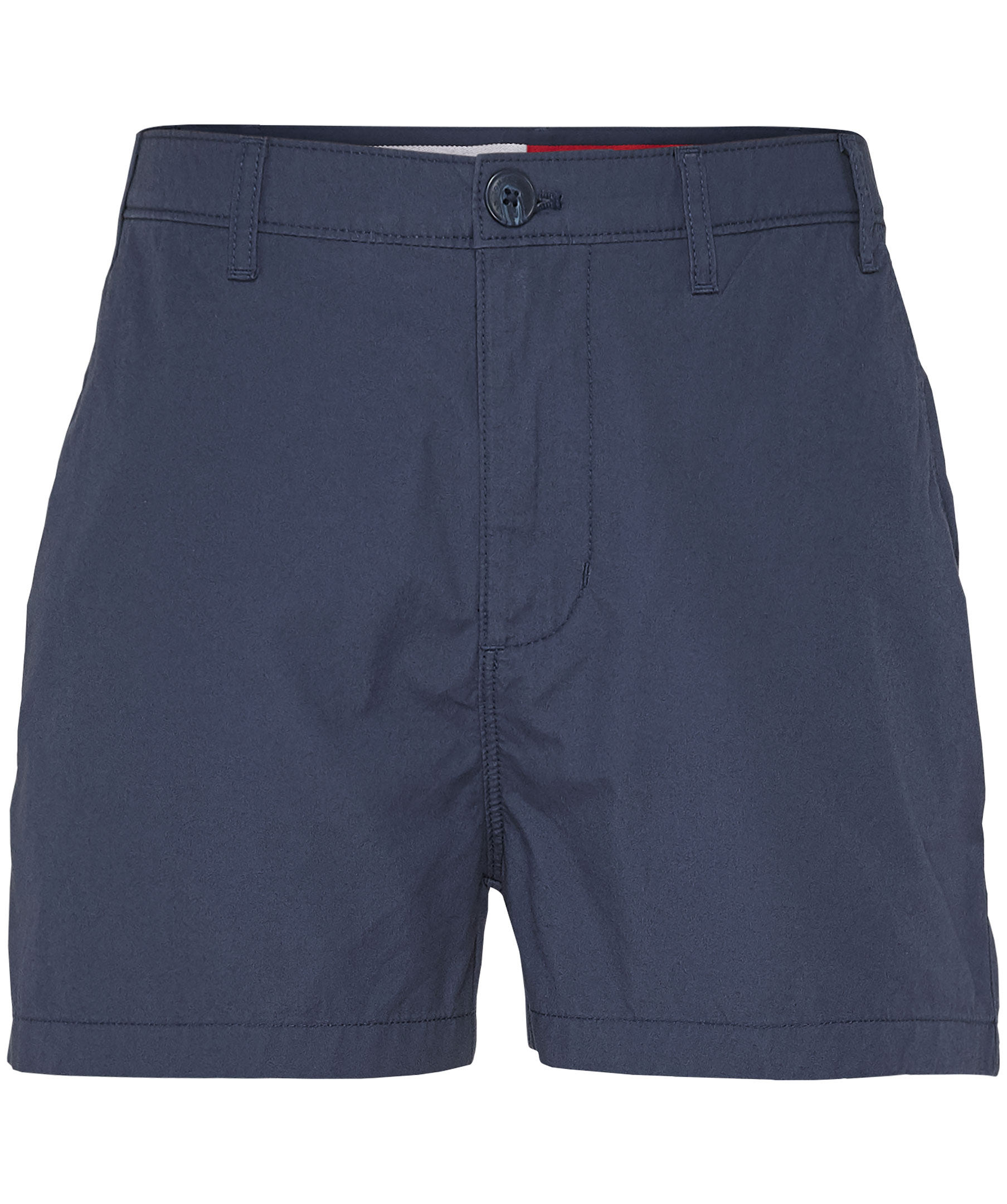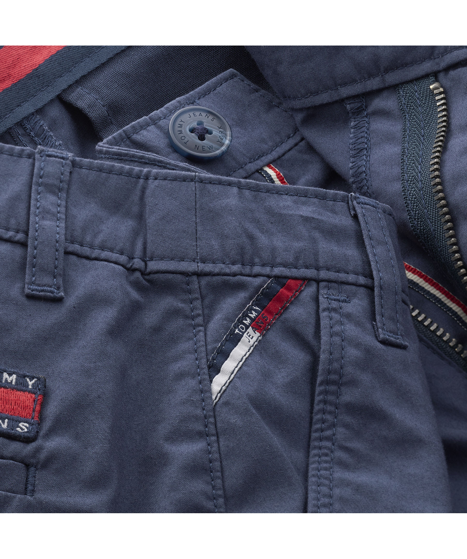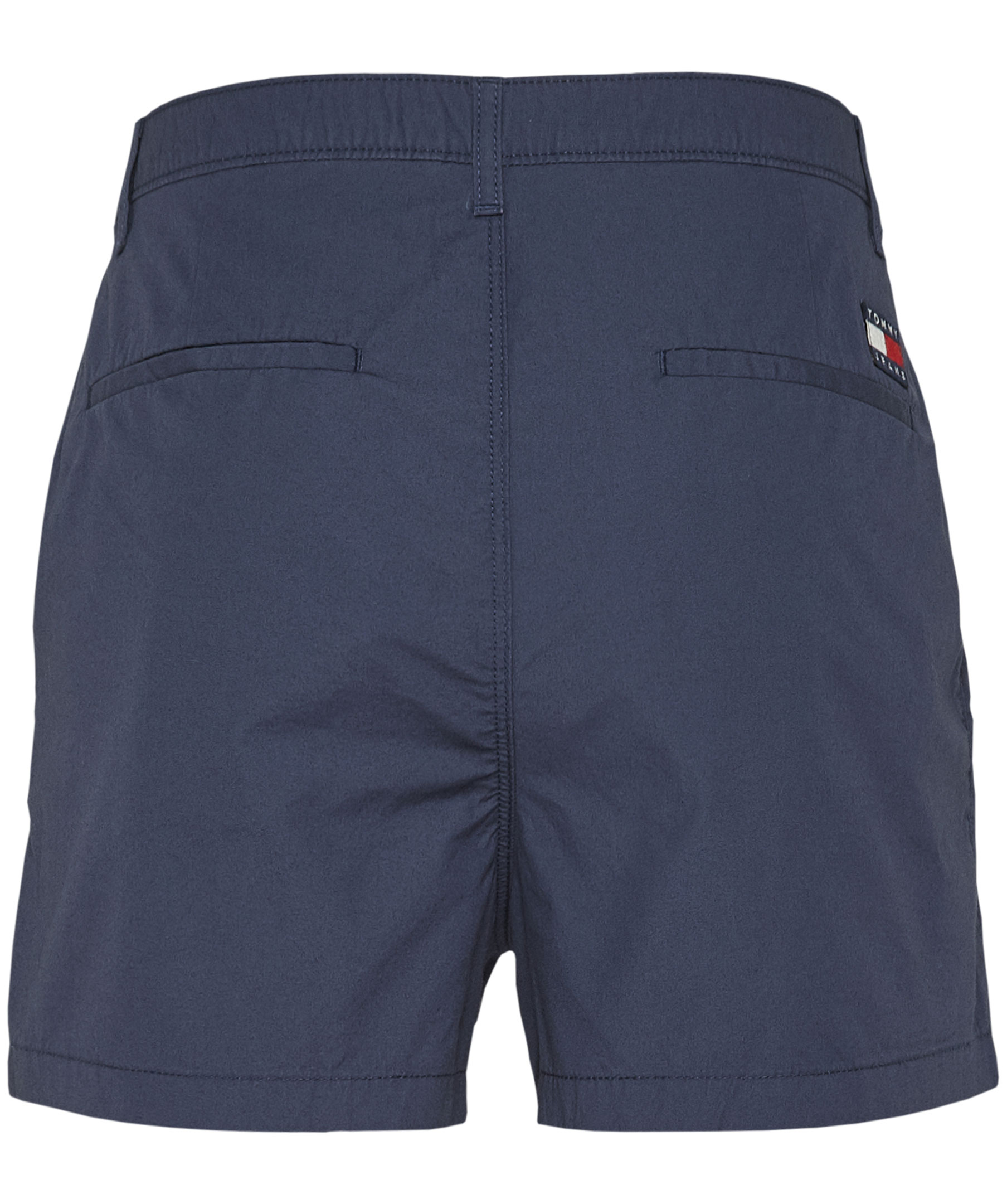 Marinblå chino shorts i normal passform från Tommy Jeans. Tillverkade i 100% bomull. Två framfickor och två bakfickor och tommy-flagga baktill.