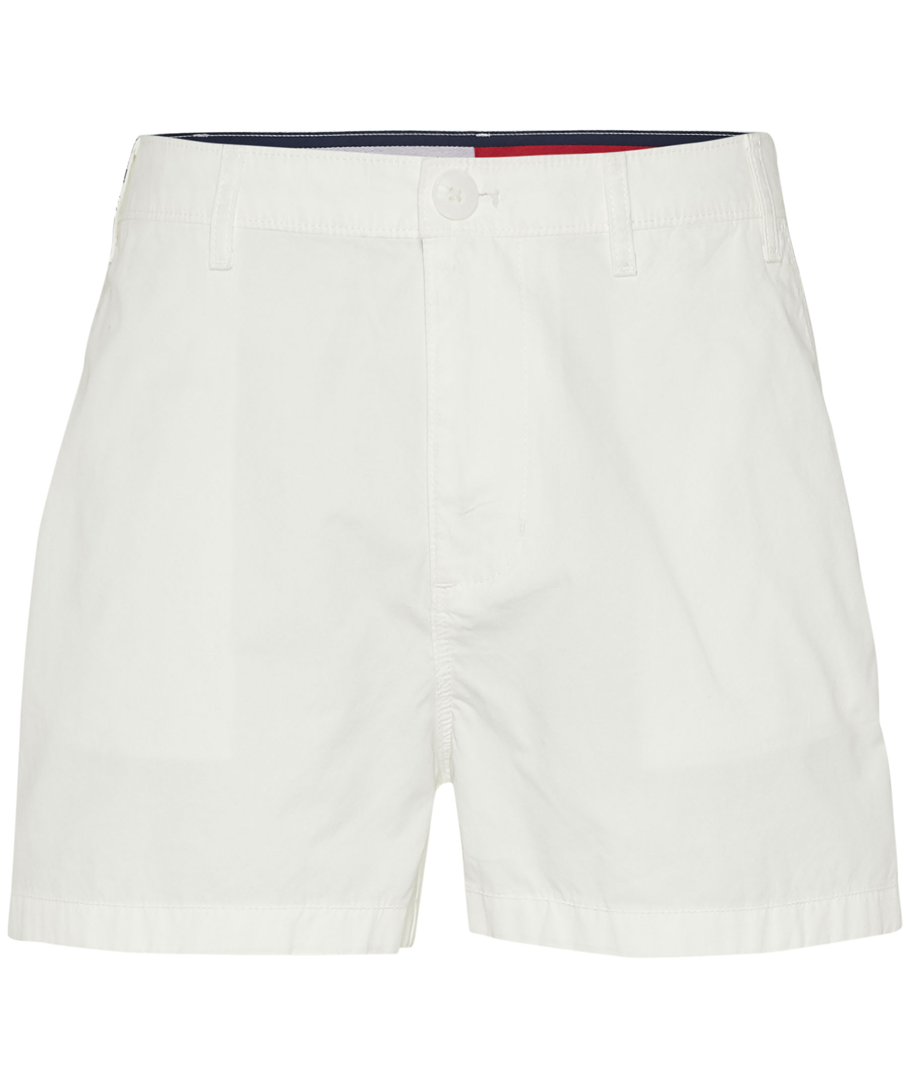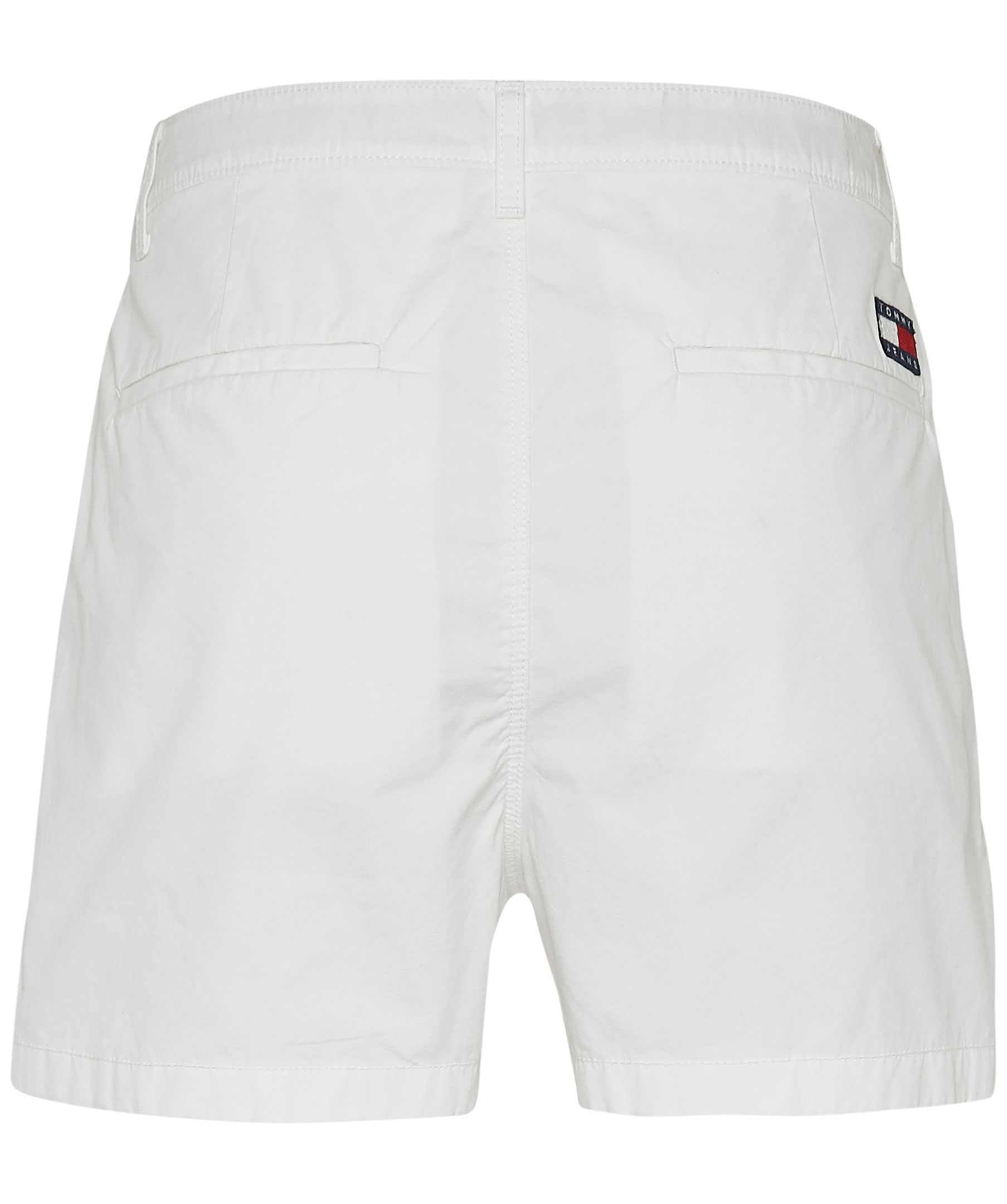 Vit chino shorts i normal passform från Tommy Jeans. Tillverkade i 100% bomull. Två framfickor och två bakfickor och tommy-flagga baktill.