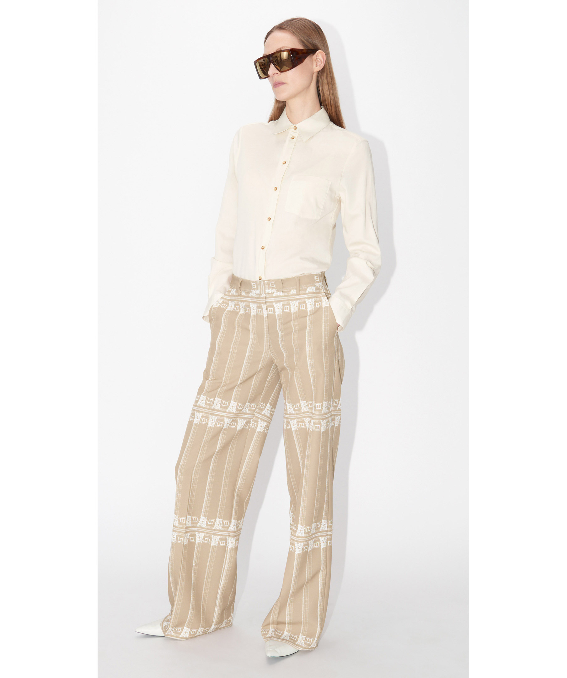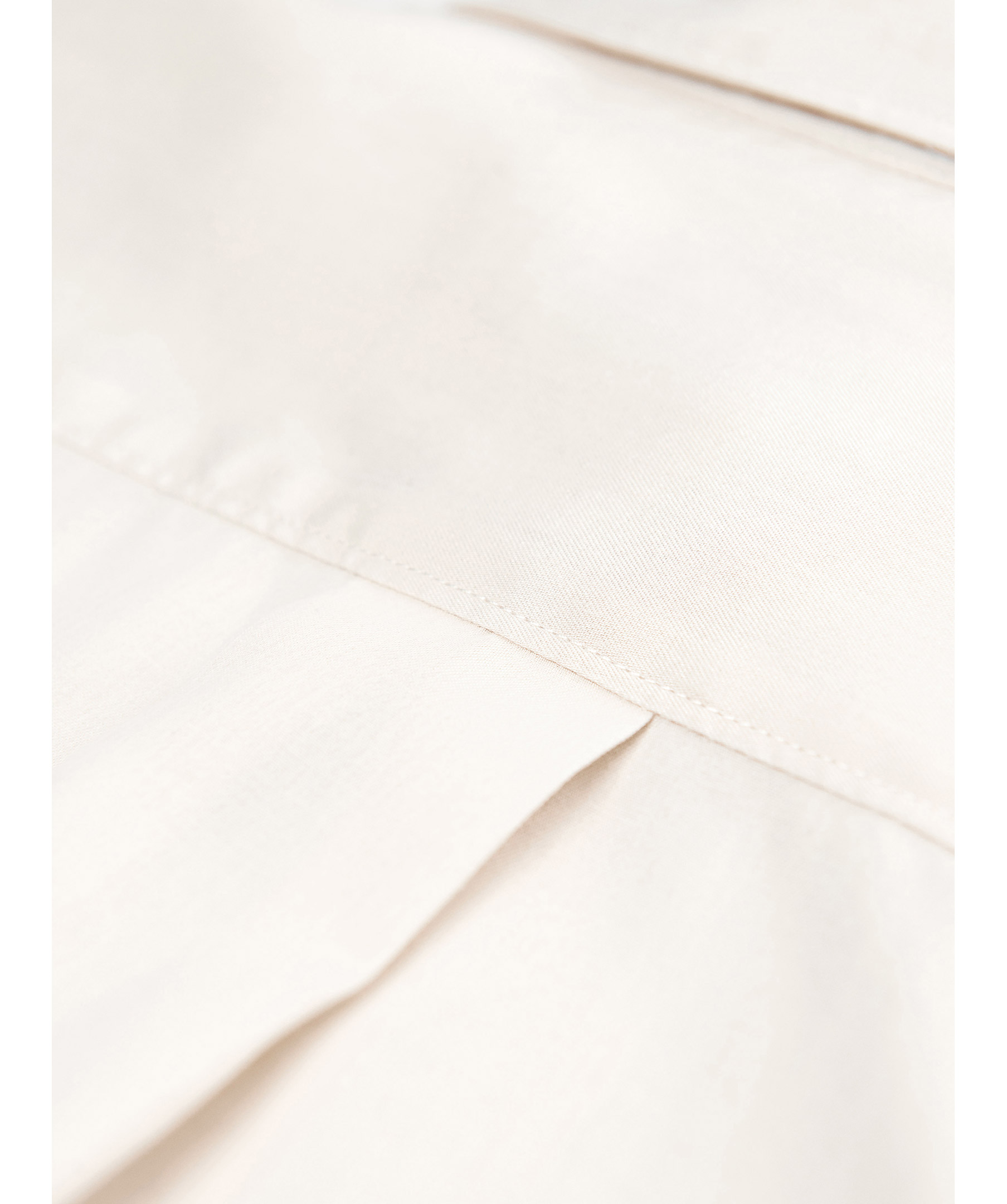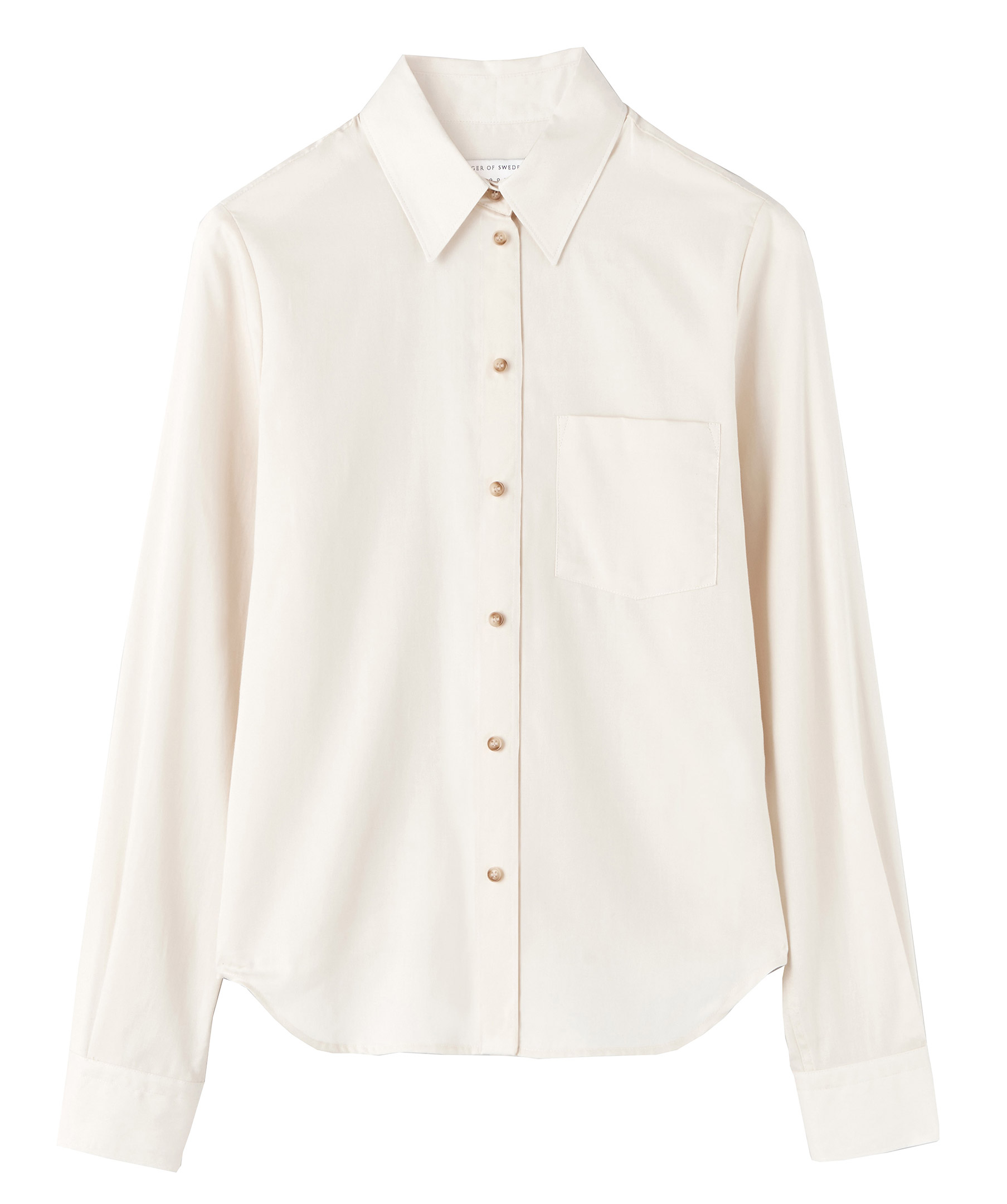 Beige skjorta från Tiger of Sweden i normal passform. Skjortan har spetsig krage, naturfärgade knappar och slutar vid höften. Skjortan är något längre bak.