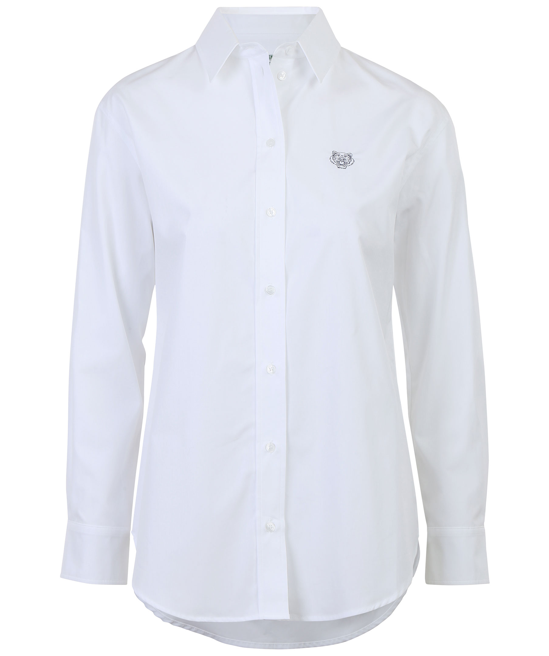 Vit skjorta i 100% bomull från Kenzo. Fin krage och stängs med vita knappar. Broderad tiger på vänster sida på bröstet. Knappar längst ner på ärmarna. Rak modell.