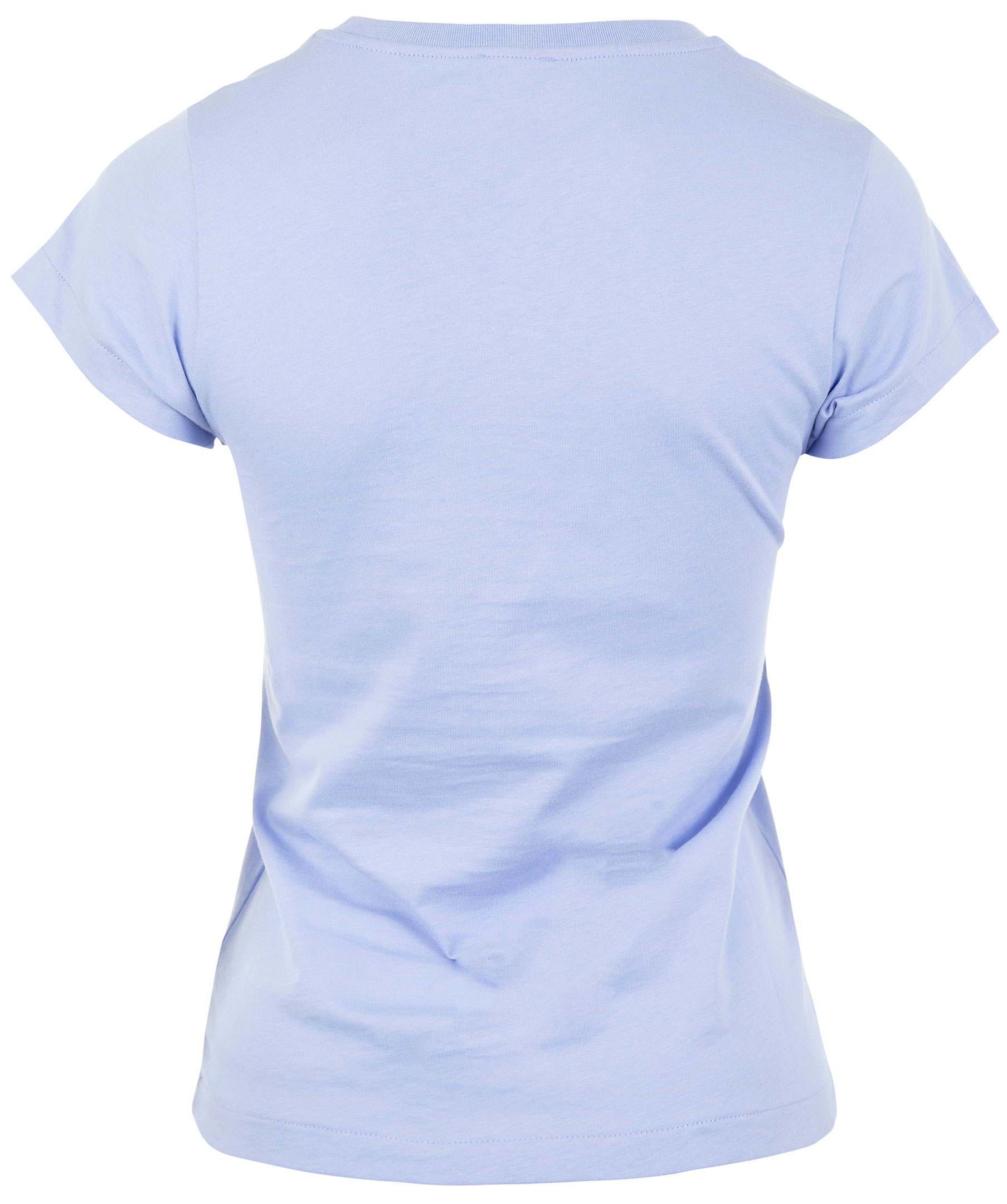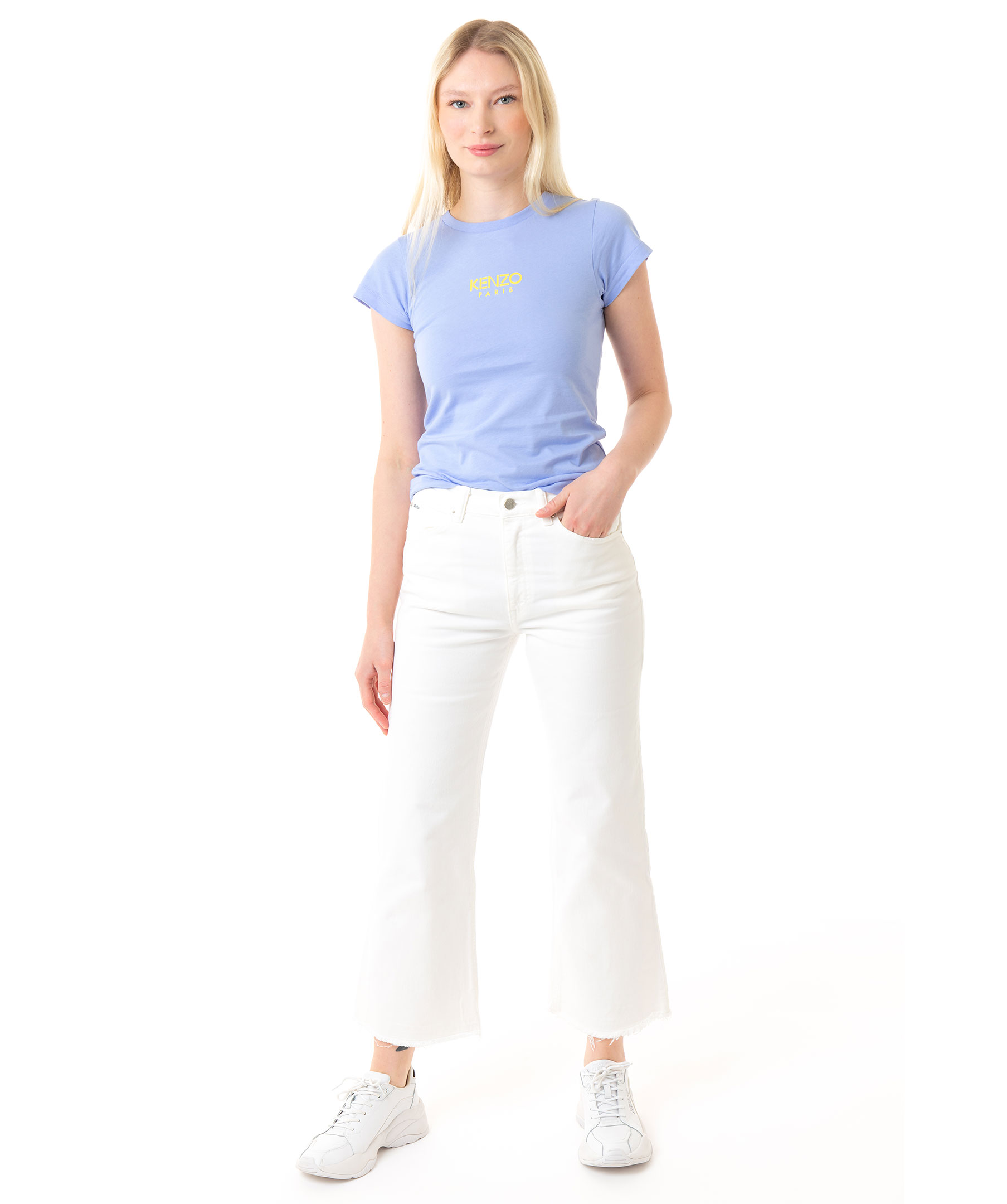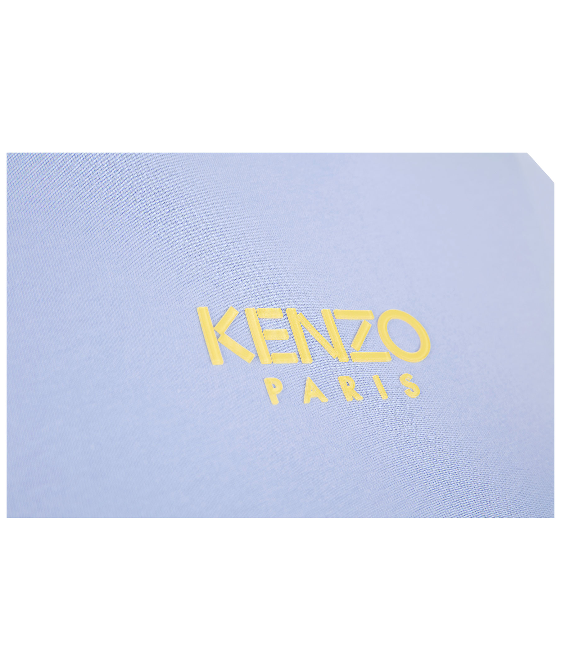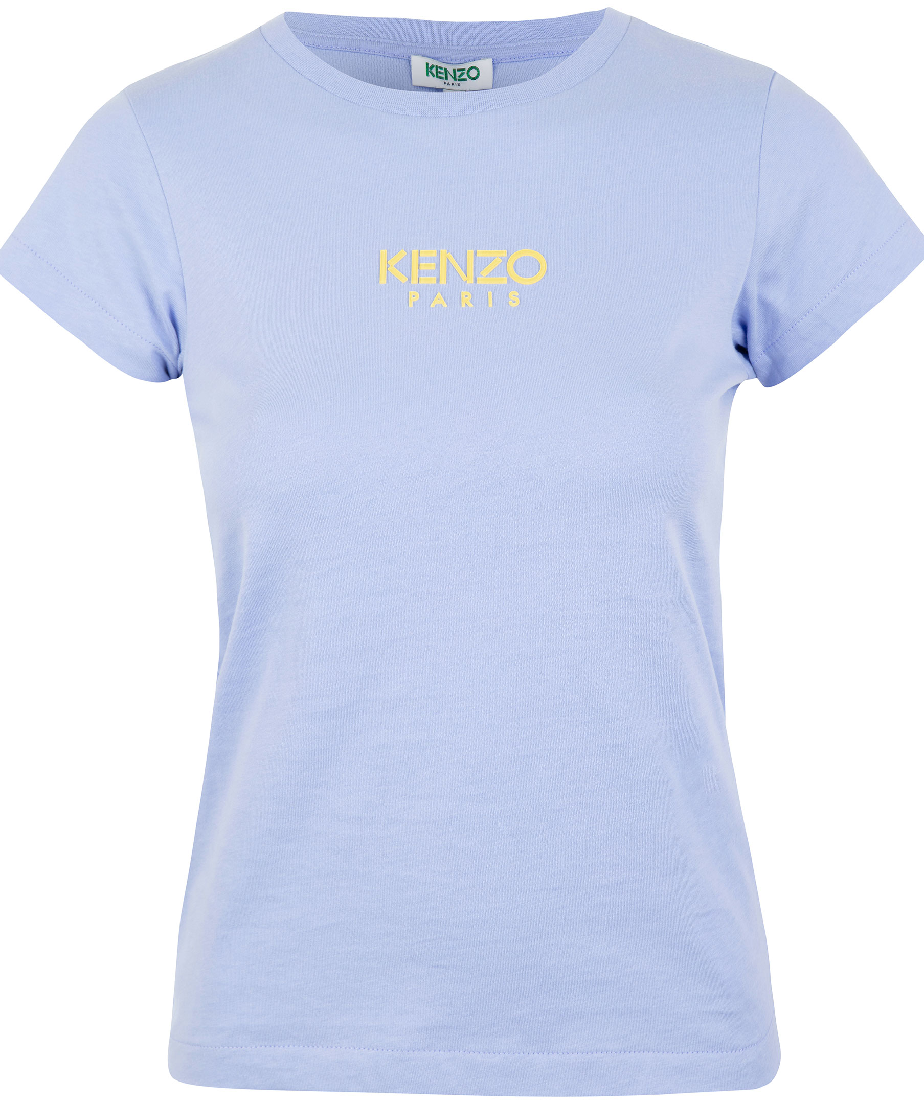 Lila t-shirt från Kenzo tillverkad i 100% bomull. Liten, gul gummerad logotyp på bröset. Rundad hals. Modellen är 174 cm lång och bär storlek S.