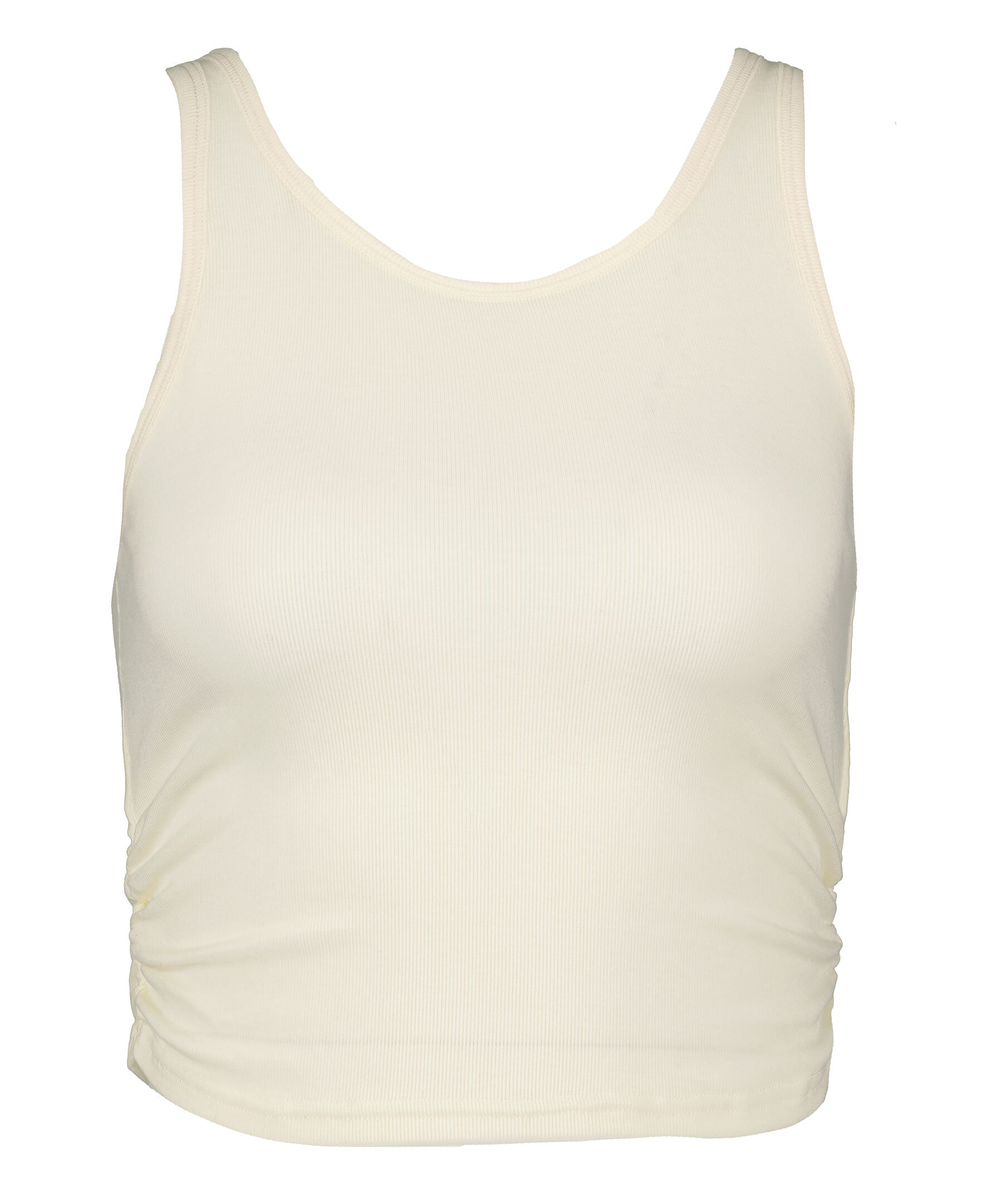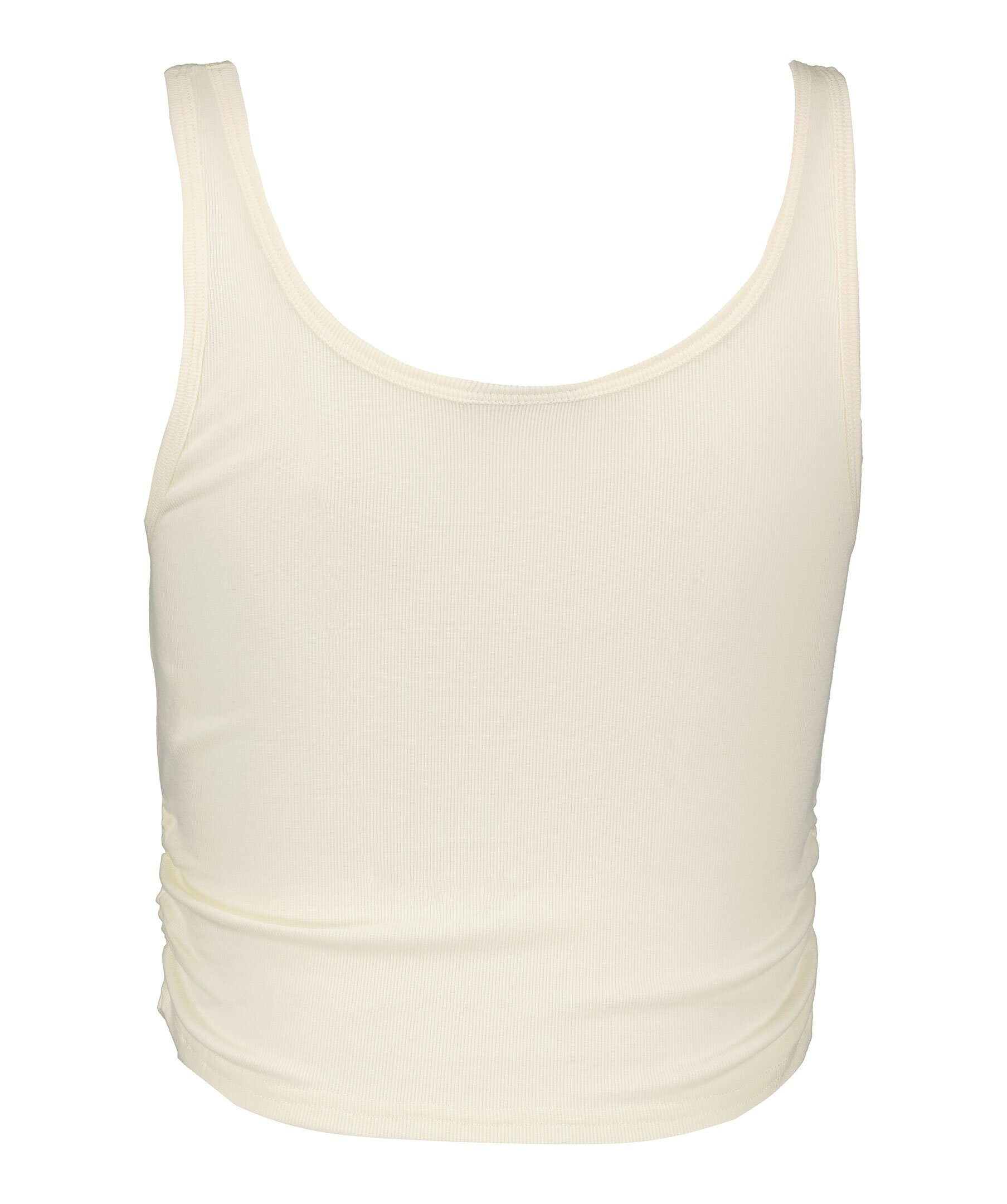 Krämvitt ribbad tank top från Varley. Resår i sidorna för en mer figurnära passform. Tillverkad i Tencel-blandning.