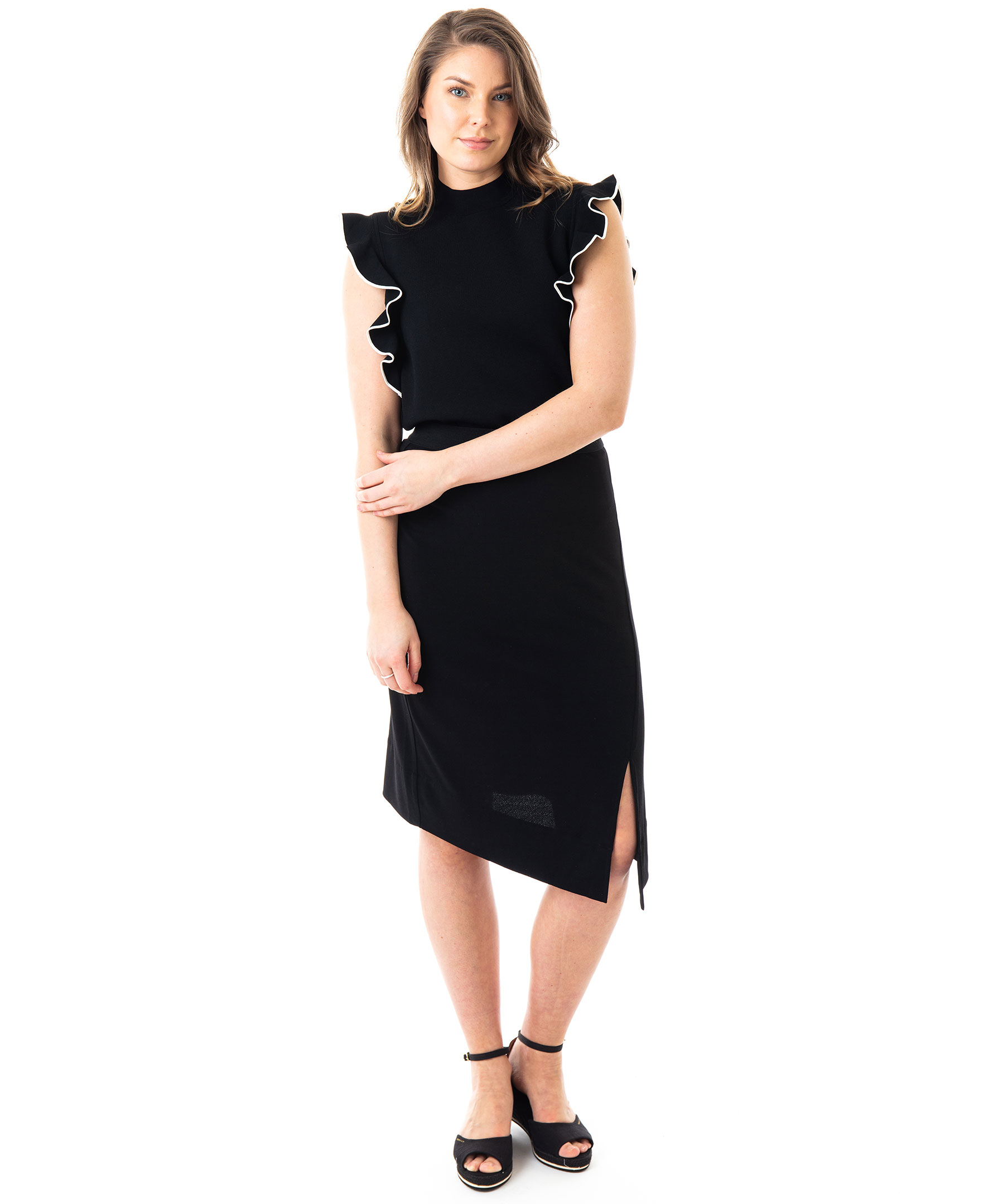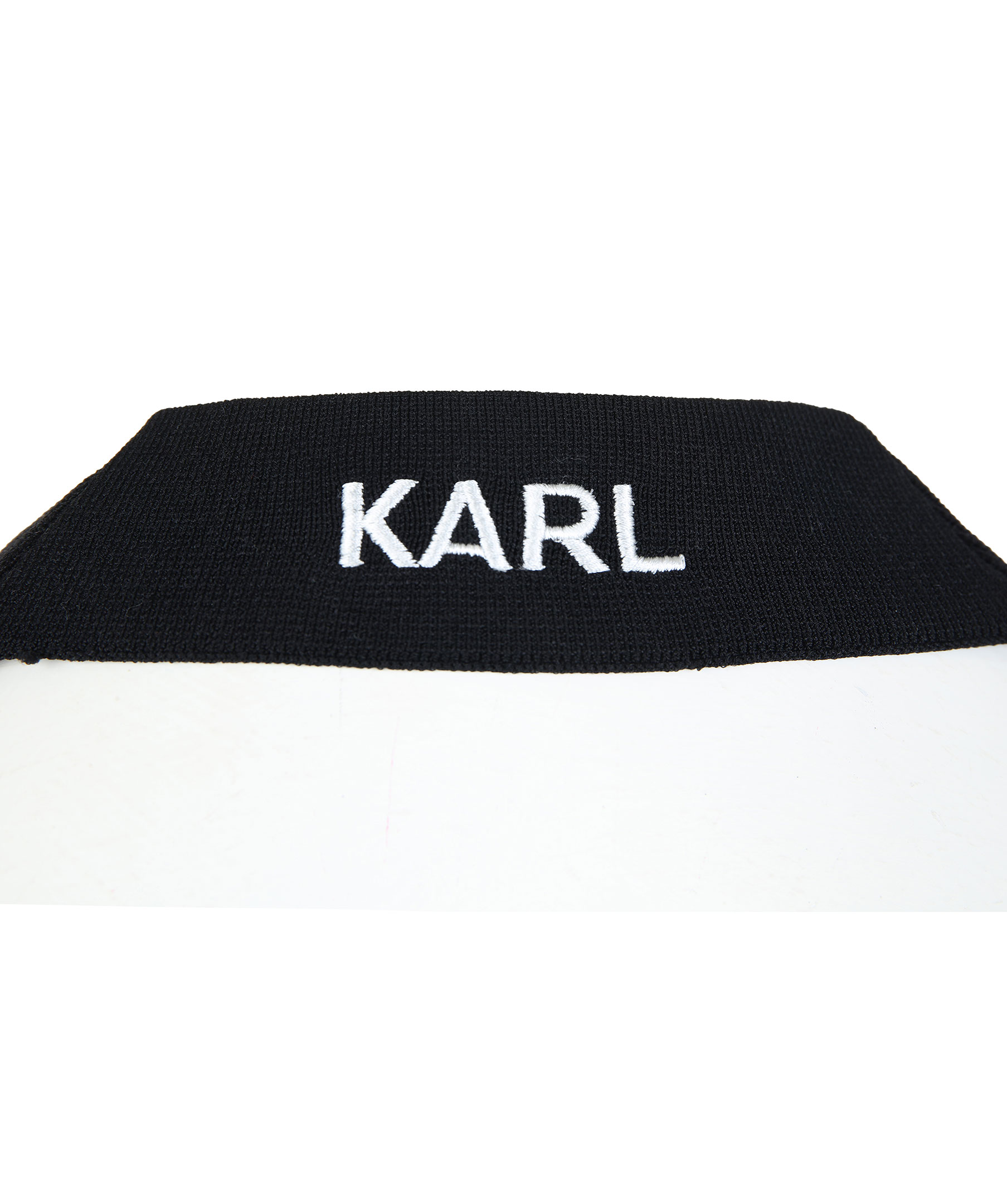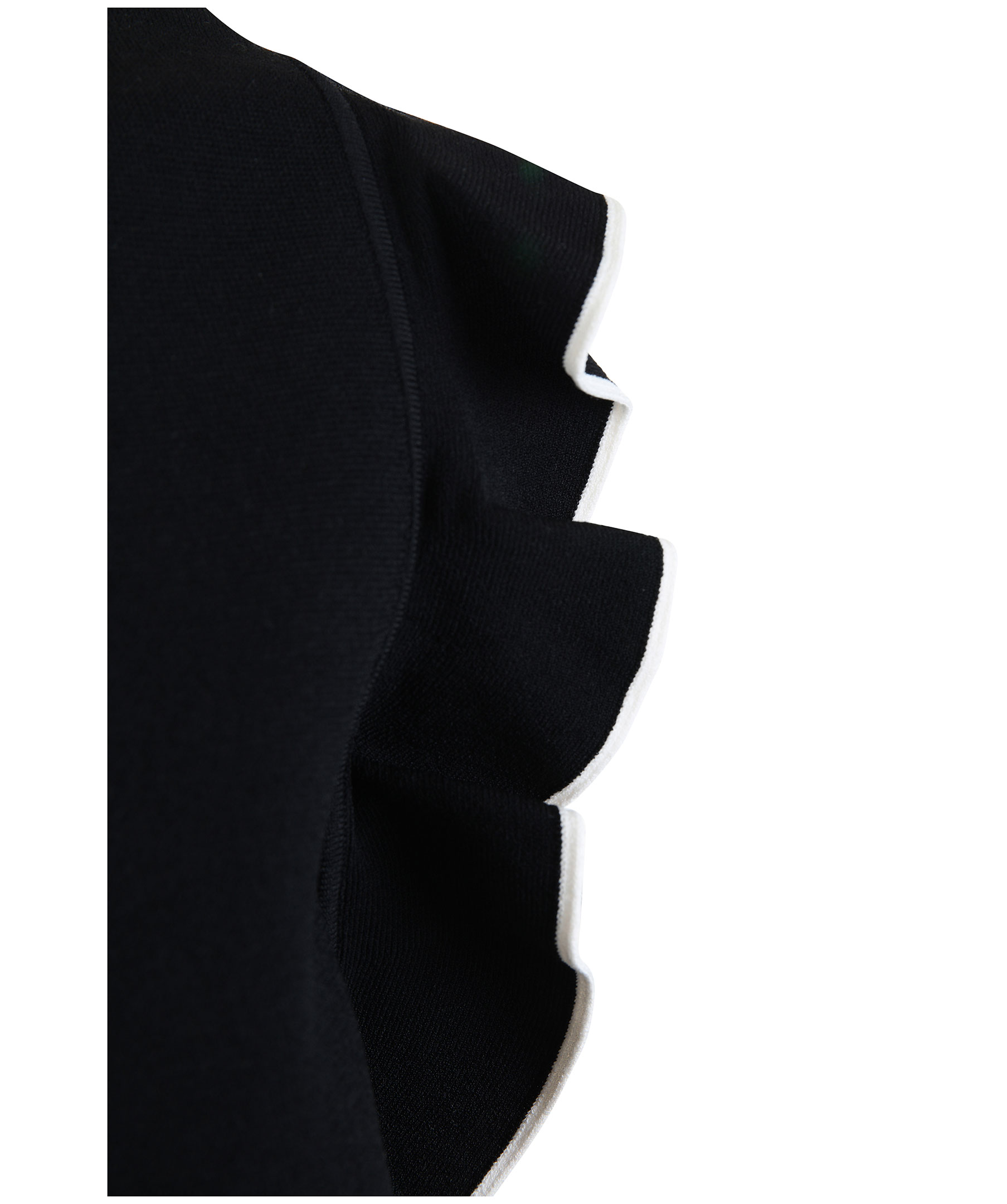 Svart finstickad kortärmad topp i smal passform från Karl Lagerfeld. Tillverkad i en stretchig viskosmix, volangkanter vid ärmslut och utskuren v-form i ryggen. Broderad med 'KARL' i nacken. Modellen är 175 cm lång och bär storlek S.