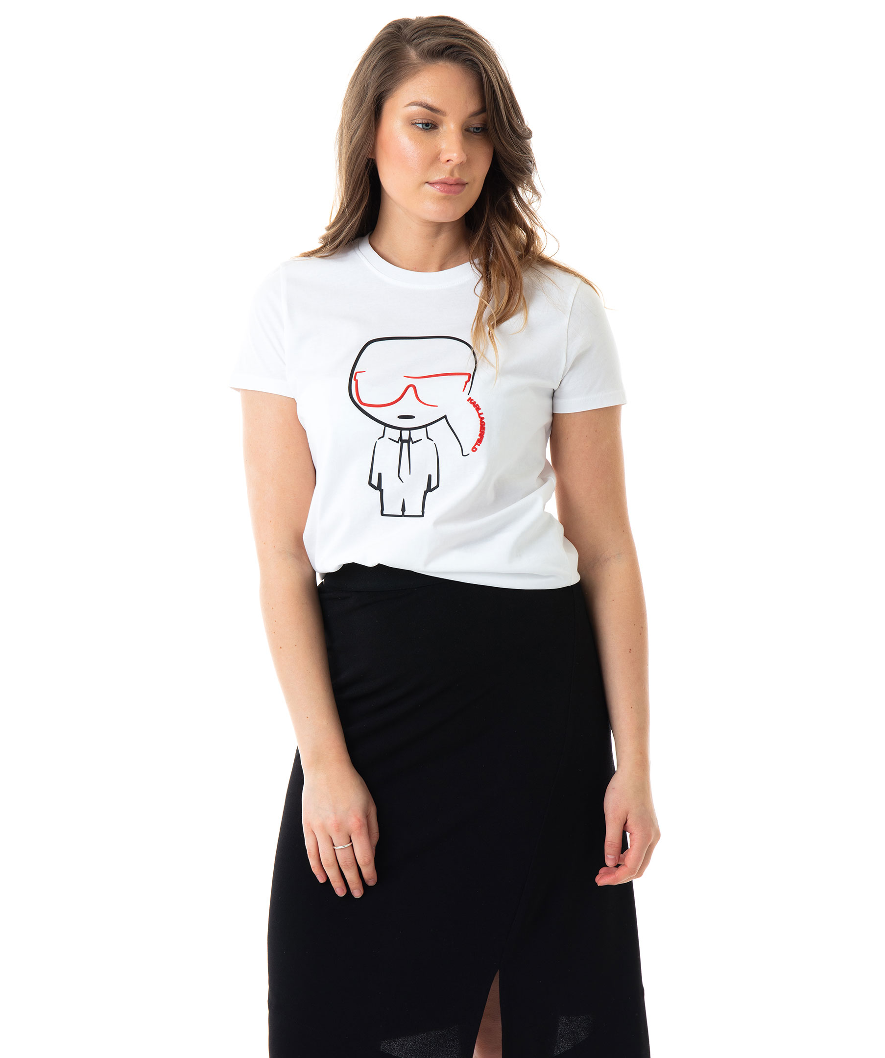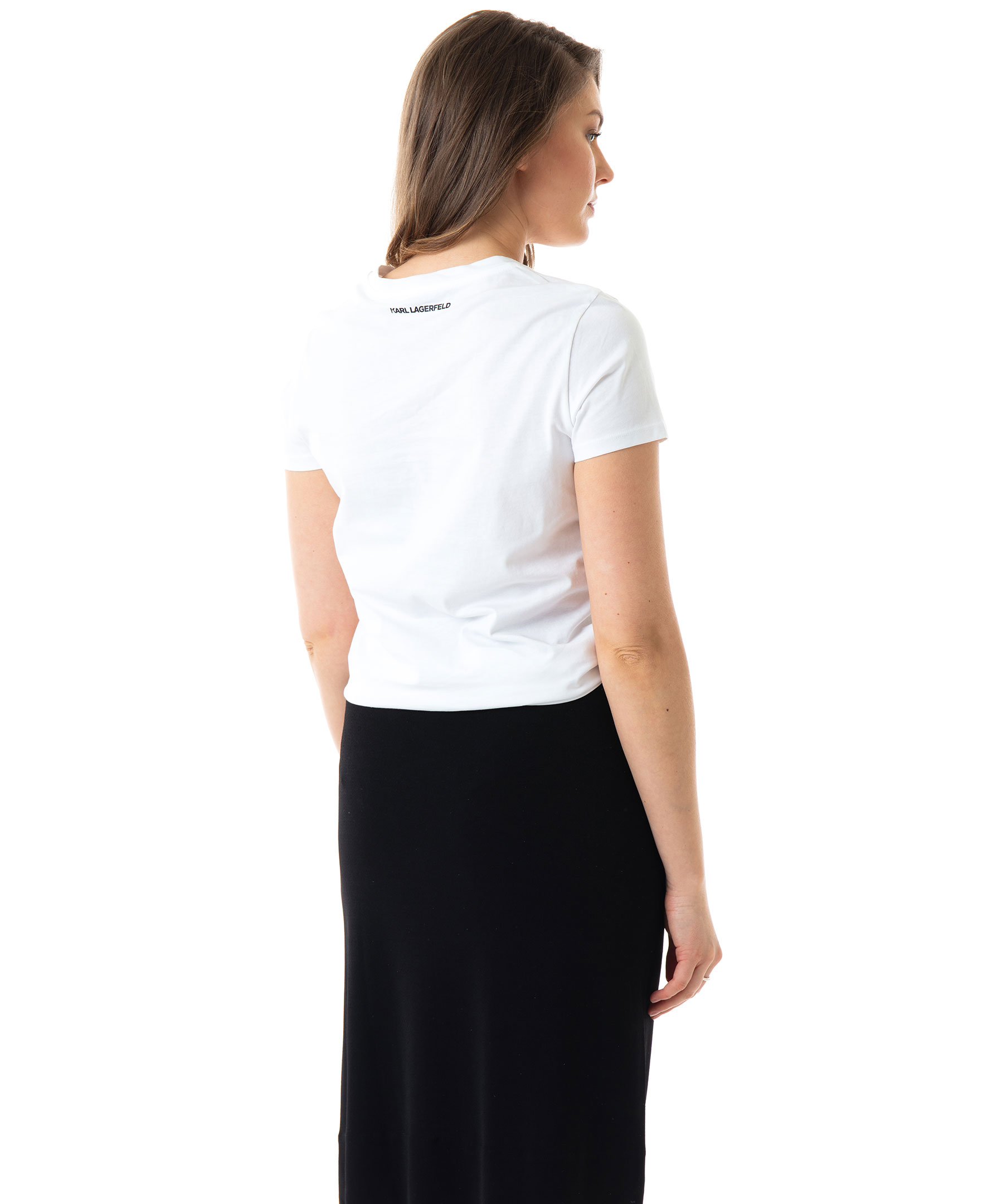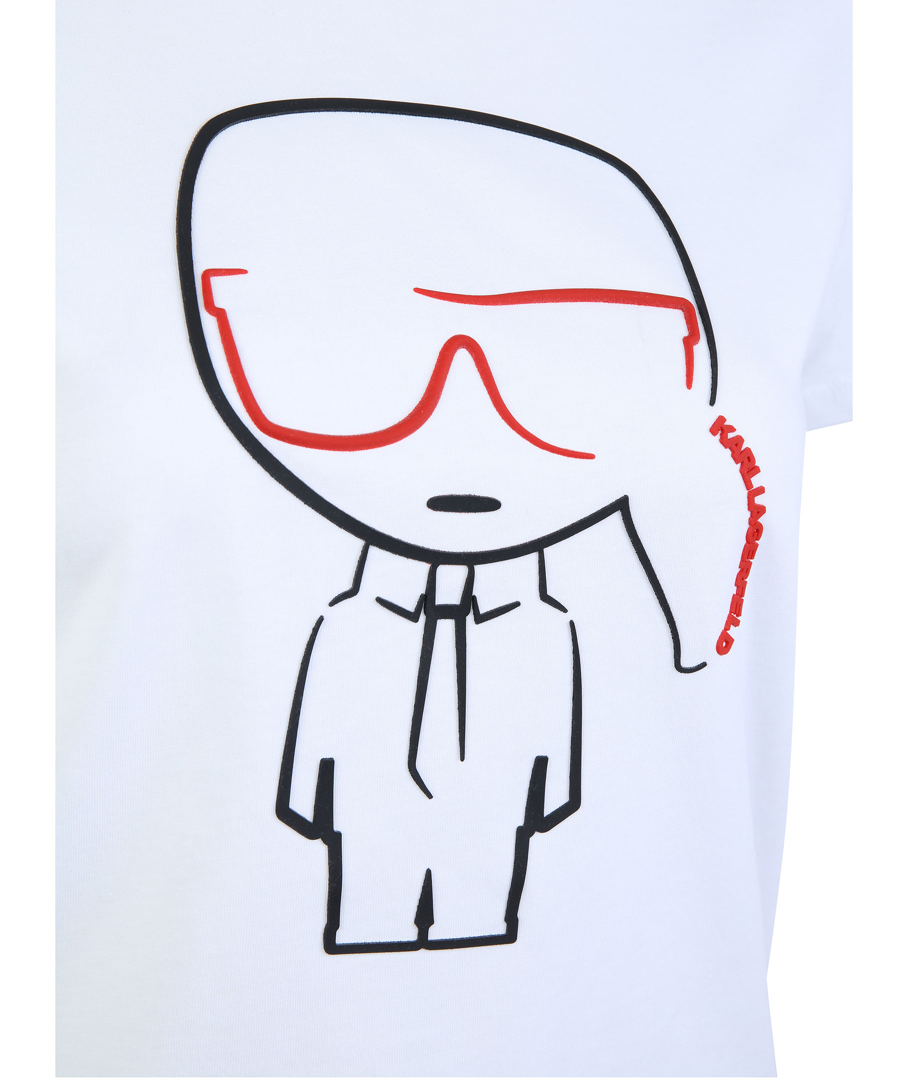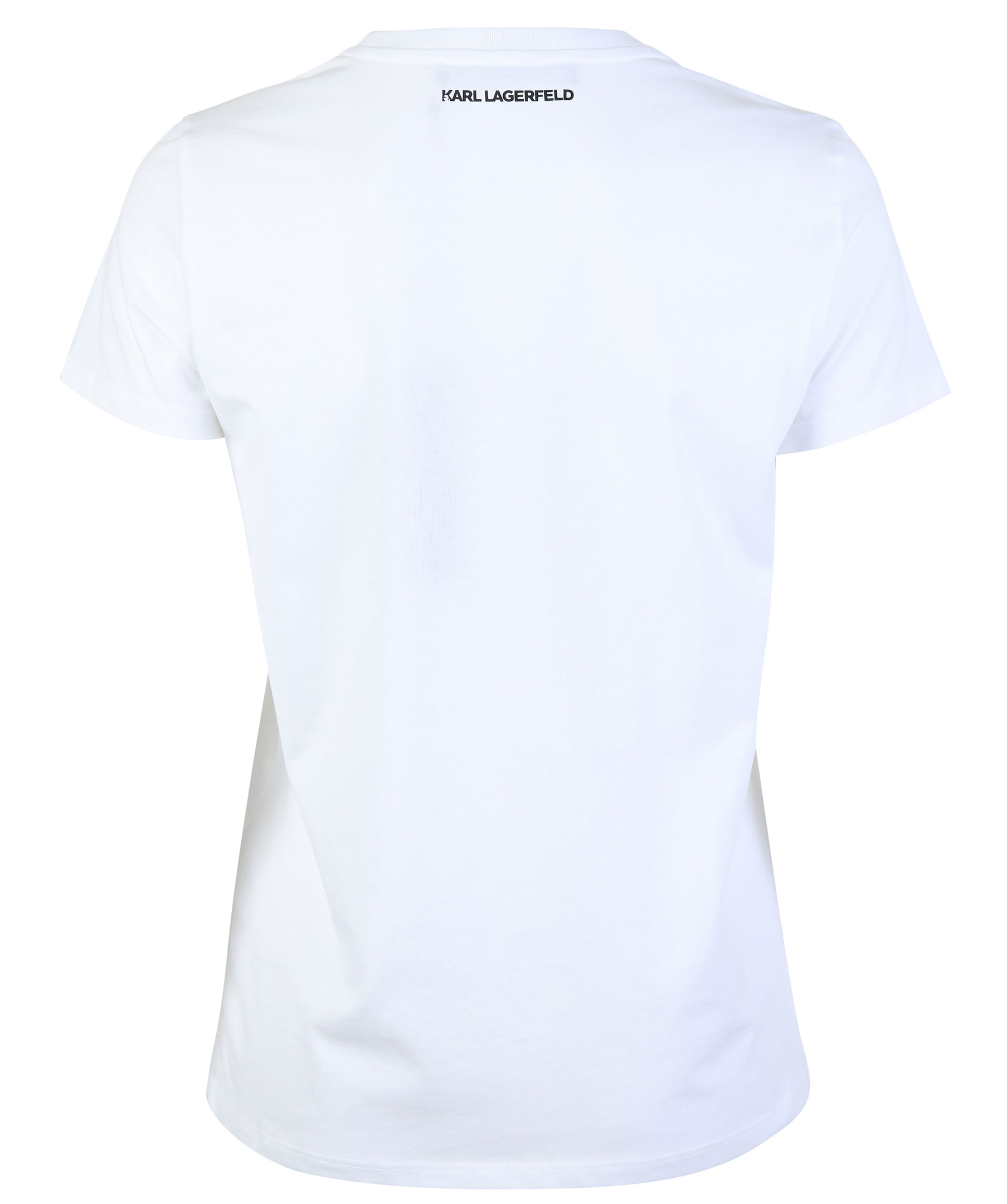 Vit t-shirt från Karl Lagerfeld. Tillverkad i 100% bomull. Gummerad Karl-figur tryckt på bröstet. Modellen är 175 cm lång och bär storlek S.