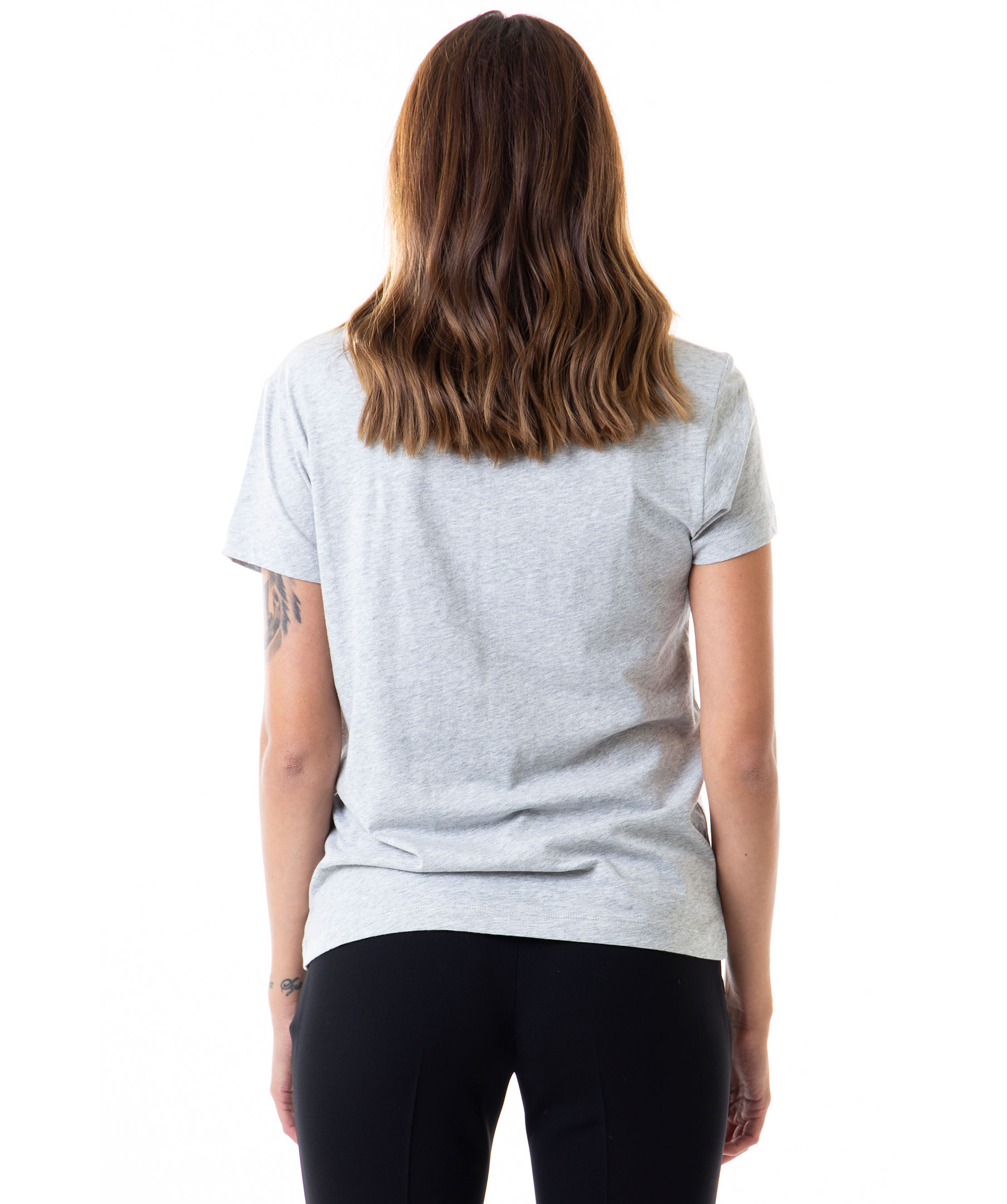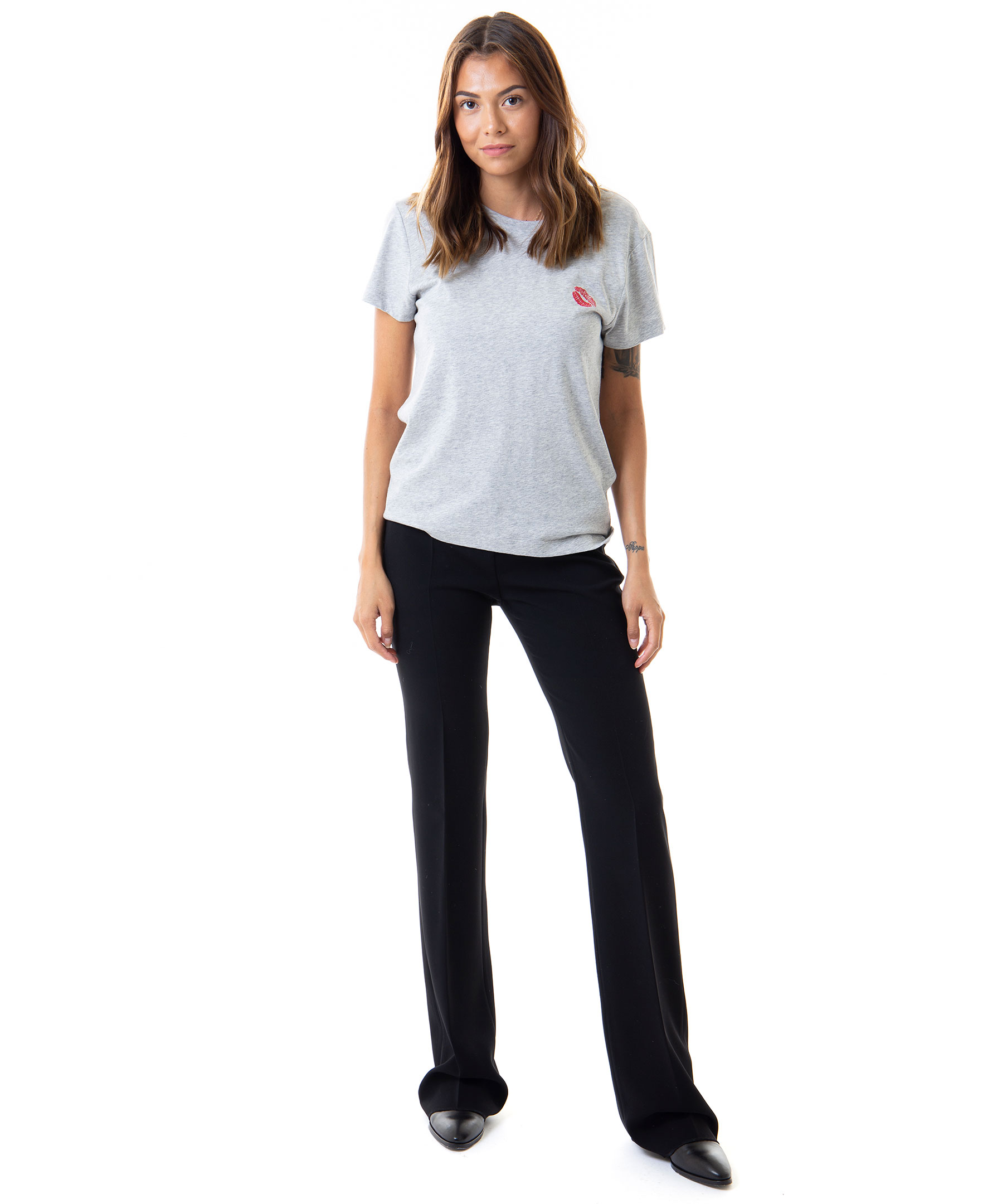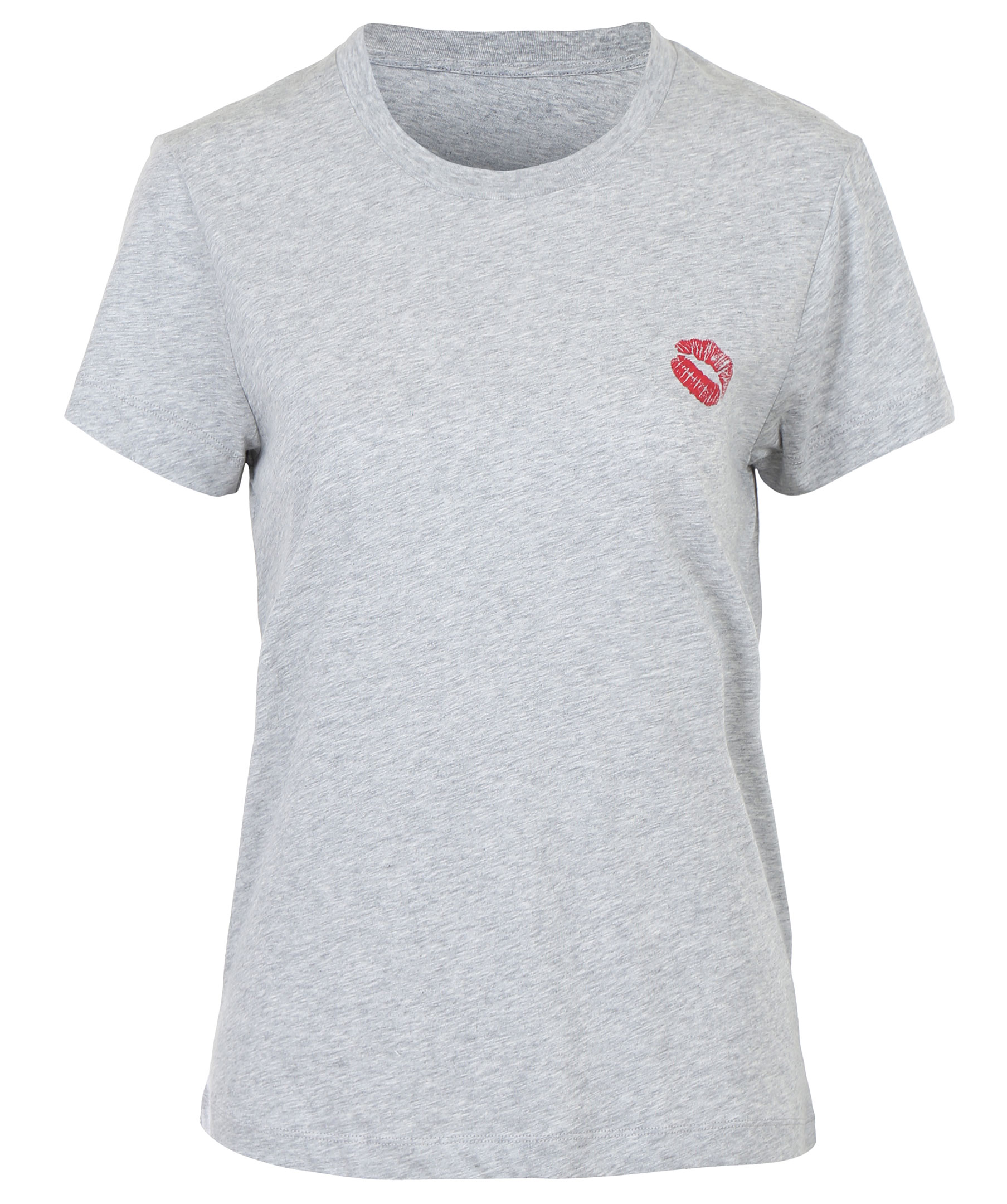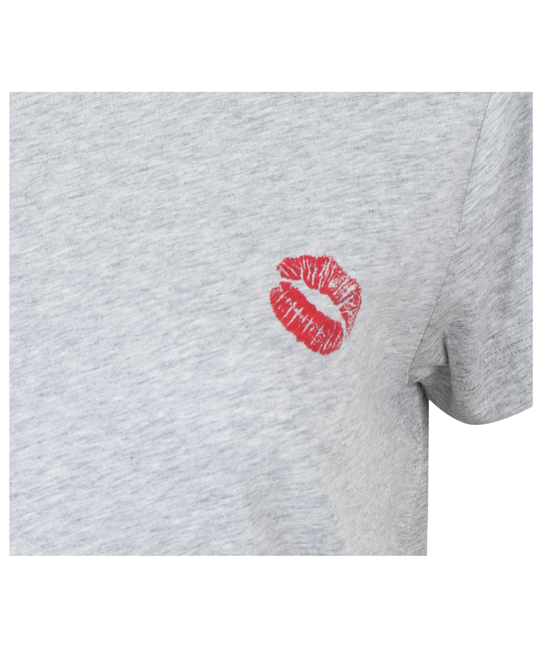Grå t-shirt från Lala Berlin gjord i mjuk bomull. Litet tryck av röda läppar och liten logotyp i nacken. Modellen är 174 cm lång och bär storlek S.