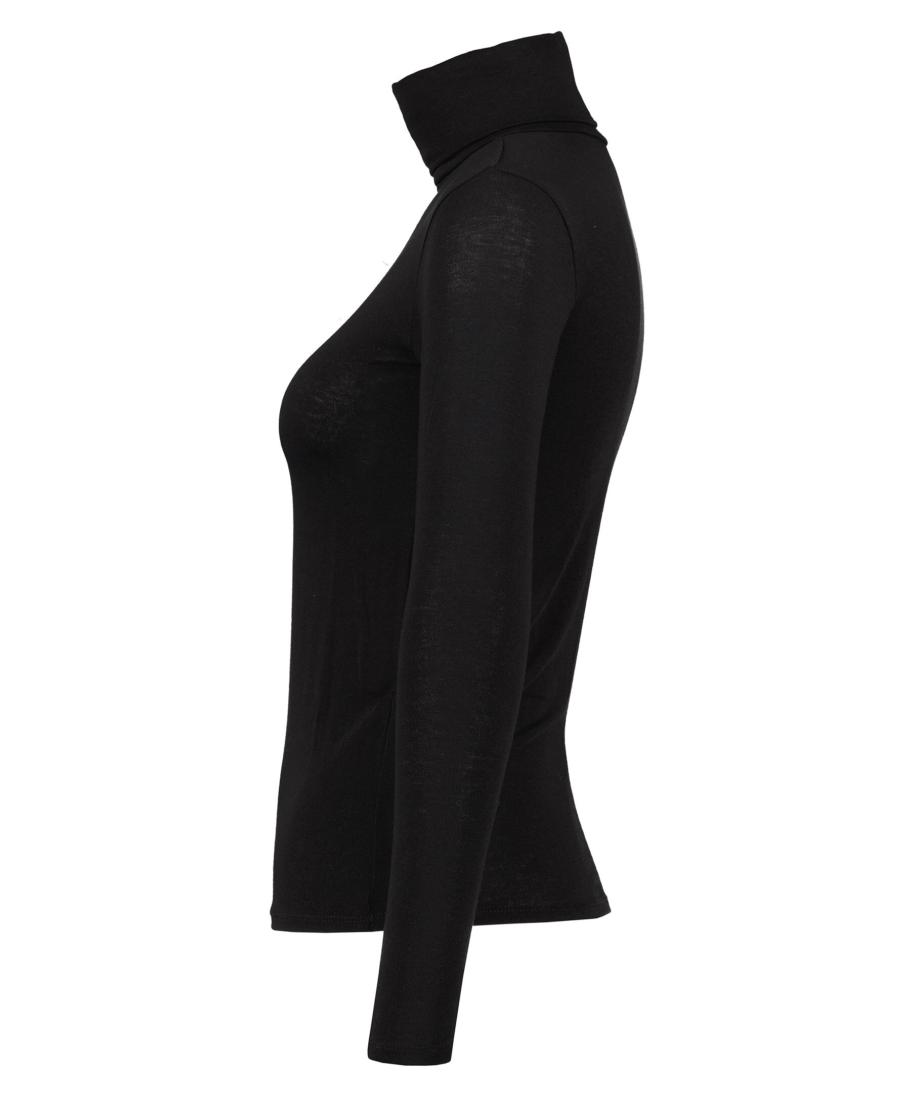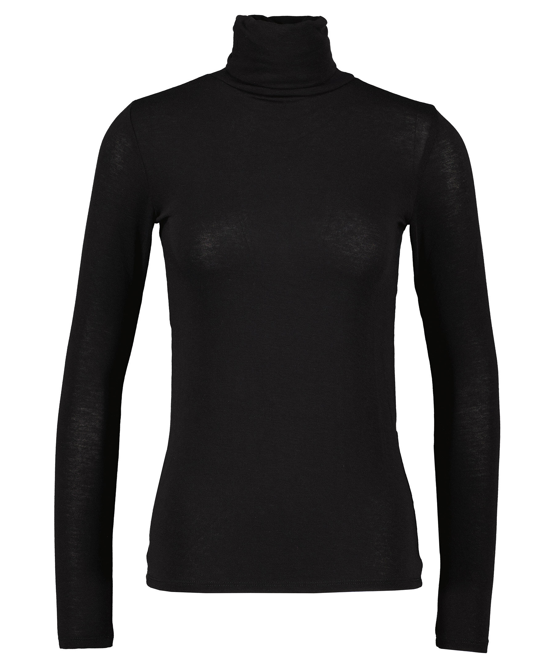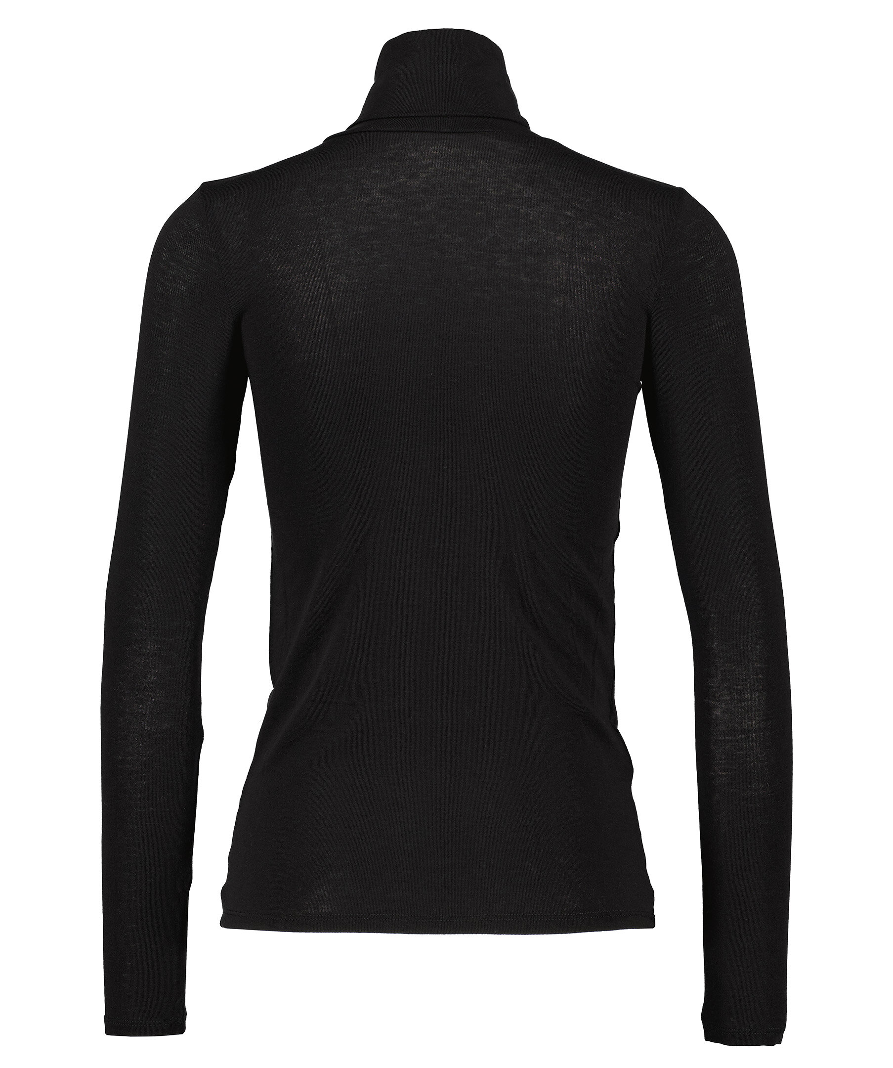 Svart polotröja från Second Female. Tillverkad i en blandning av merinoull och tencel. Passformen slim och figurnära.