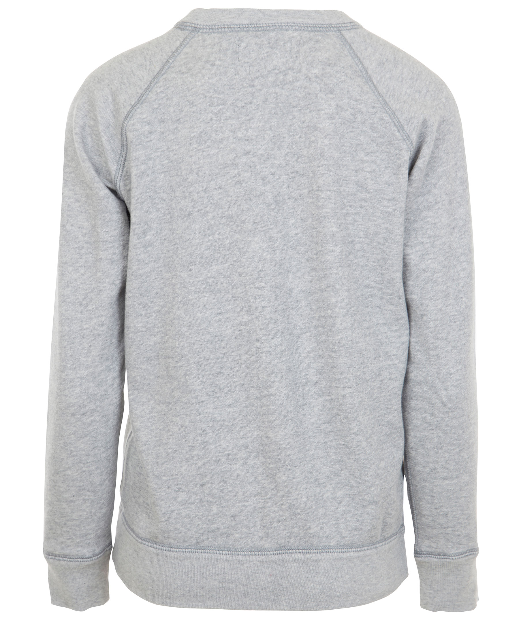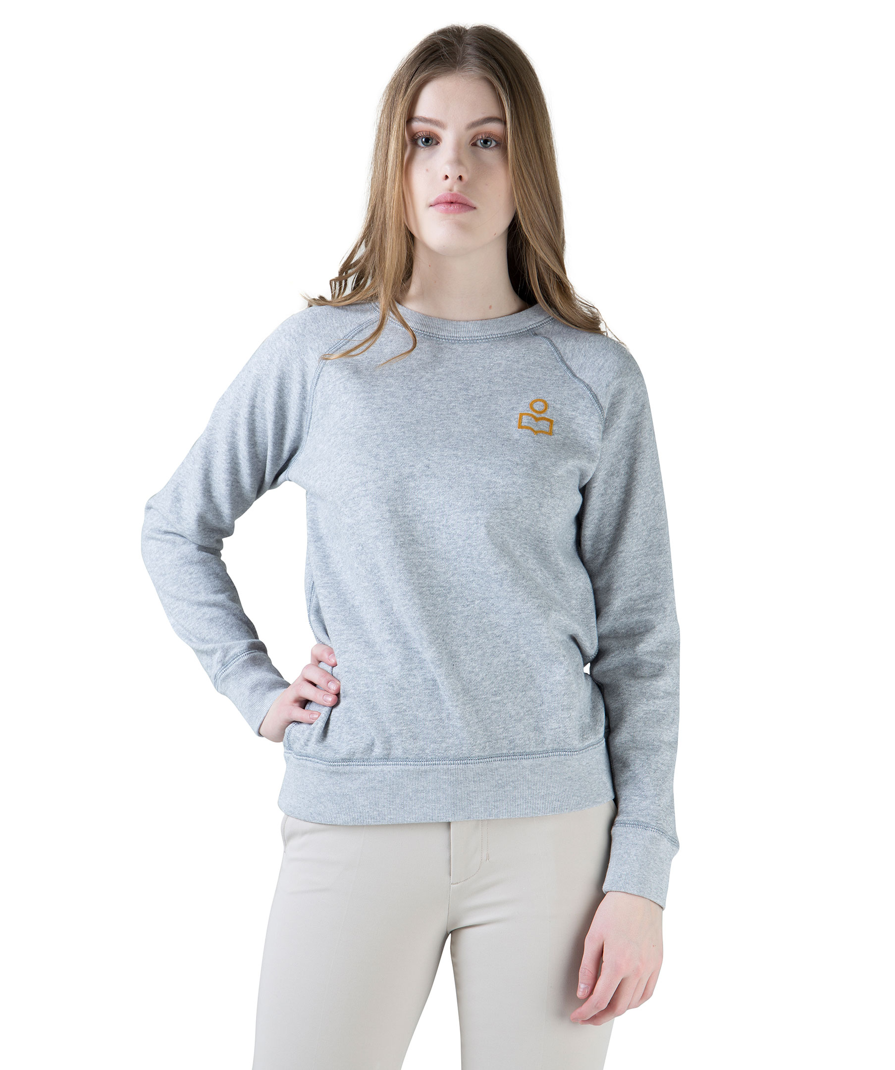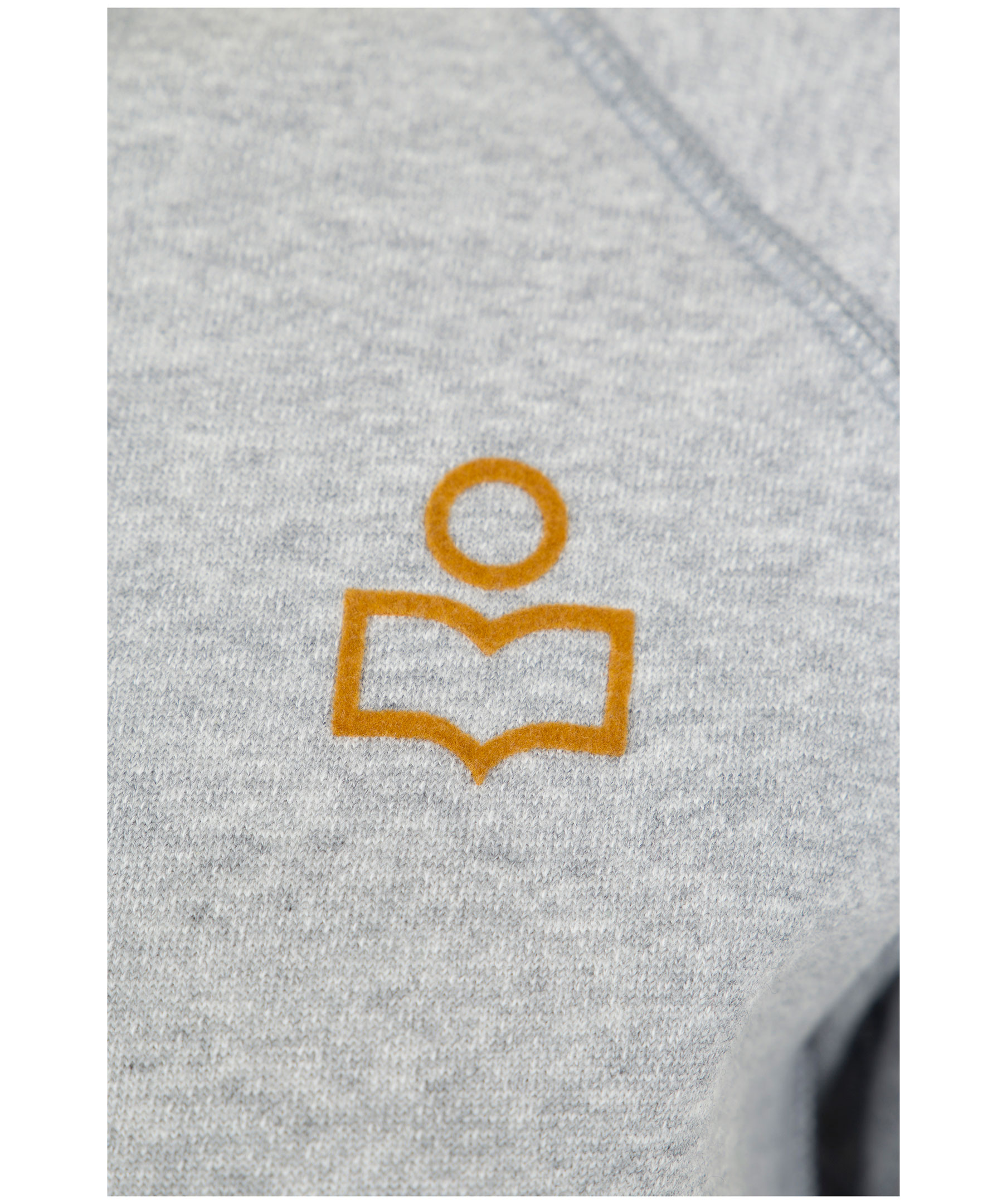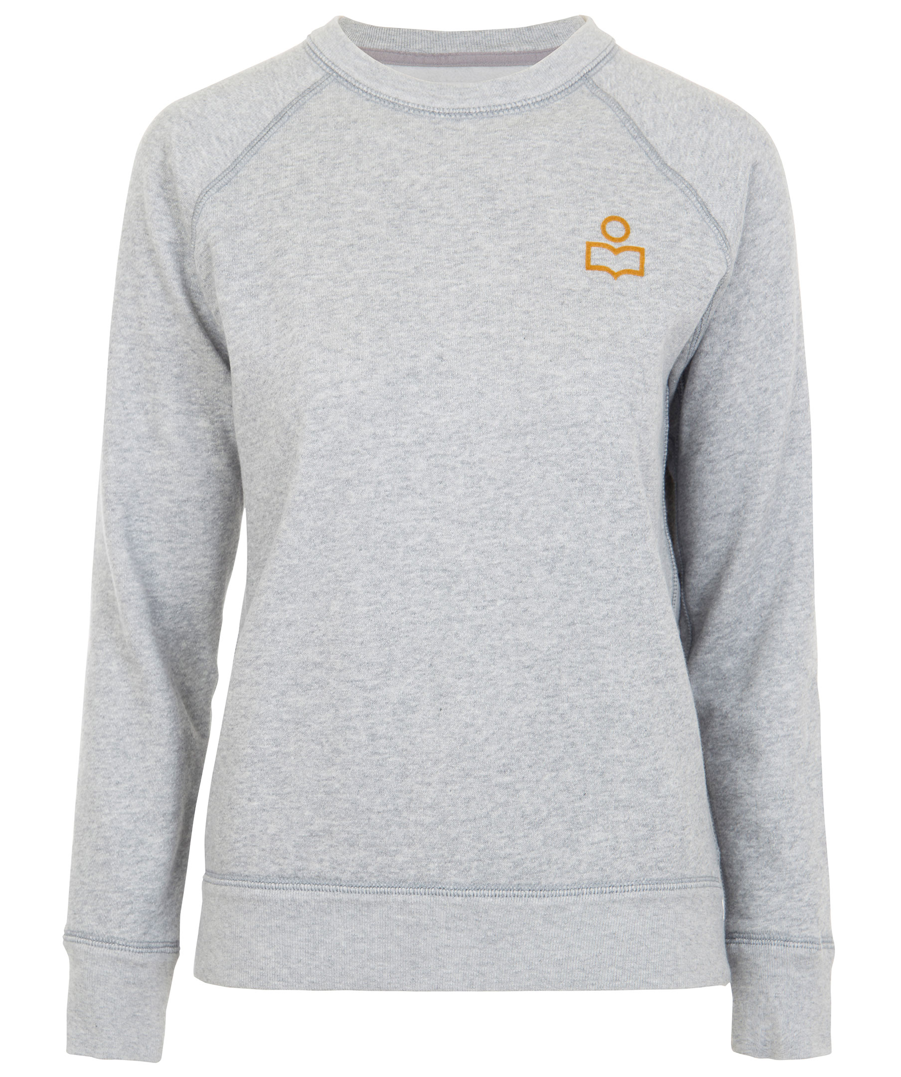 Grå sweatshirt från Isabel Marant. Ribbstickade muddar, rundad halsring och tygapplikation på bröstet. Tillverkad i mjuk bomullsmix.