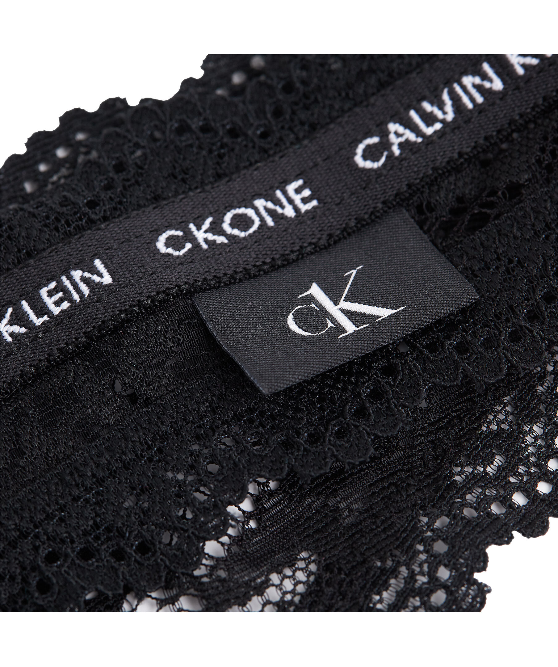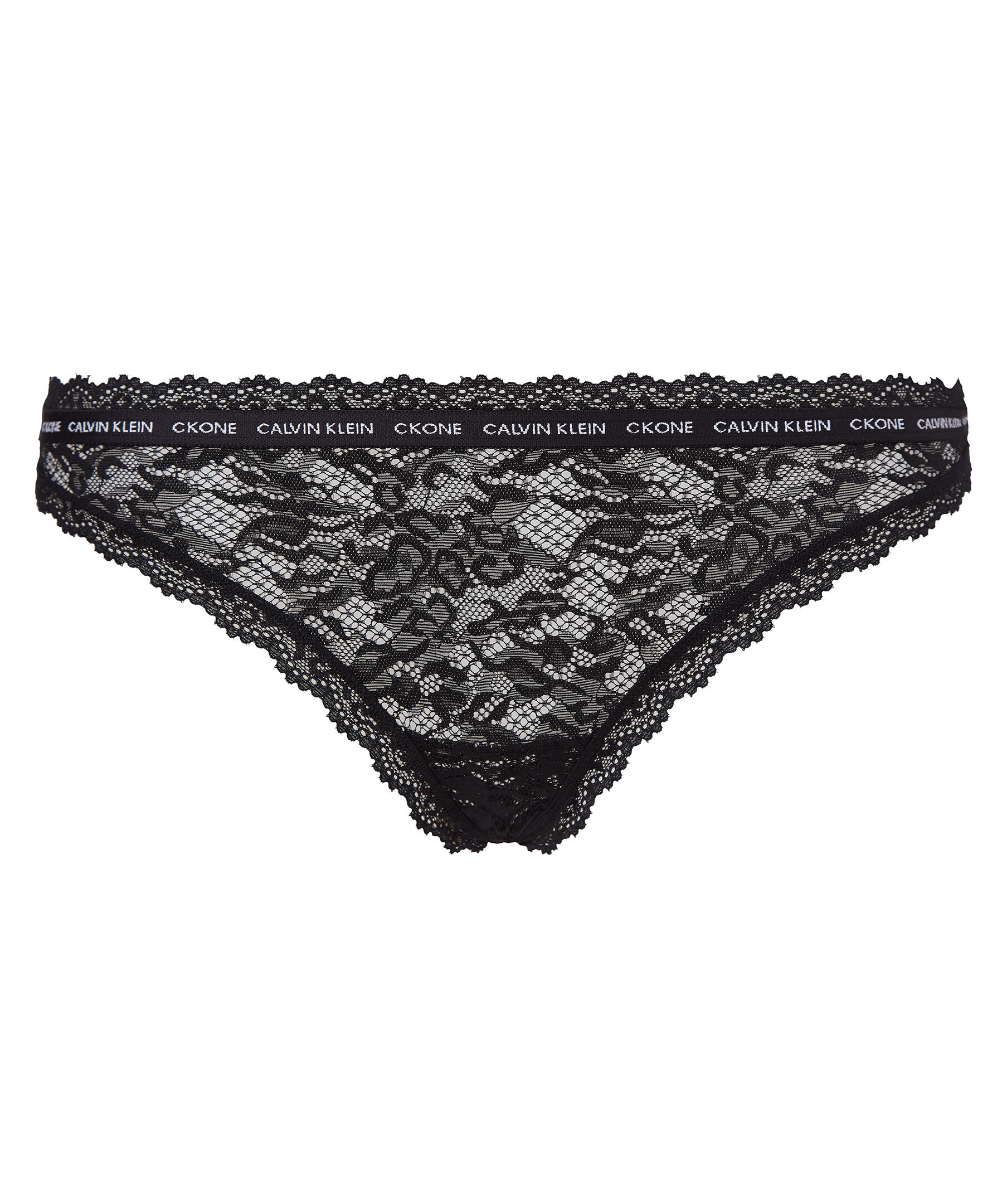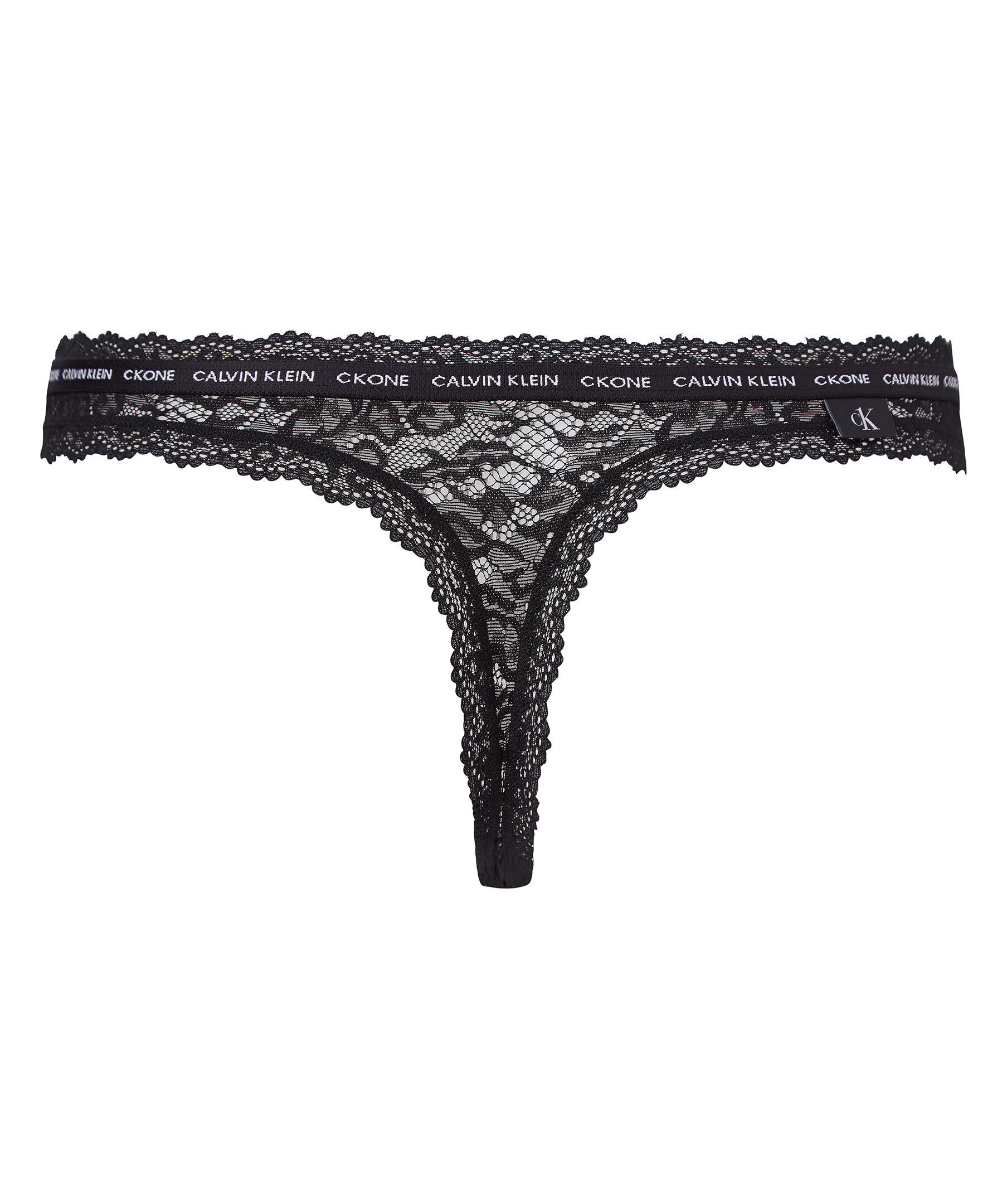 Svarta stringtrosor i spets från Calvin Klein. Smal resår med logotyp.