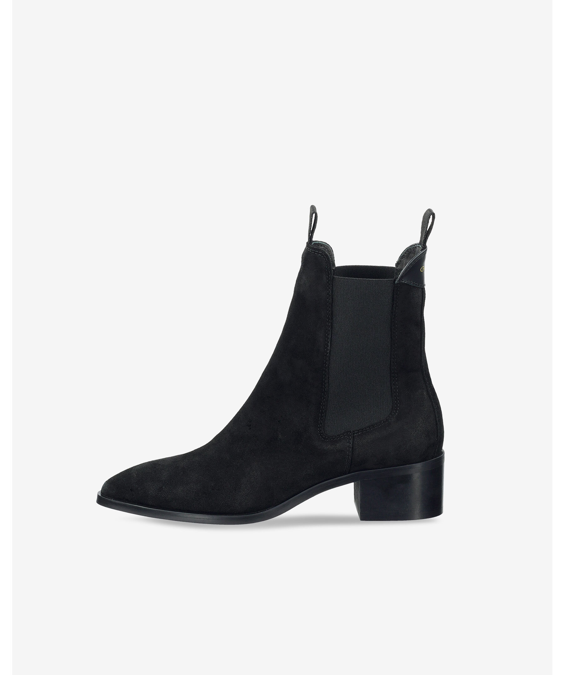 GANT St Broomly Chelsea Boots i svart mocka med spetsig tå, medelhög klack och elastiska sidopaneler. Ovandel i mocka, tygfoder och EVA-yttersula.