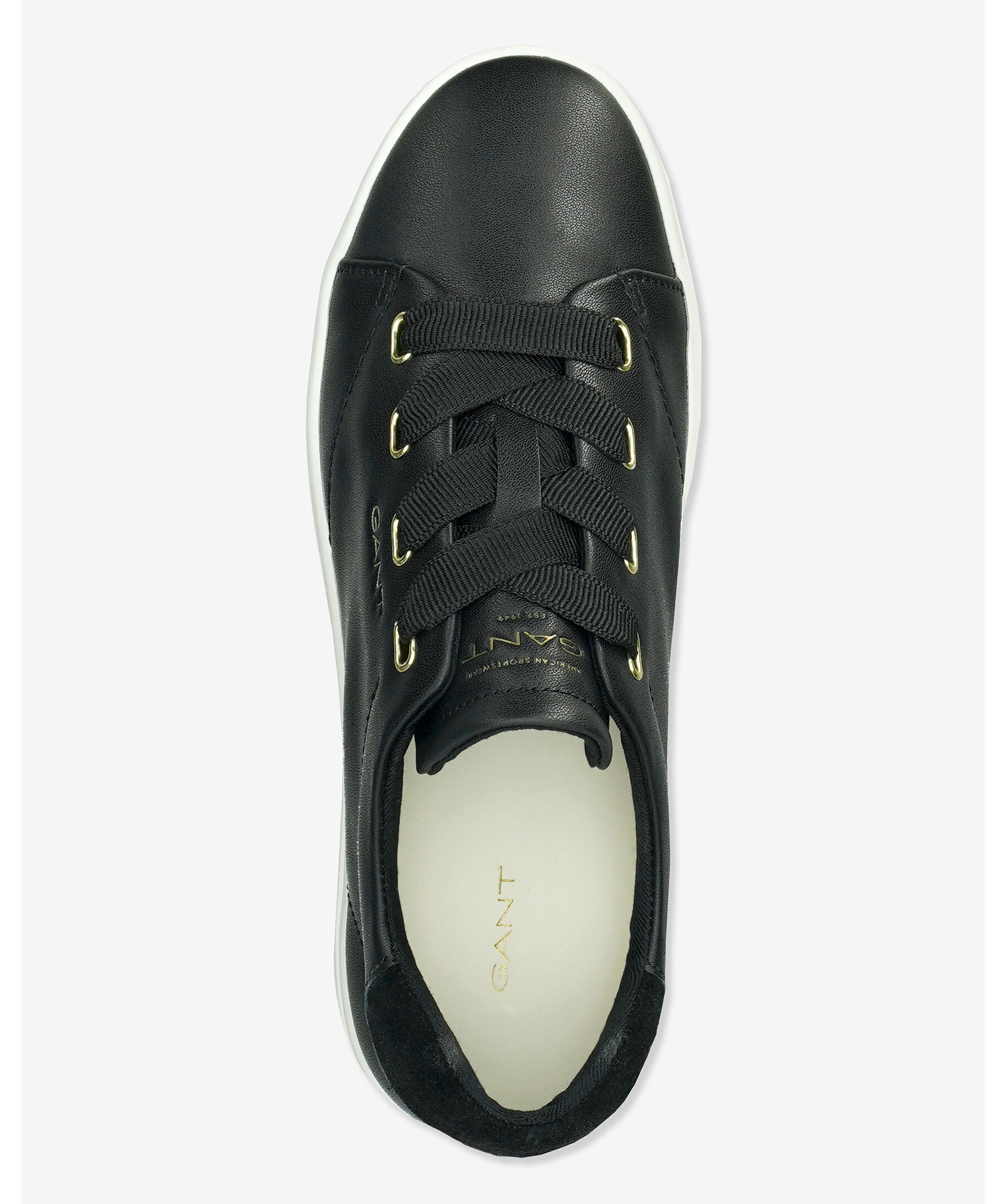 Svart plattform sneaker från GANT footwear. En klassiker från GANT’s American Sportswear-kollektion – en sneaker i högkvalitativt läder med vulkaniserad sula, metalliska detaljer och färgmatchad hälkappa i mocka. Skon har textilfoder och en uttagbar innersula i läder för extra komfort och funktion.