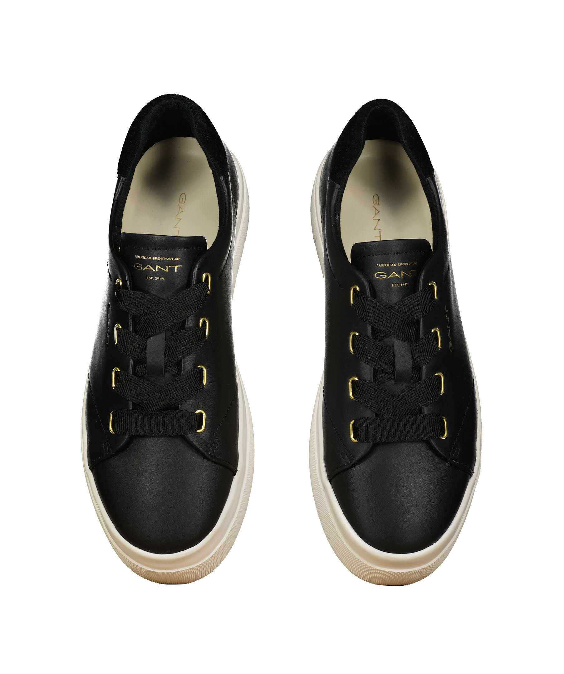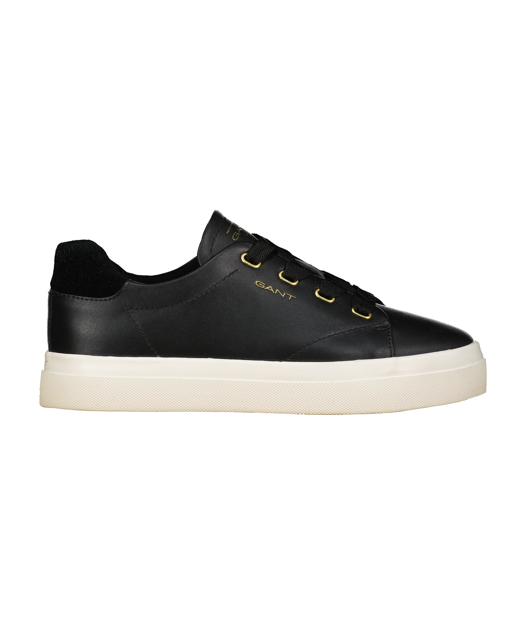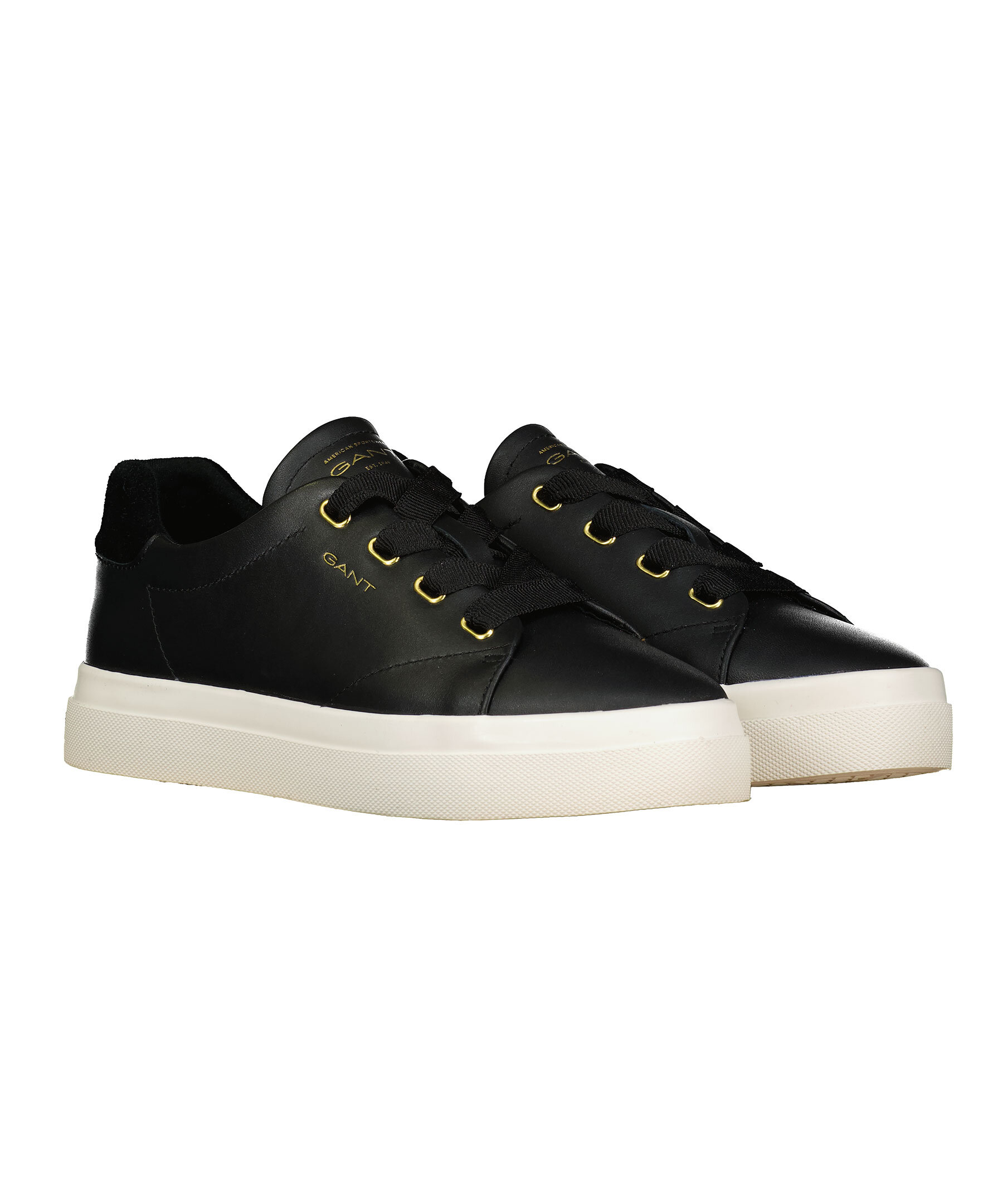 Svarta sneakers med vit sula och mocka del på hälen från Gant Footwear. Populära sneakers med hög vulkaniserad yttersula med trendig hälkappa. Ovandelen är gjord av högkvalitativt läder med textilfoder och läderklädd innersula. Logotyp på plösen, utsidan av skon samt på hälen.