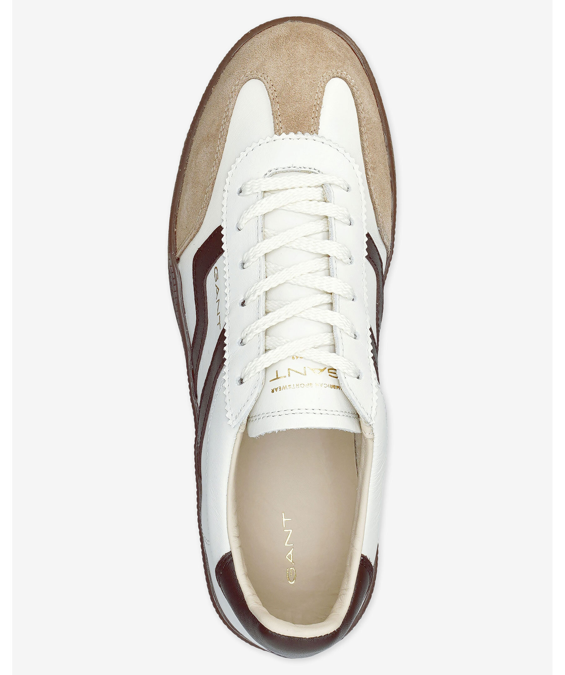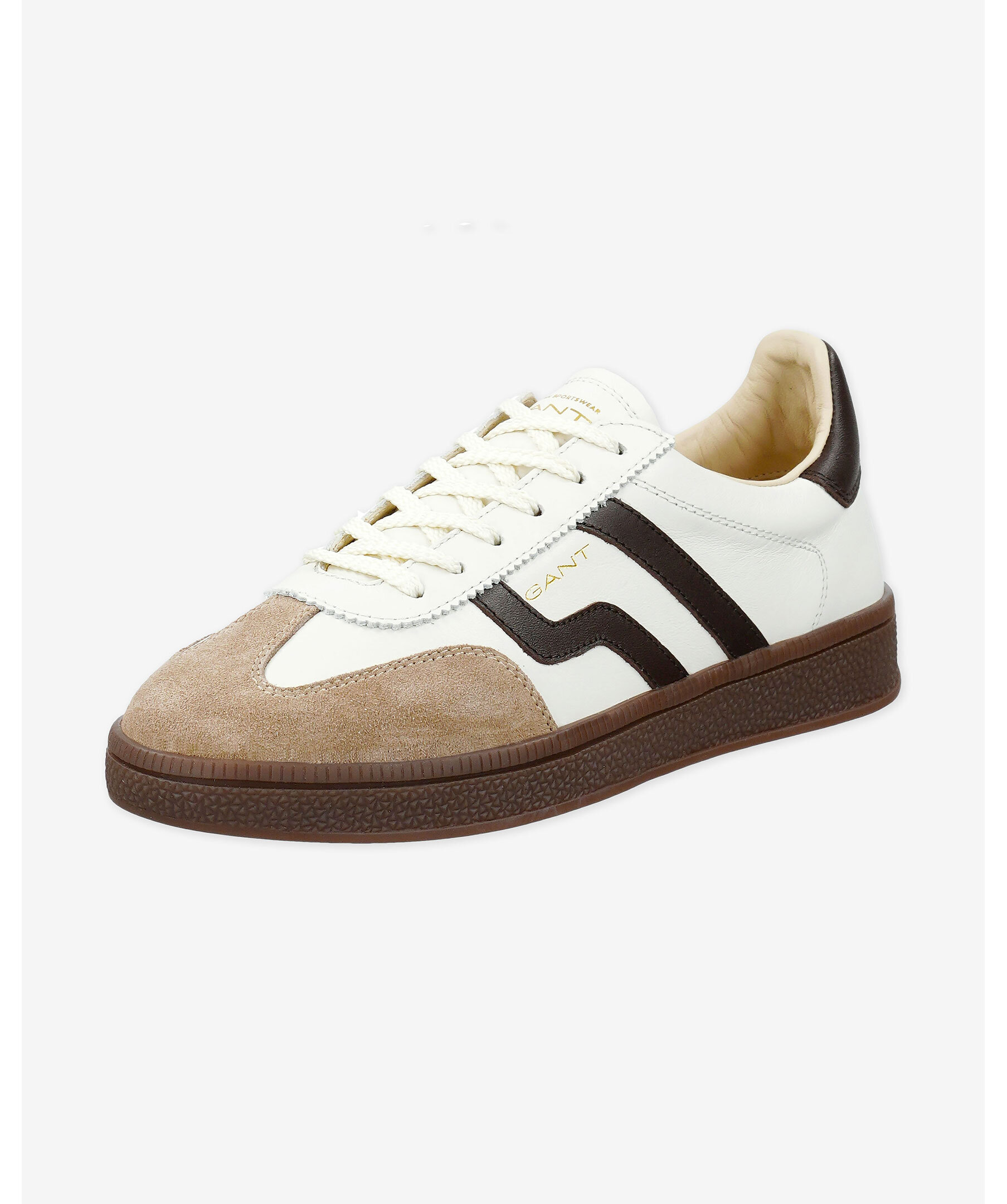 Sportig sneaker från GANT Footwear med slimmad silhuett och klassisk vintagekänsla. Ovandelen är gjord i mjukt nappaläder med eleganta mockadetaljer, läderfoder och en läderklädd innersula ger en lyxigt bekväm passform. Diskret logotyp på skons ena sida.