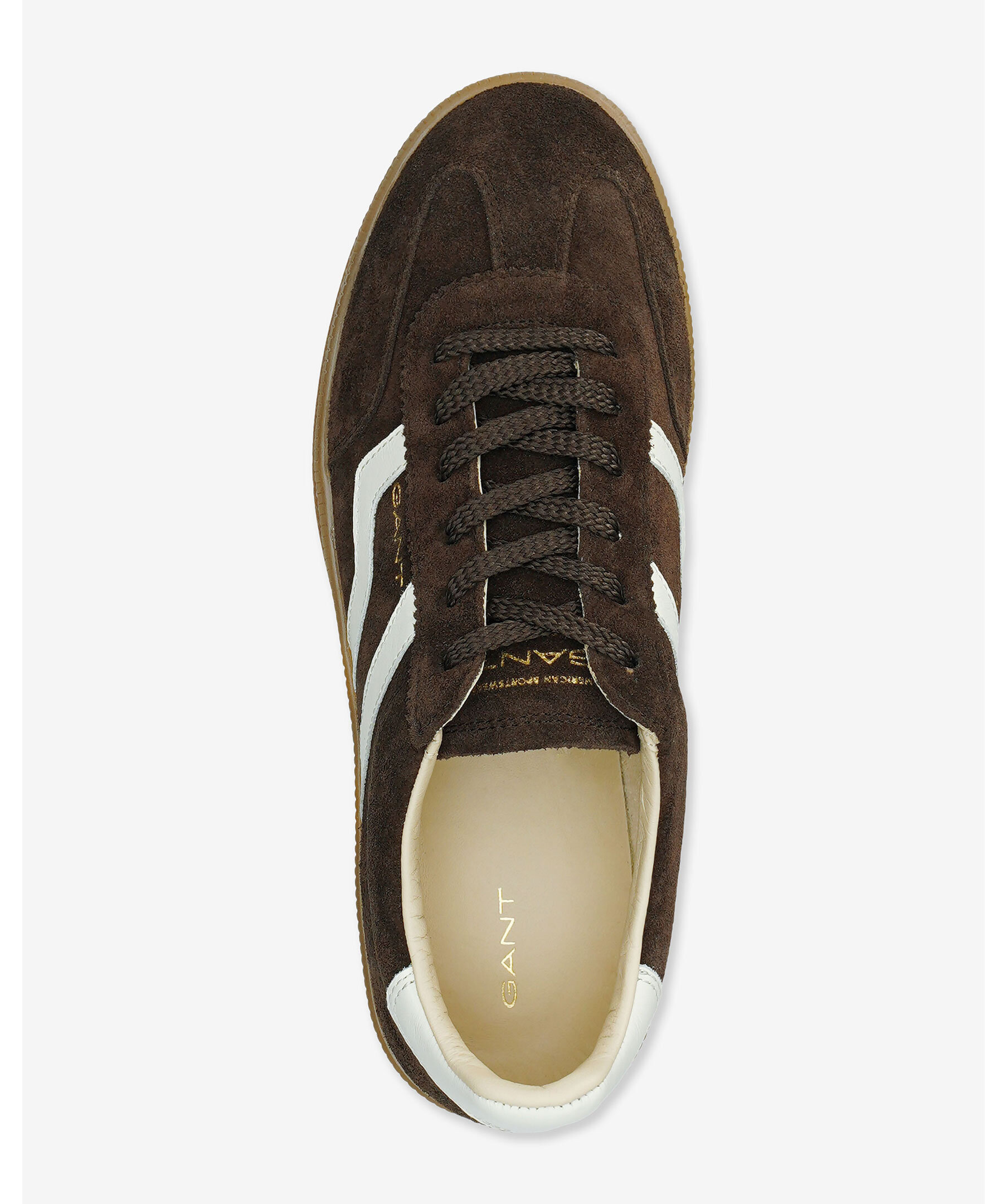Retroinspirerad sneaker i mocka från GANT footwear. Skon har en slimmad silhuett och en tidlös vintagekänsla. Ovandelen i mocka kombinerat med vita läderdetaljer, läderfoder och en läderklädd innersula ger en exceptionellt bekväm passform. De ikoniska honungsfärgade gummisulorna tillför både karaktär och unik stil. Diskret logotyp på sidan.