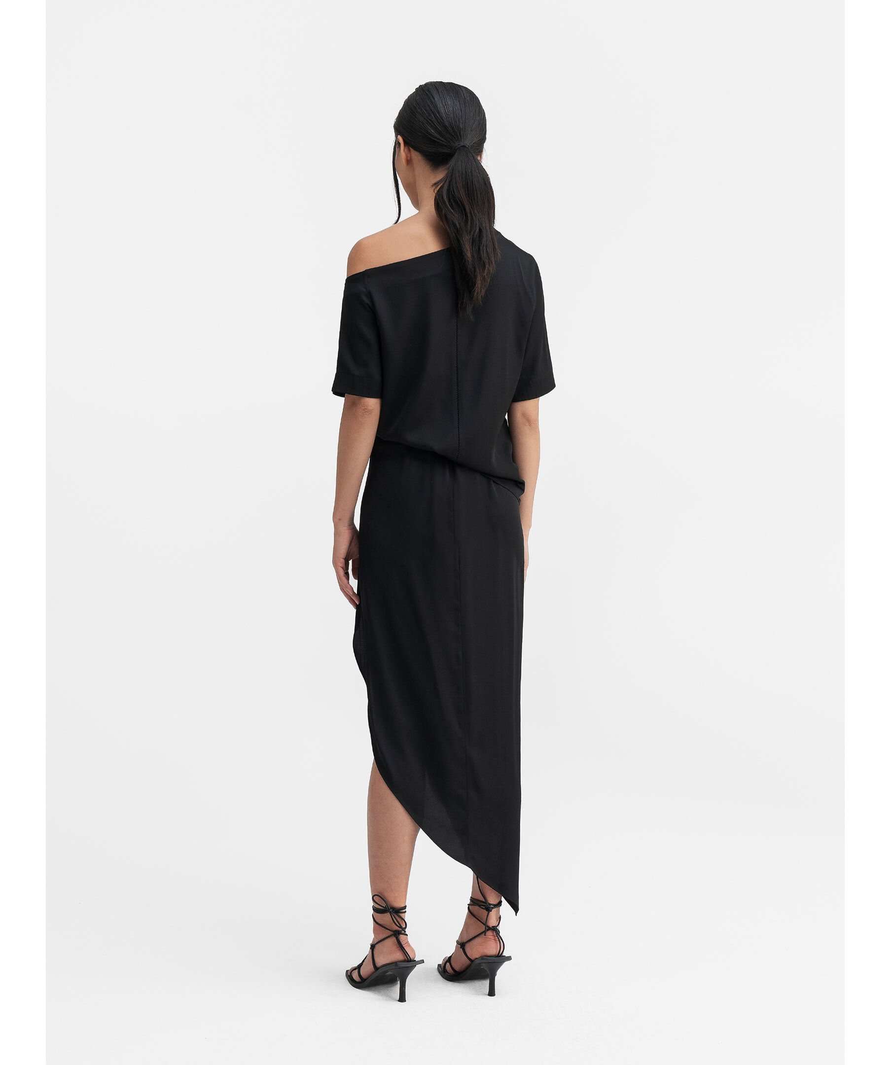 Svart topp i siden från Ahlvar Gallery. Toppen har korta ärmar och en off-shoulder-modell samt en broderad söm längs ryggen. Tillverkad i en sidenblandning.