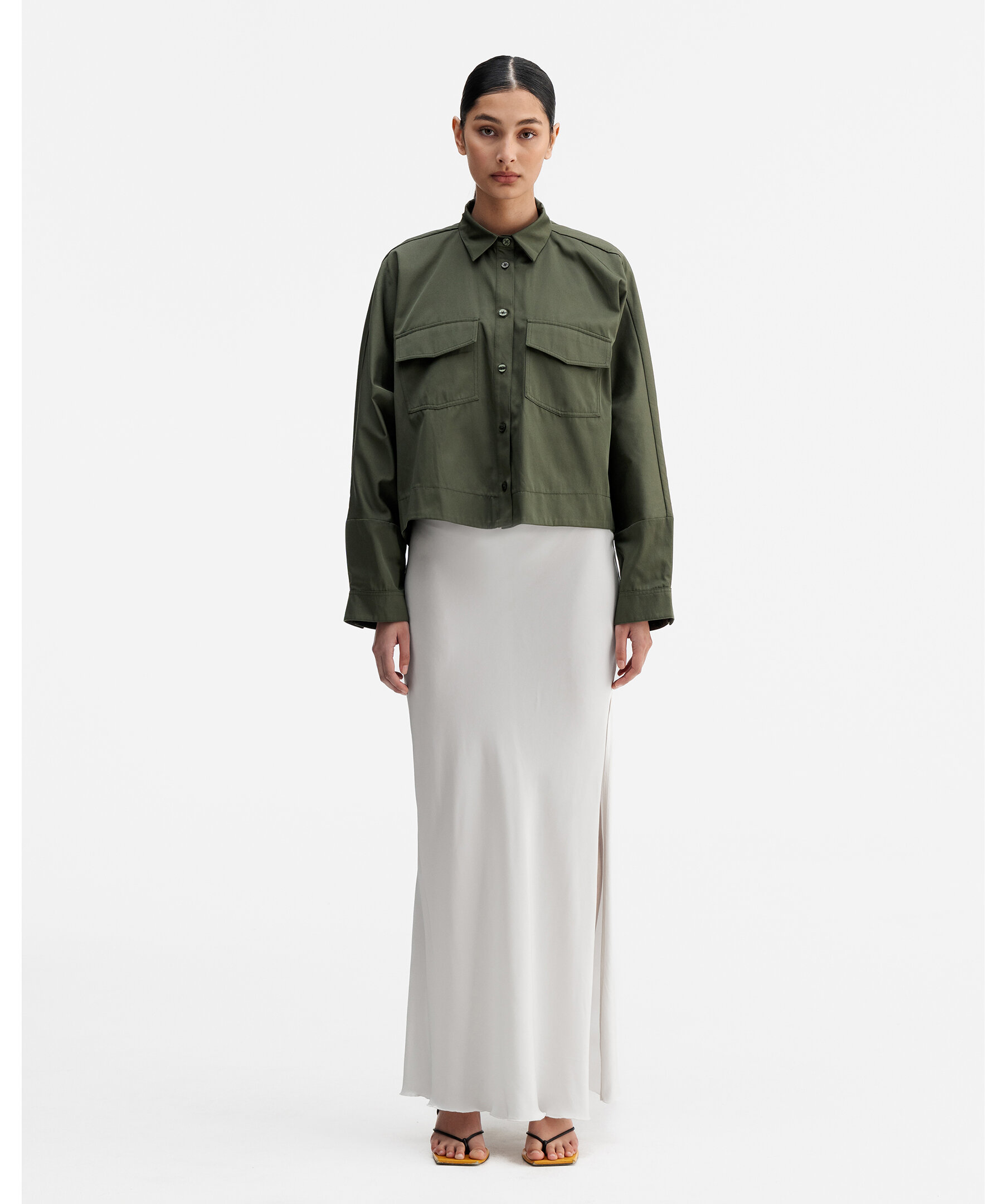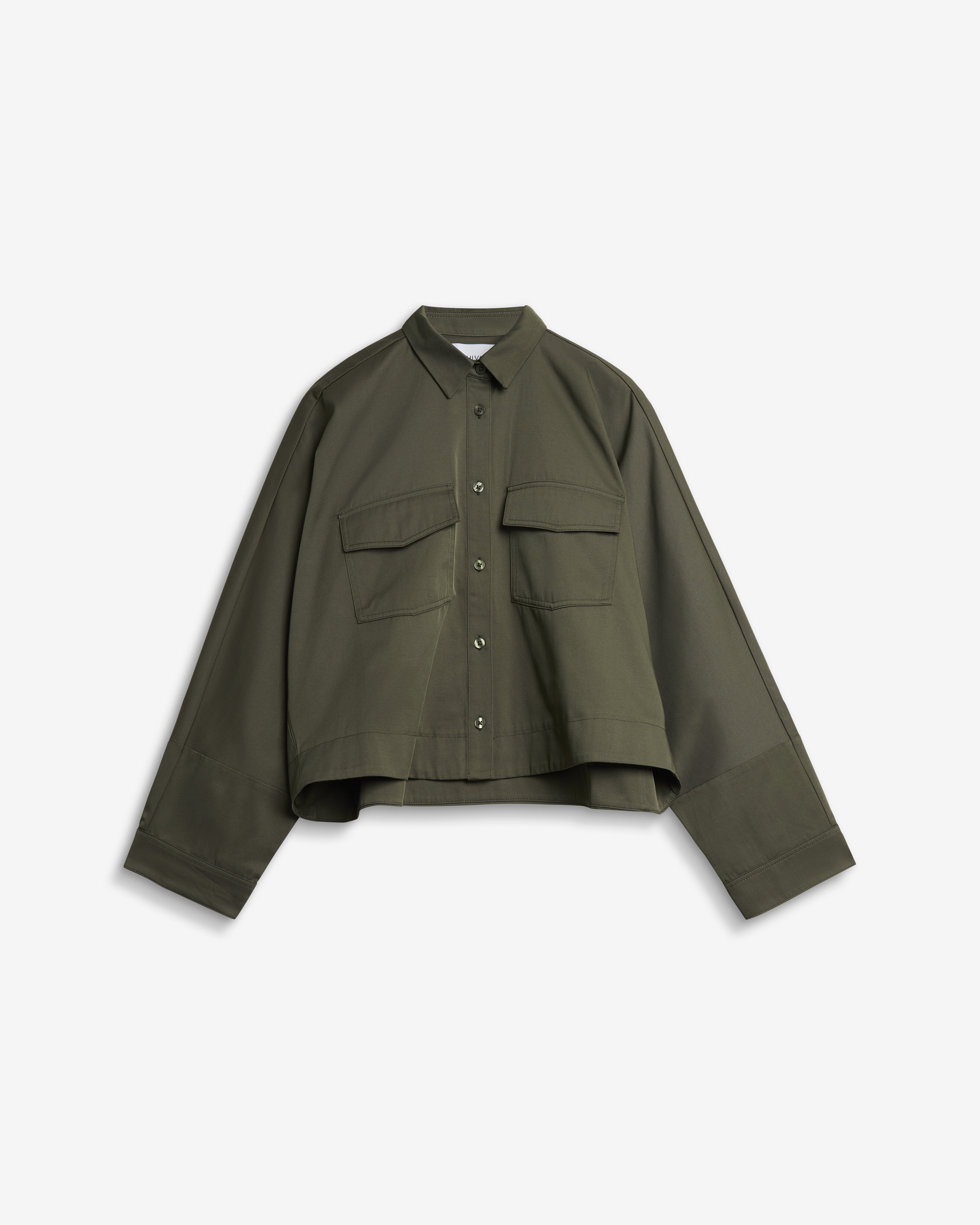 Kori Over Shirt från Ahlvar Gallery är baserad på bästsäljaren Kaia Over Shirt, men är 10 cm kortare. Den är tillverkad i en bomullsblandning och skuren i en boxig silhuett med påsydda bröstfickor.