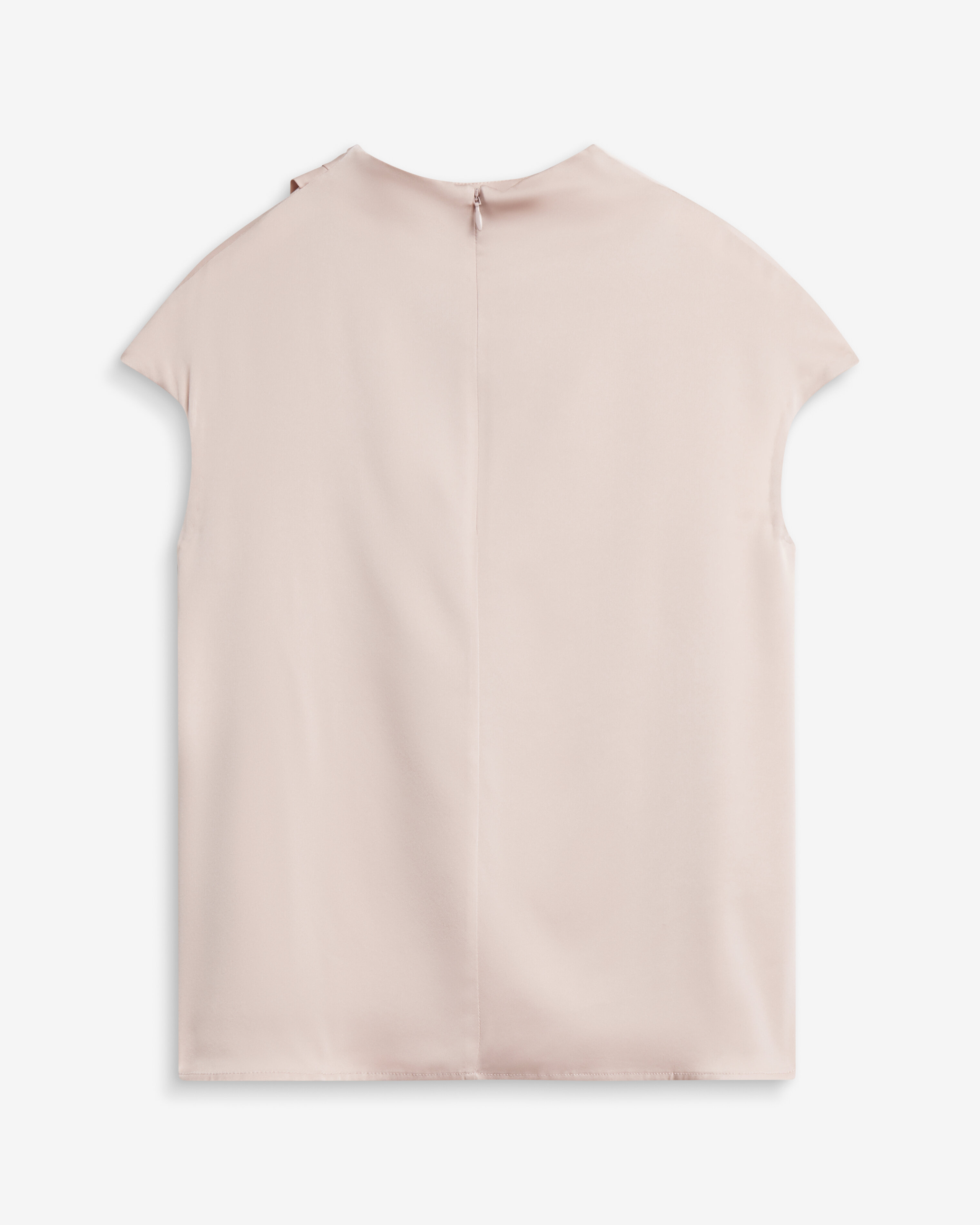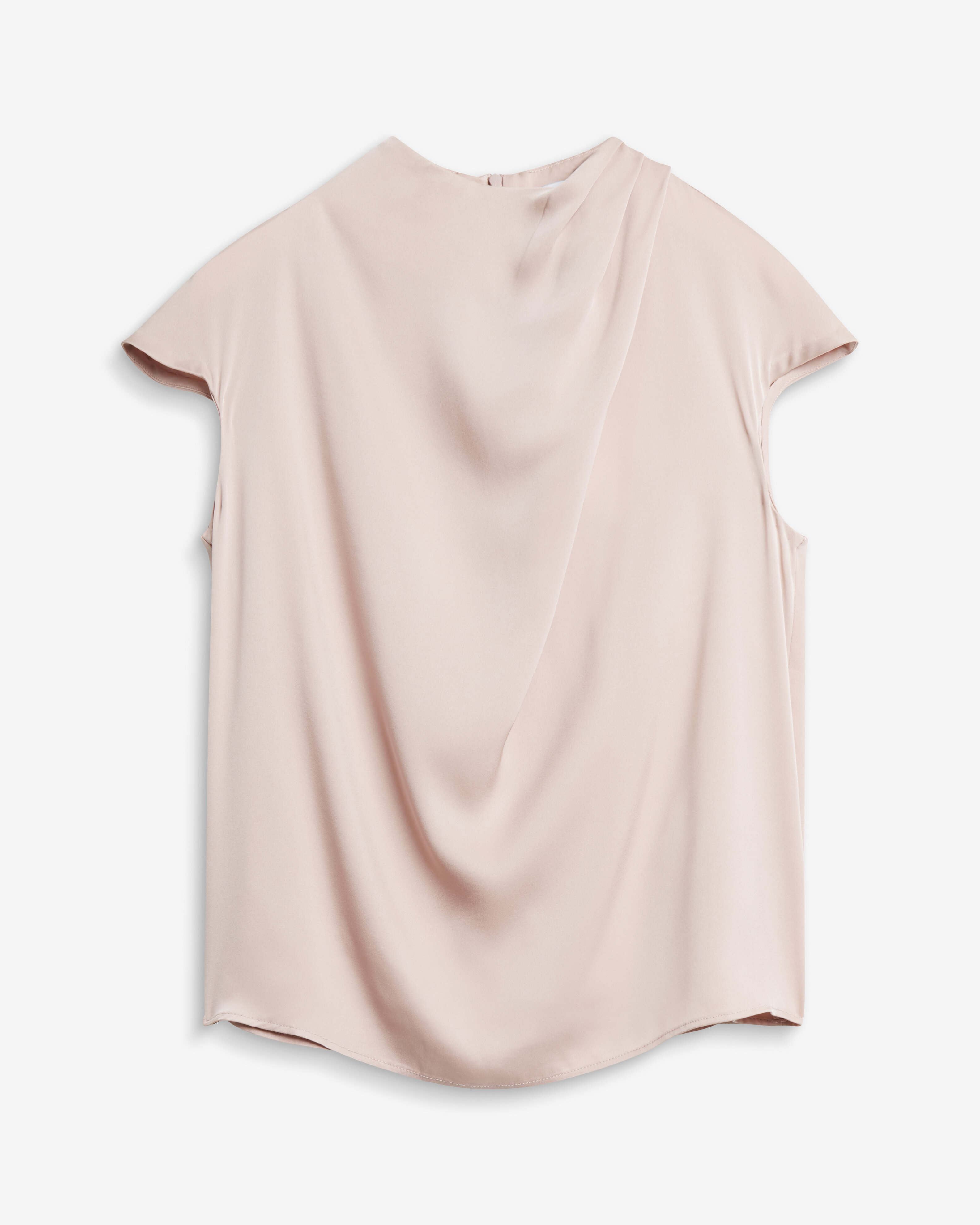 Lima Top från Ahlvar Gallery är designad i varumärkets klassiska silkesstretch och har asymmetriska veck som skapar elegant drapering längs halsringningen. Toppen har korta ärmar och en dold dragkedja baktill vid nacken.