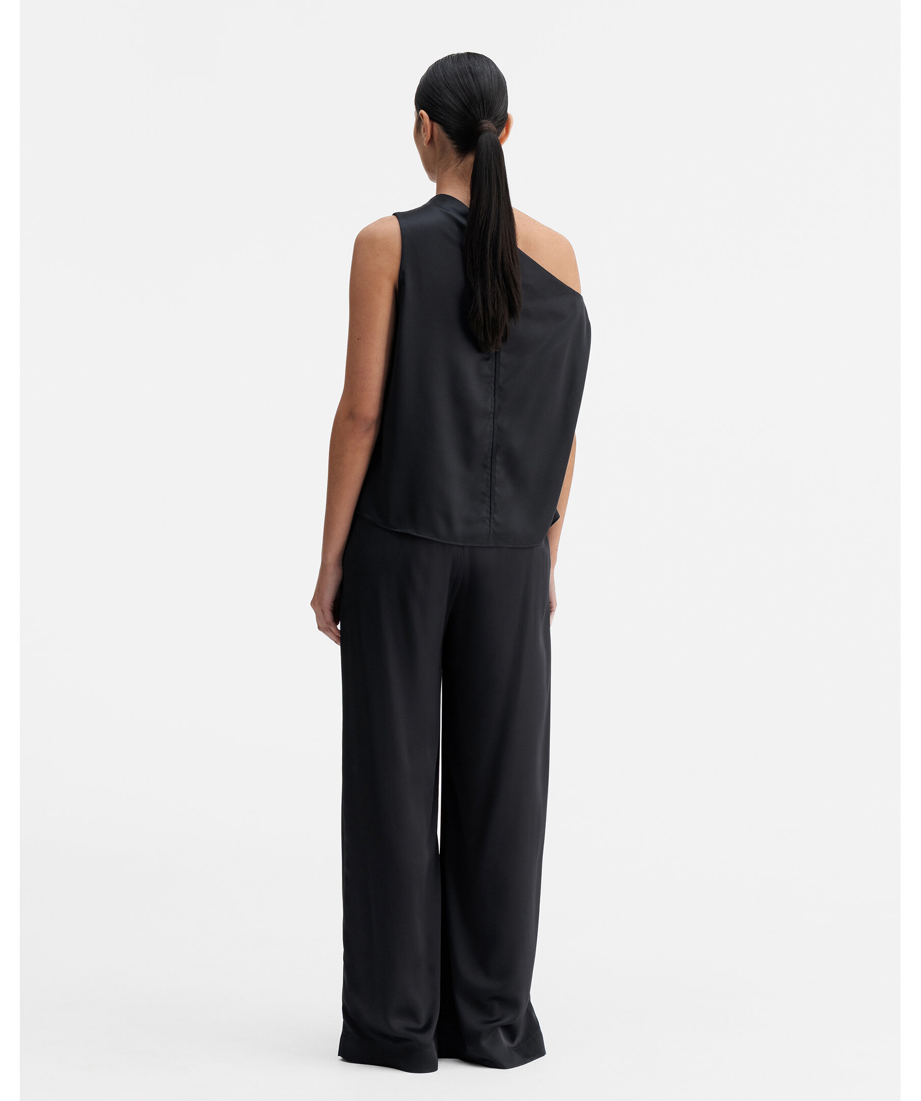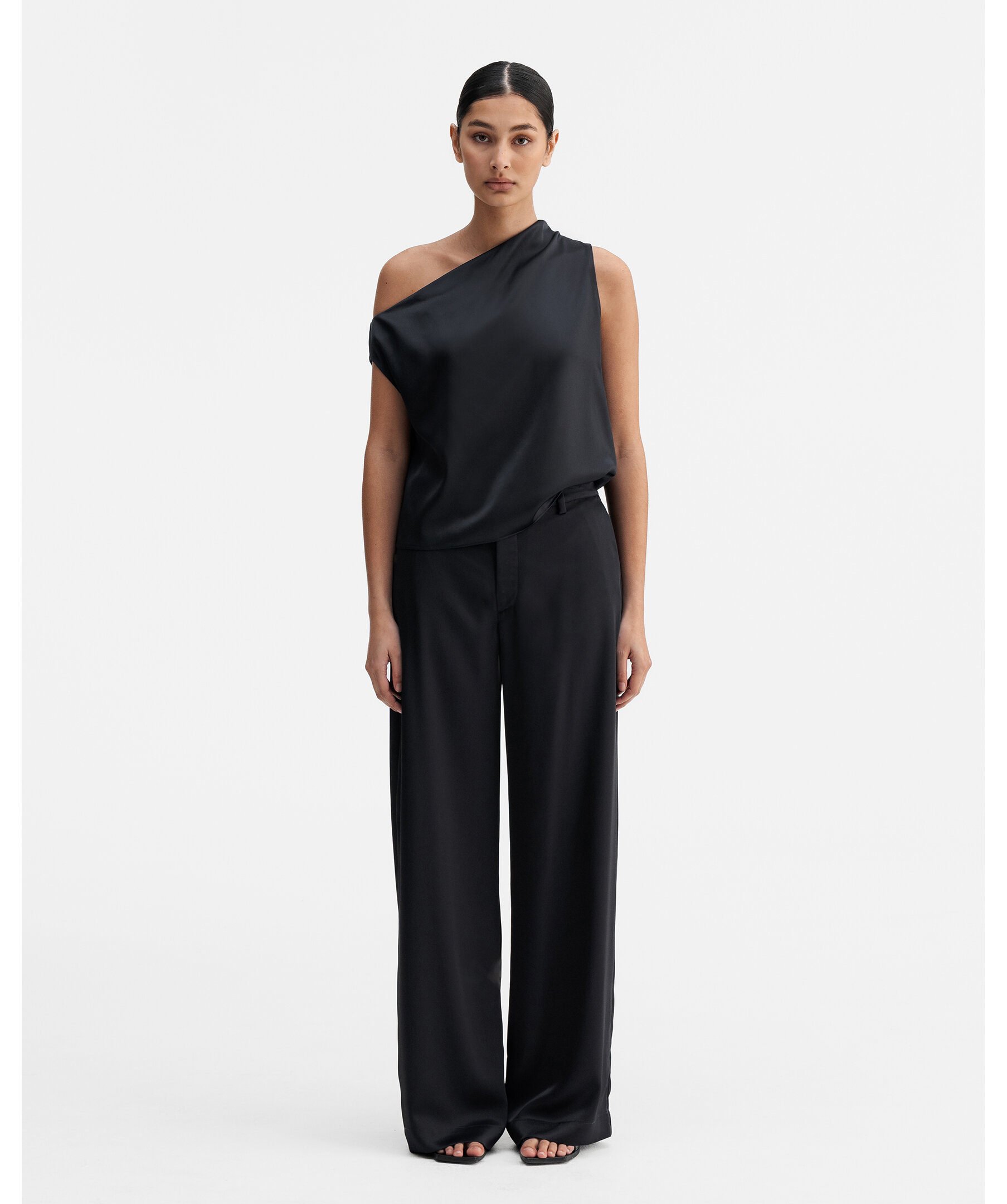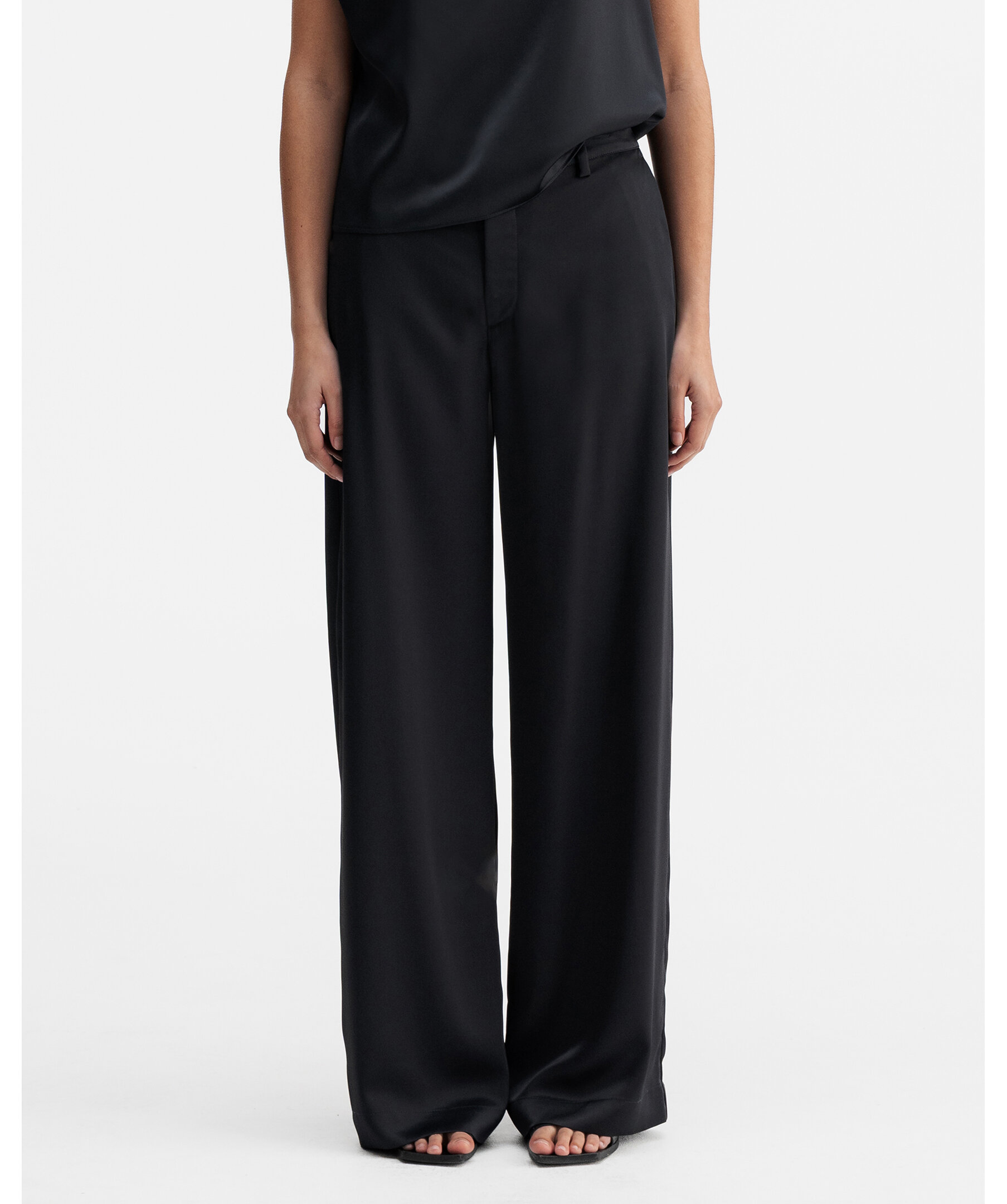 Mila Trousers från Ahlvar Gallery är skurna i en acetatblandning med strukturerad yta. Modellen är hög i midjan och har raka ben. Byxorna har sidfickor, gylf, dold tryckknapp och bälteshällor i midjan.