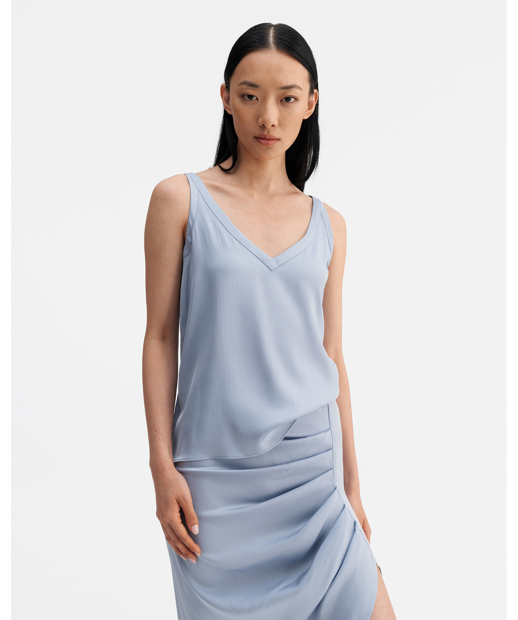 Shin linne från Ahlvar Gallery är skuret i märkets klassiska siden med stretch och har en djup V-ringning framtill. Den signaturbroderade sömmen längs ryggraden ger en subtil och exklusiv detalj. Matcha med valfri nederdel – lika självklar under varma sommardagar som till bröllop och sena festkvällar.