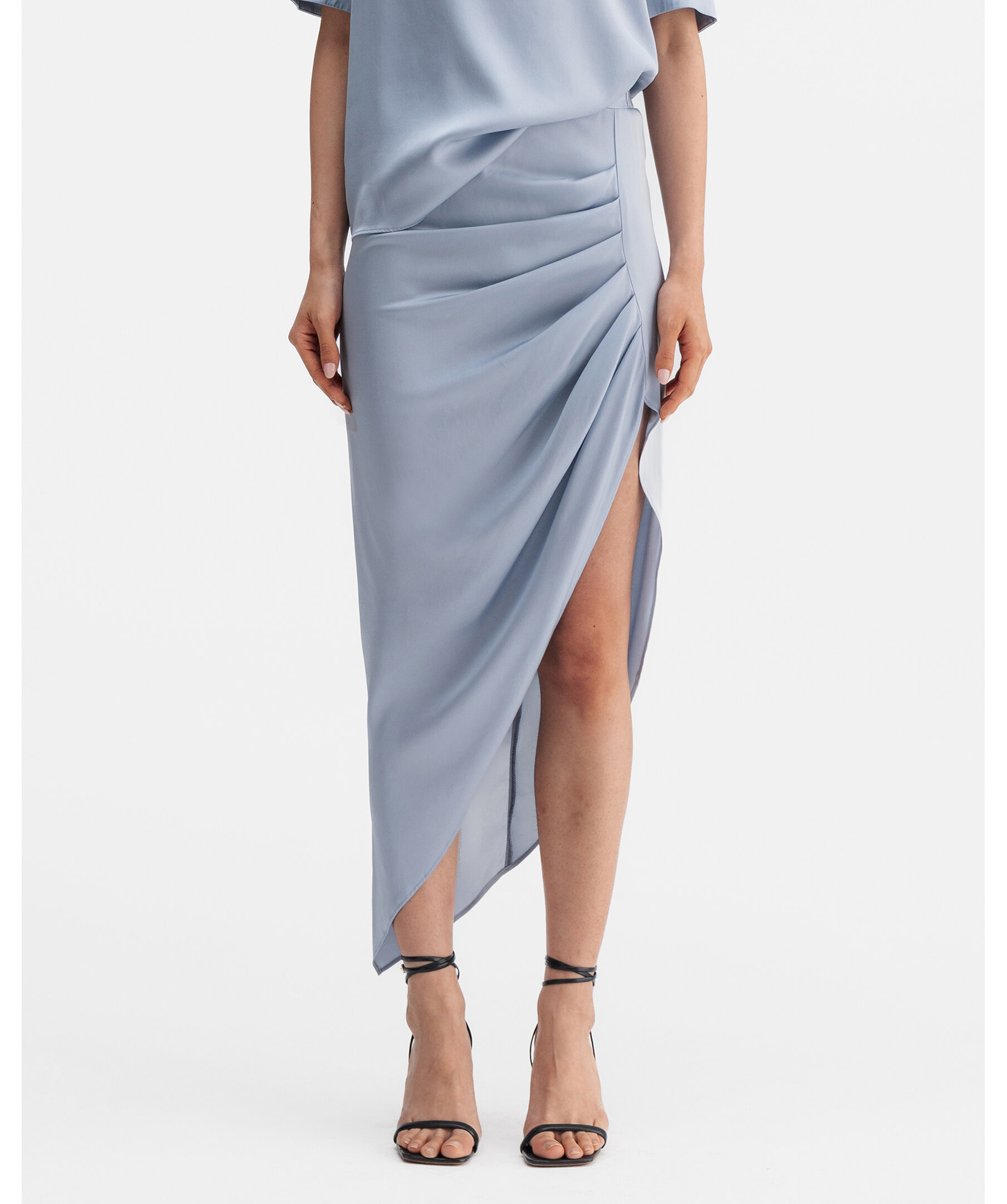 Tilda kjol från Ahlvar Gallery är en elegant maxikjol i märkets klassiska siden med stretch som ger ett mjukt, följsamt fall. Den höga slitsen och de placerade vecken skapar en vacker drapering, medan logoresåren i midjan adderar en modern touch. Perfekt för sena kvällar och festliga tillfällen.