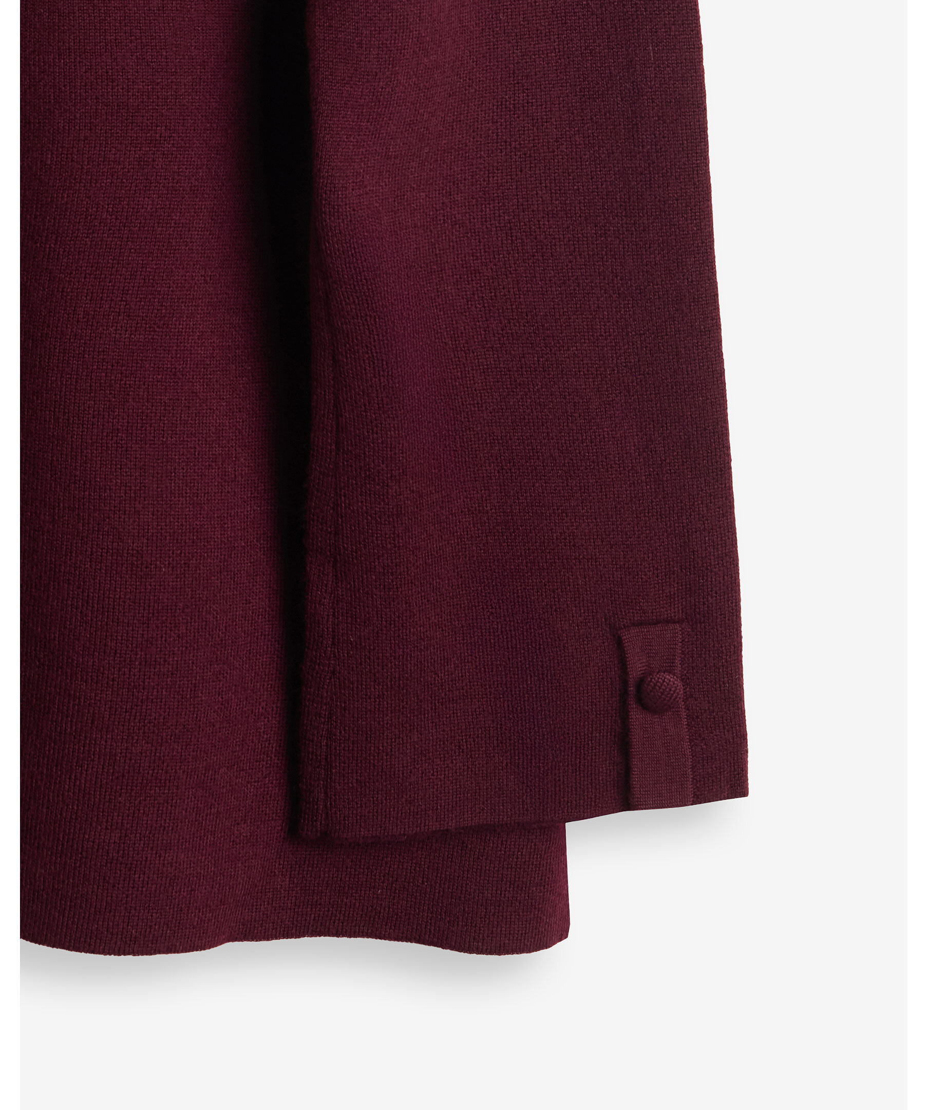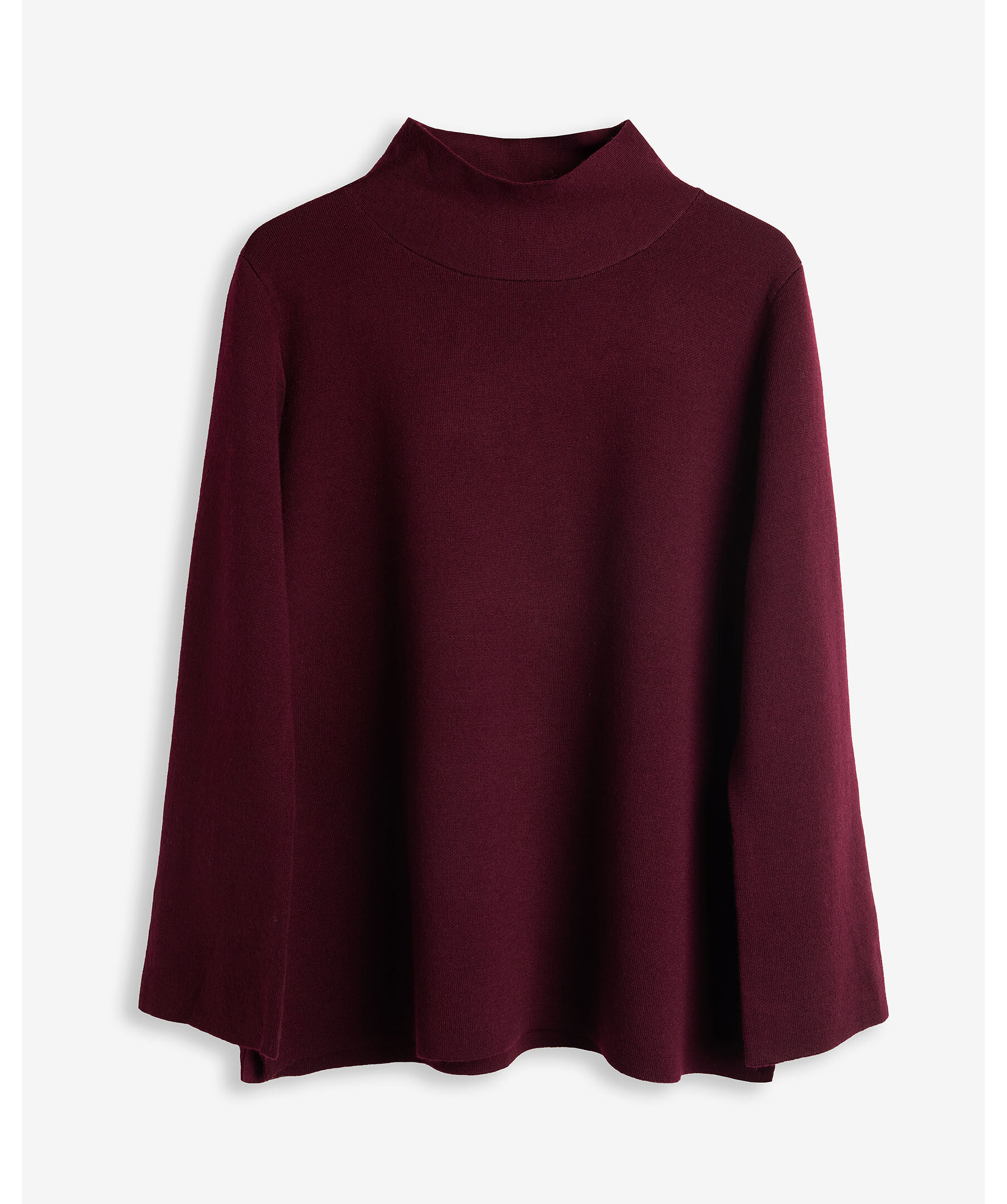 Vinröd, finstickad pullover med hög krage och korta slitsar i sidorna från My Aurora. Tillverkad i 100% merinoull.