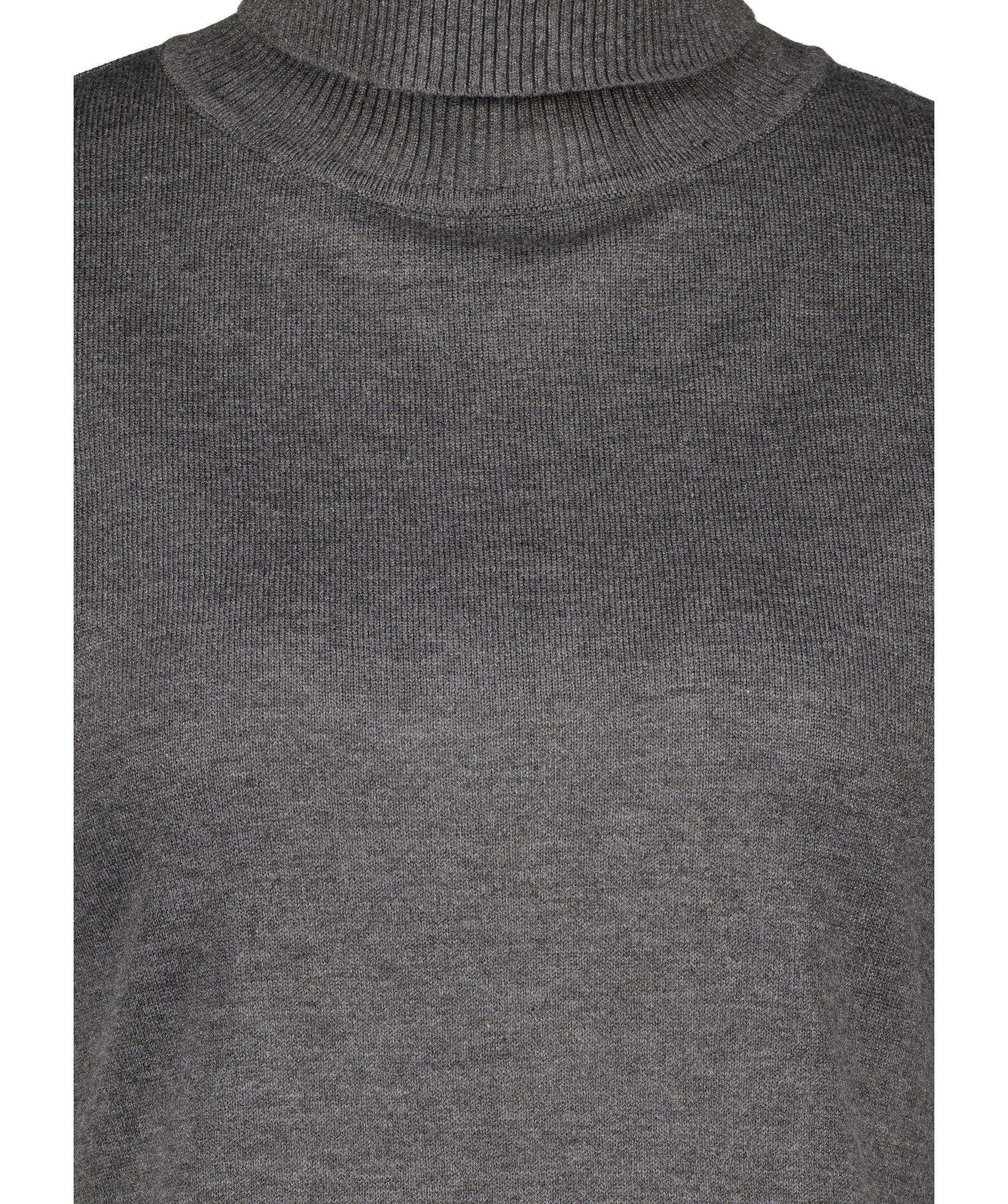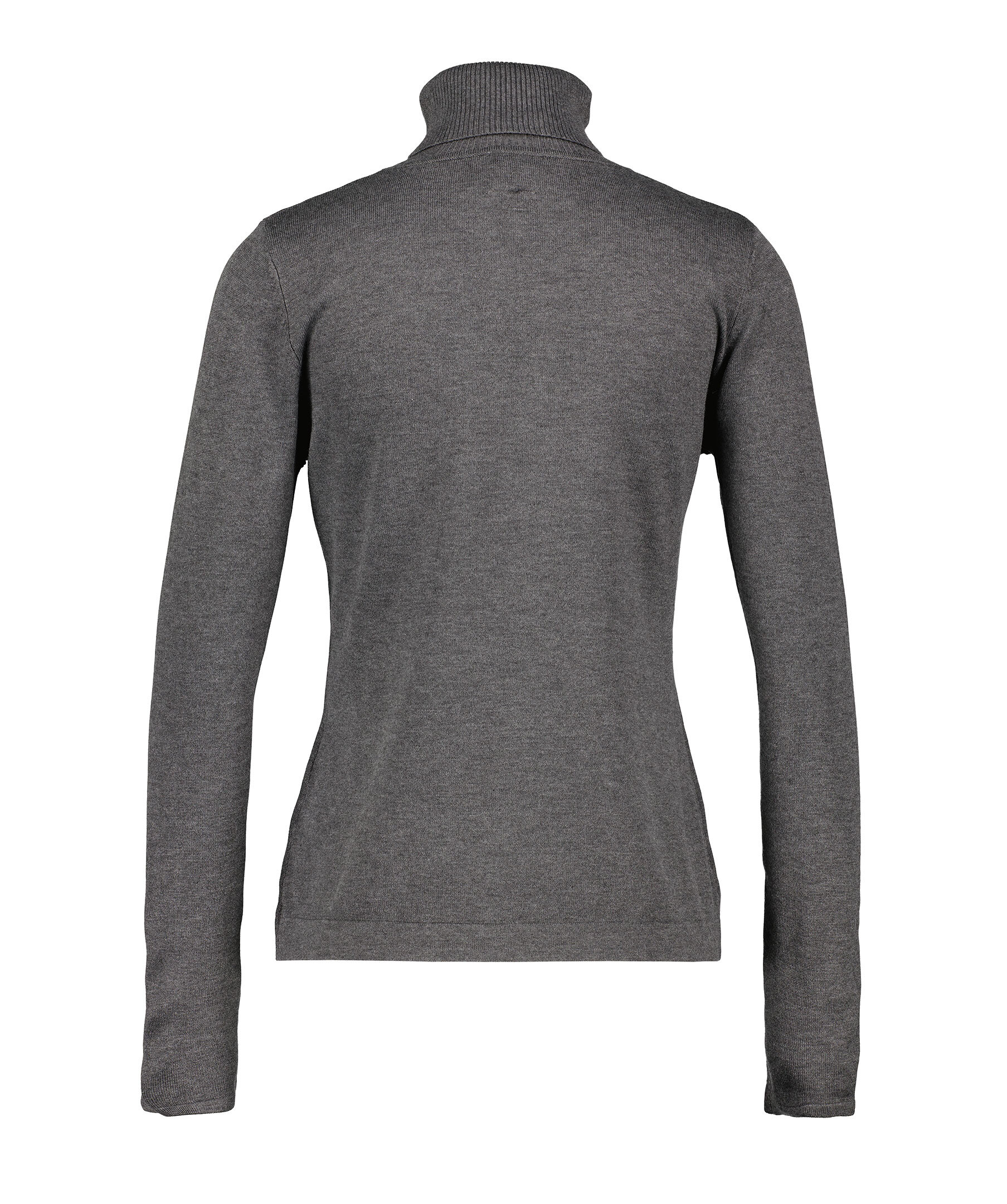 Grå, finstickad polotröja från My Aurora. Tröjan har en hög, ribbstickad krage samt ribbstickade muddar vid plaggslut. Tillverkad i en viskosblandning.