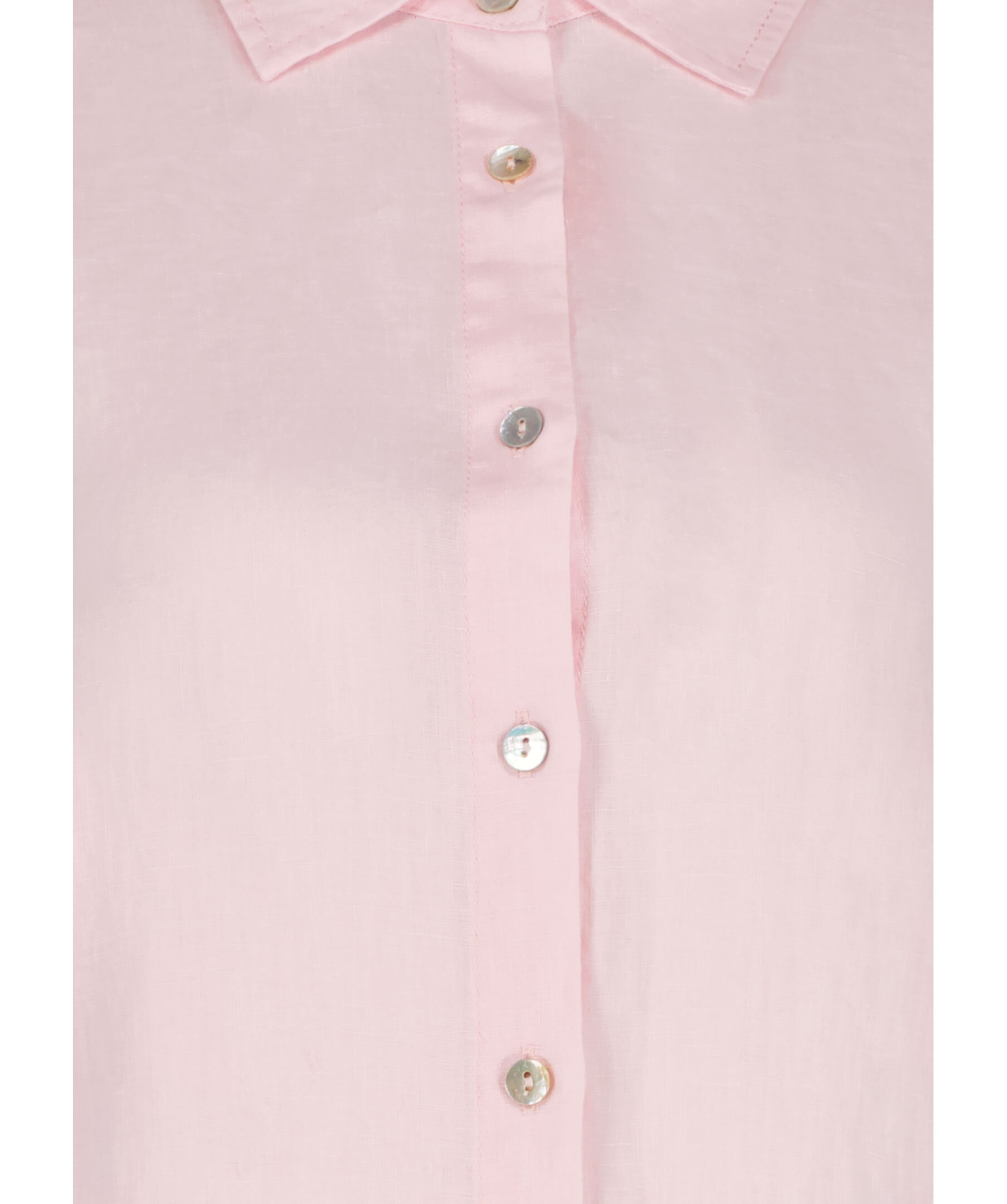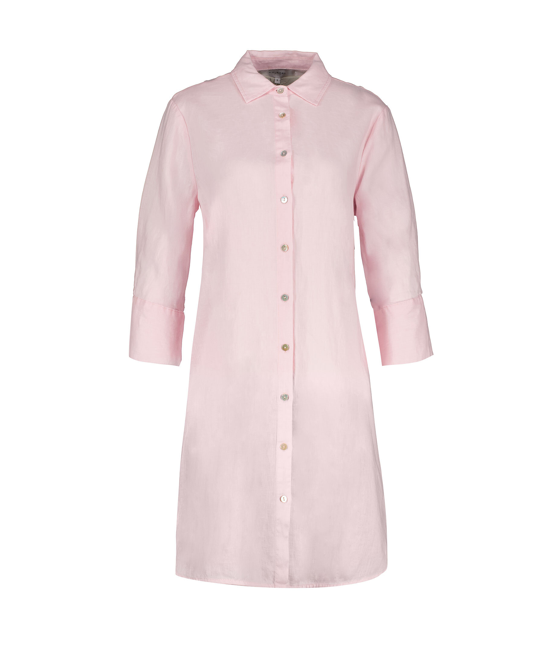 Ljusrosa skjortklänning från My Aurora. klänningen stängs med pärlemorknappar framtill och har något bredare manschetter och har två fickor. Tillverkad i 100% lin.