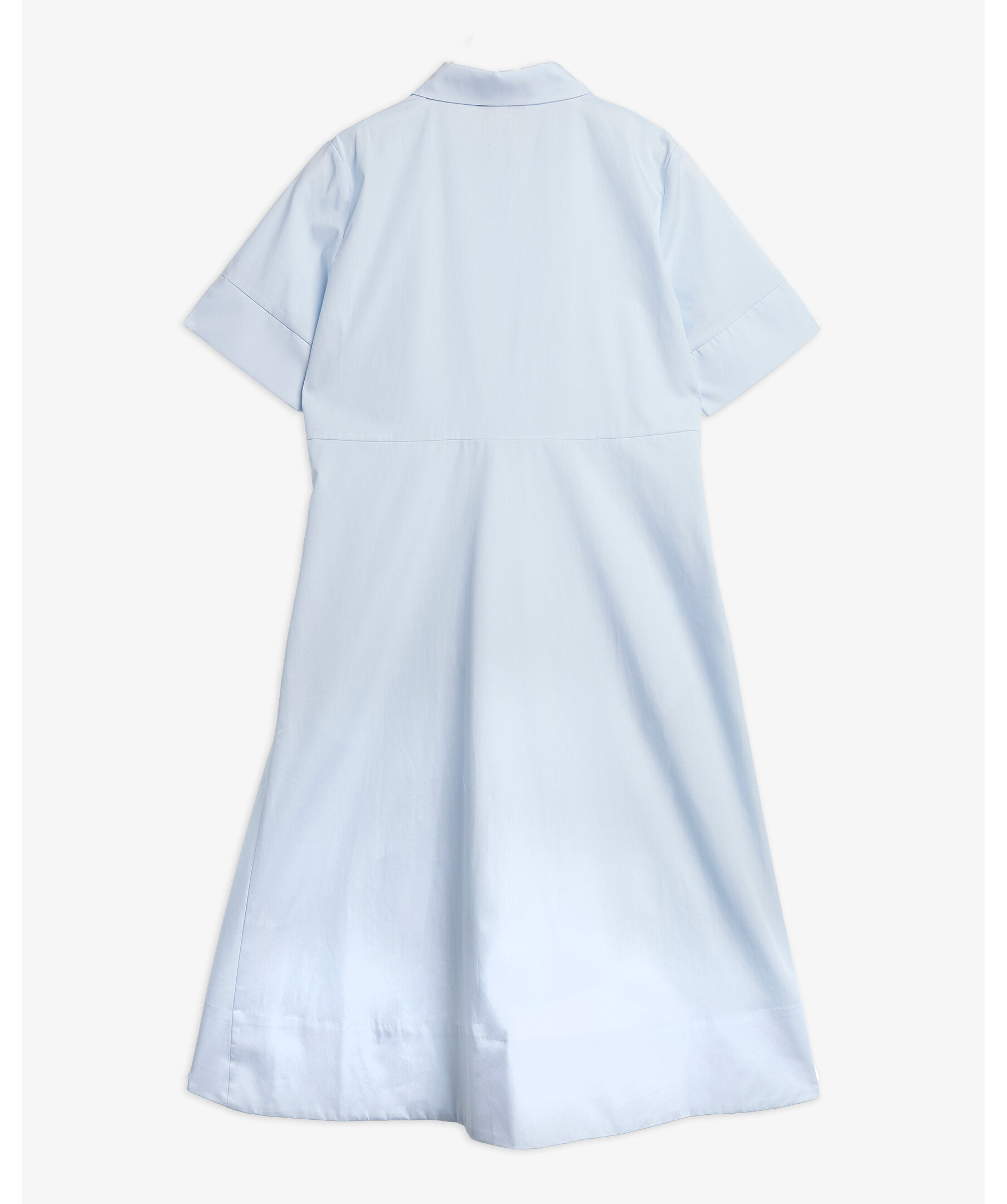 Ljusblå klänning från My Aurora i 100% bomull. Klänningen är knälång och har en kort ärm samt knäppning framtill.