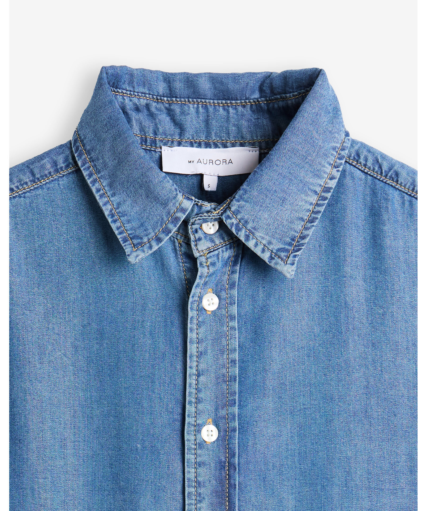 Blå jeansskjorta från My Aurora. Skjortan stängs med knappar och är tillverkad i 100% tencel.